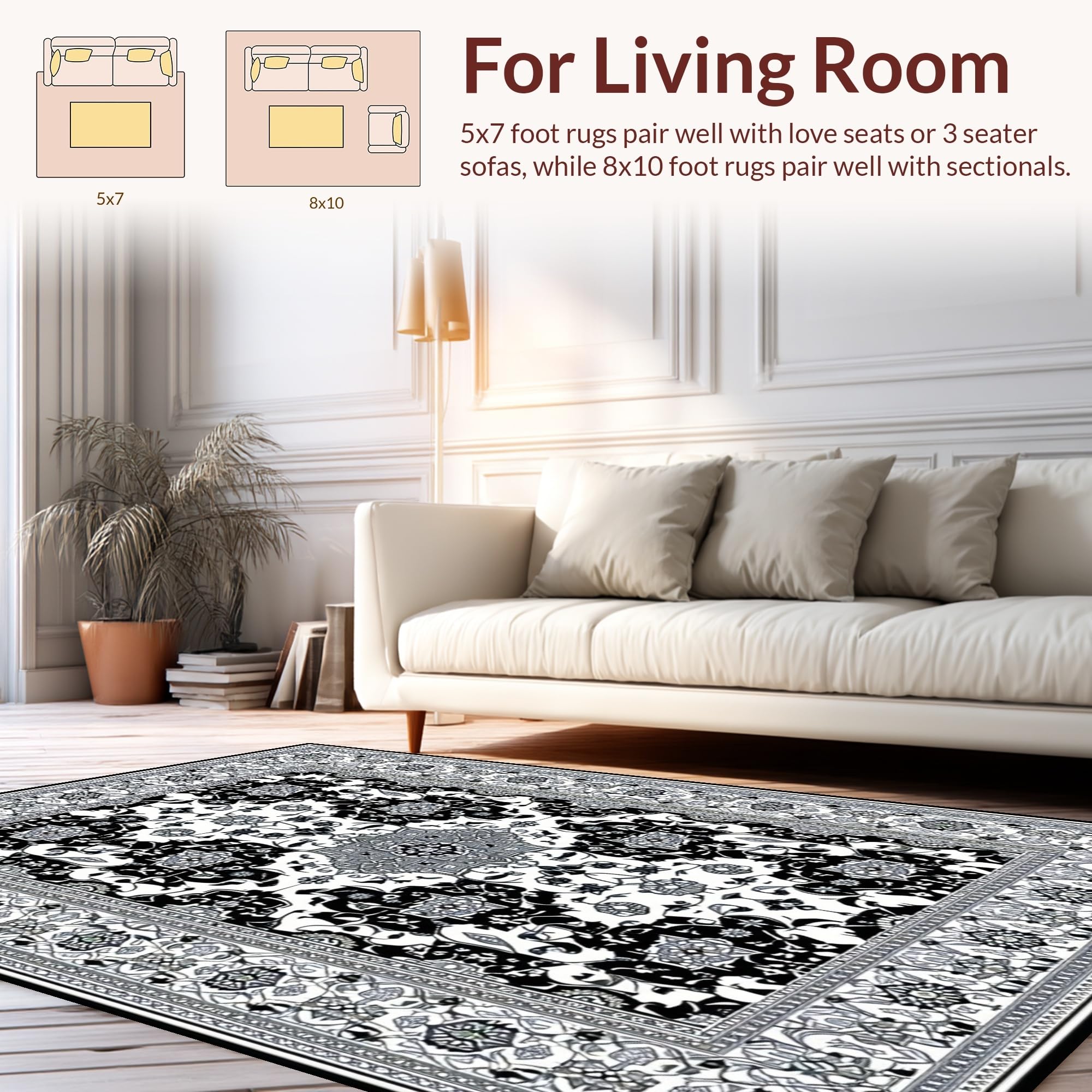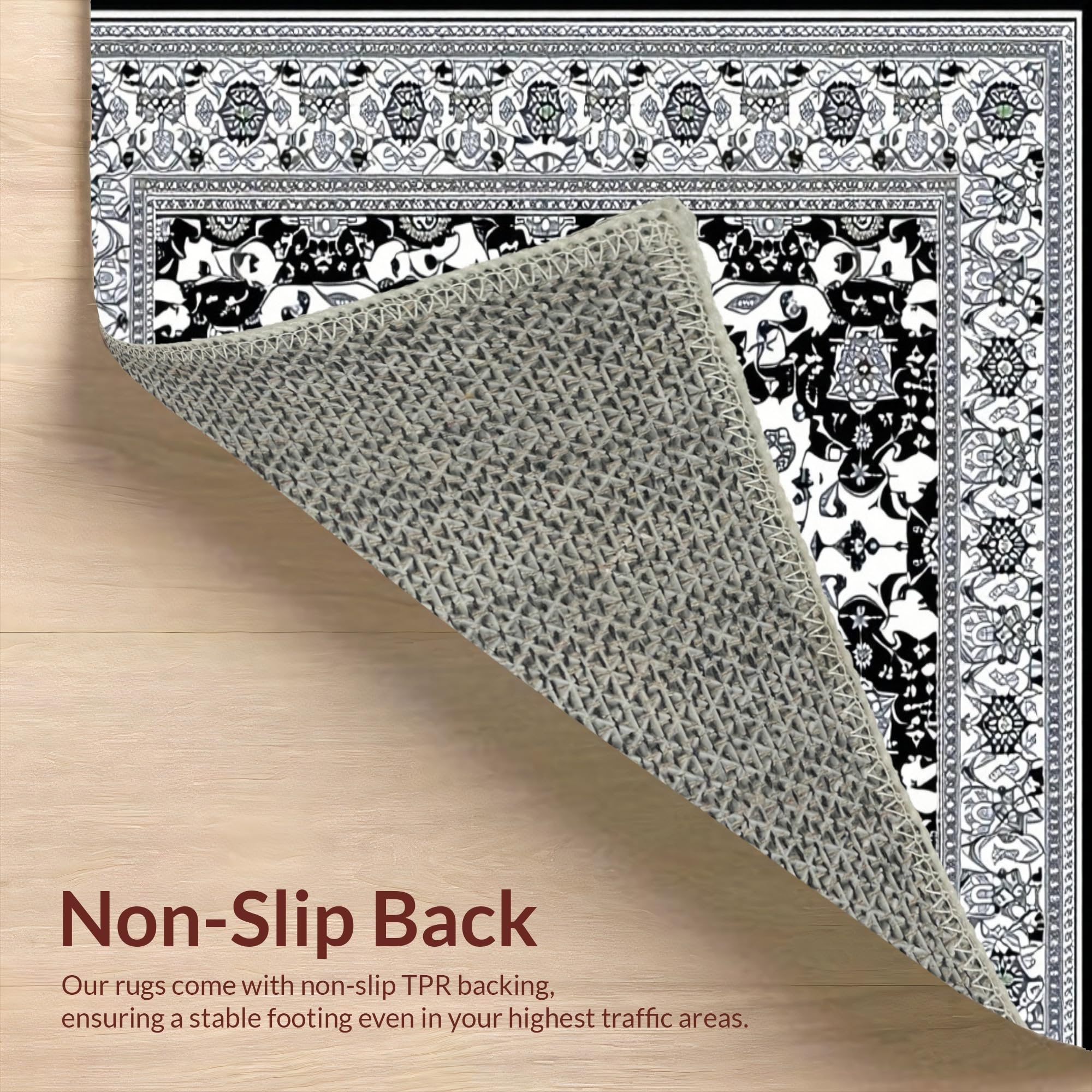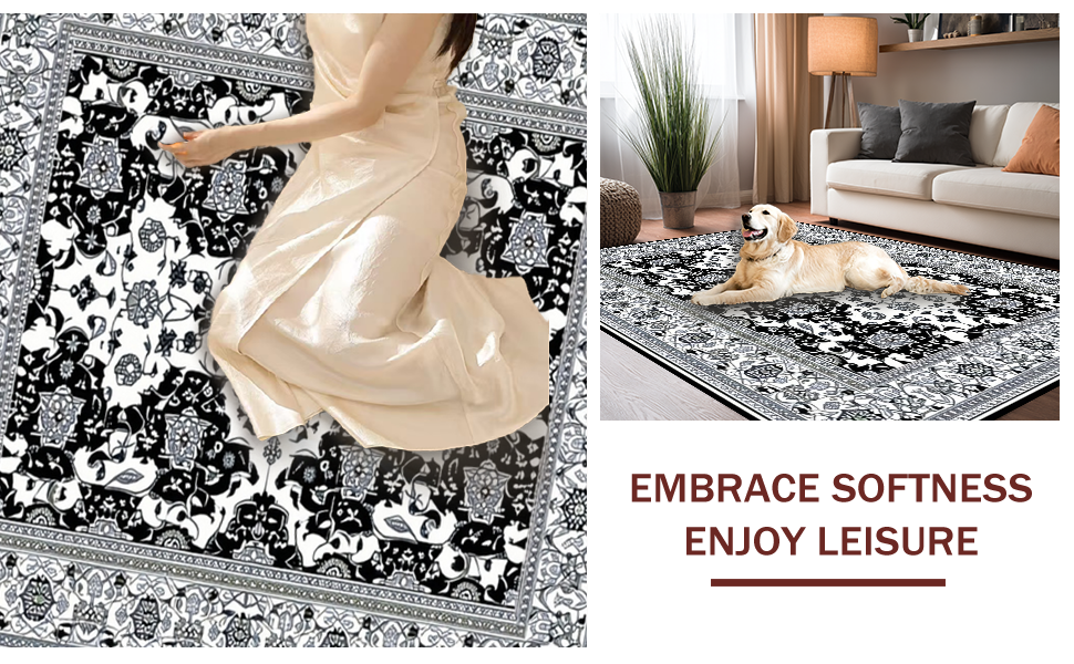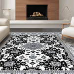 Ultra Soft Area Rug, Non Slip, Stain Resistant, Washable Area Rugs for Living Room, Bedroom, Stylish Abstract Symmetrical Motif(Black) Overview:
