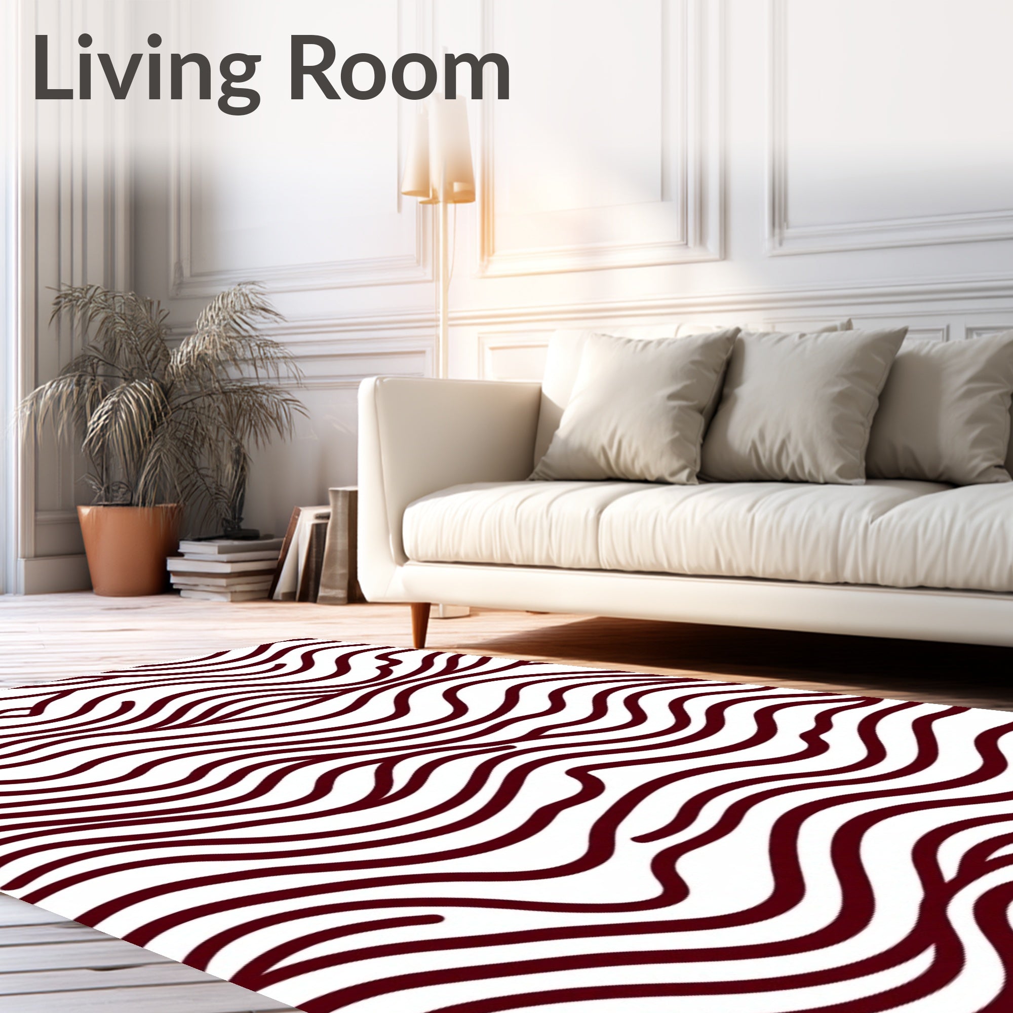 Ultra Soft Area Rug, Non Slip, Stain Resistant, Washable Area Rugs for Living Room, Bedroom, Stylish Abstract Wavy Stripe Comfy Modern Throw(Maroon) Overview: