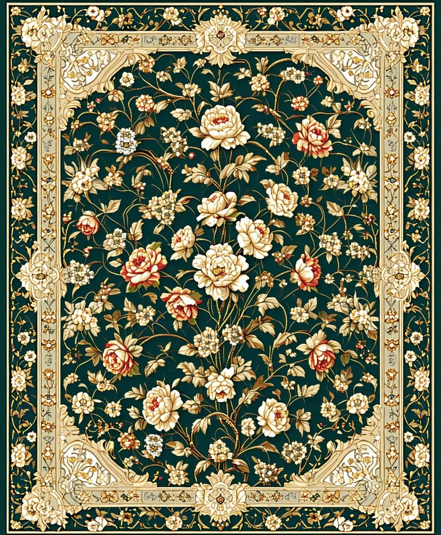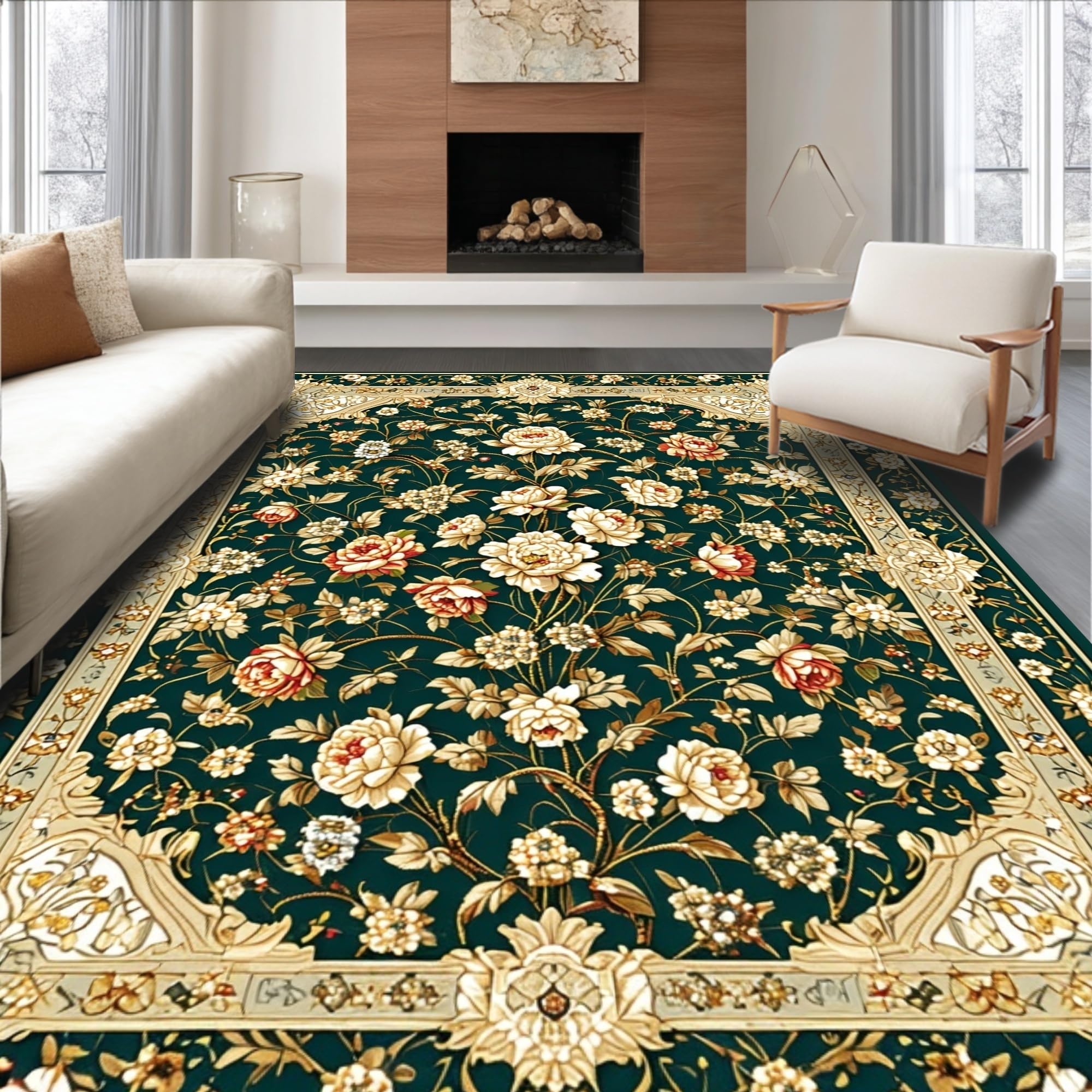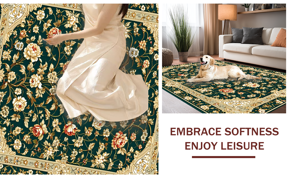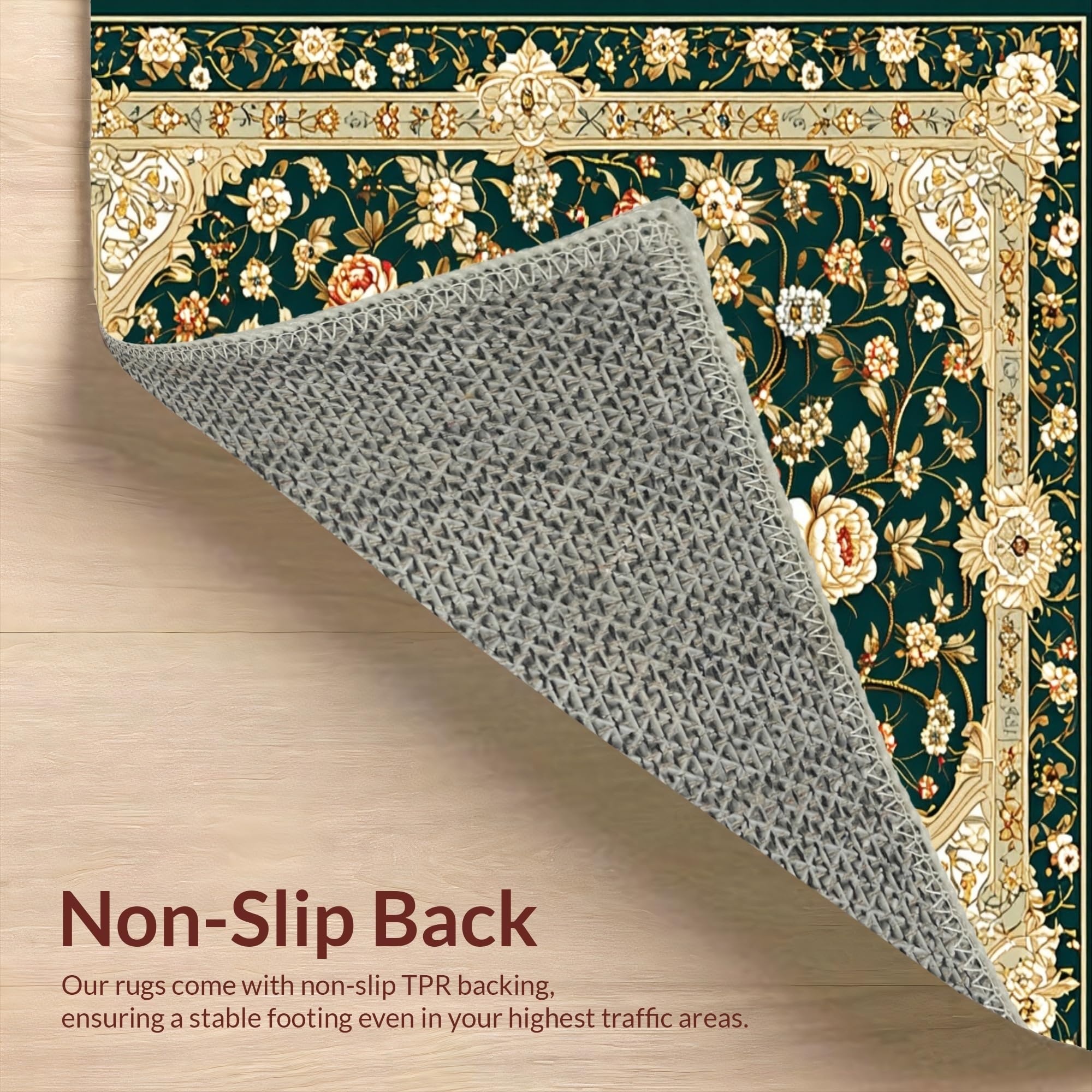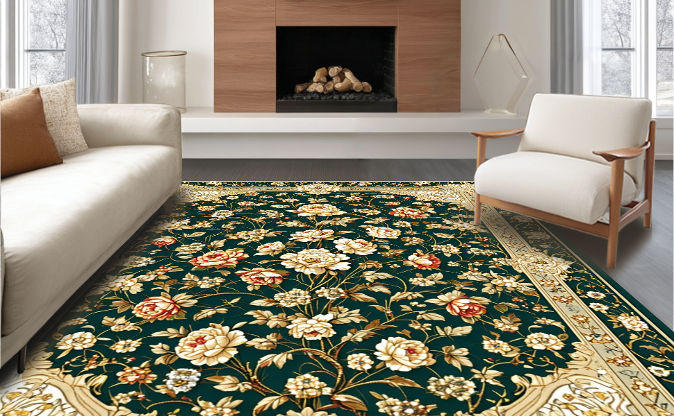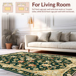 Ultra Soft Area Rug, Non Slip, Stain Resistant, Washable Area Rugs for Living Room, Bedroom, Stylish Antique Floral Medallion Theme(Black) Overview: