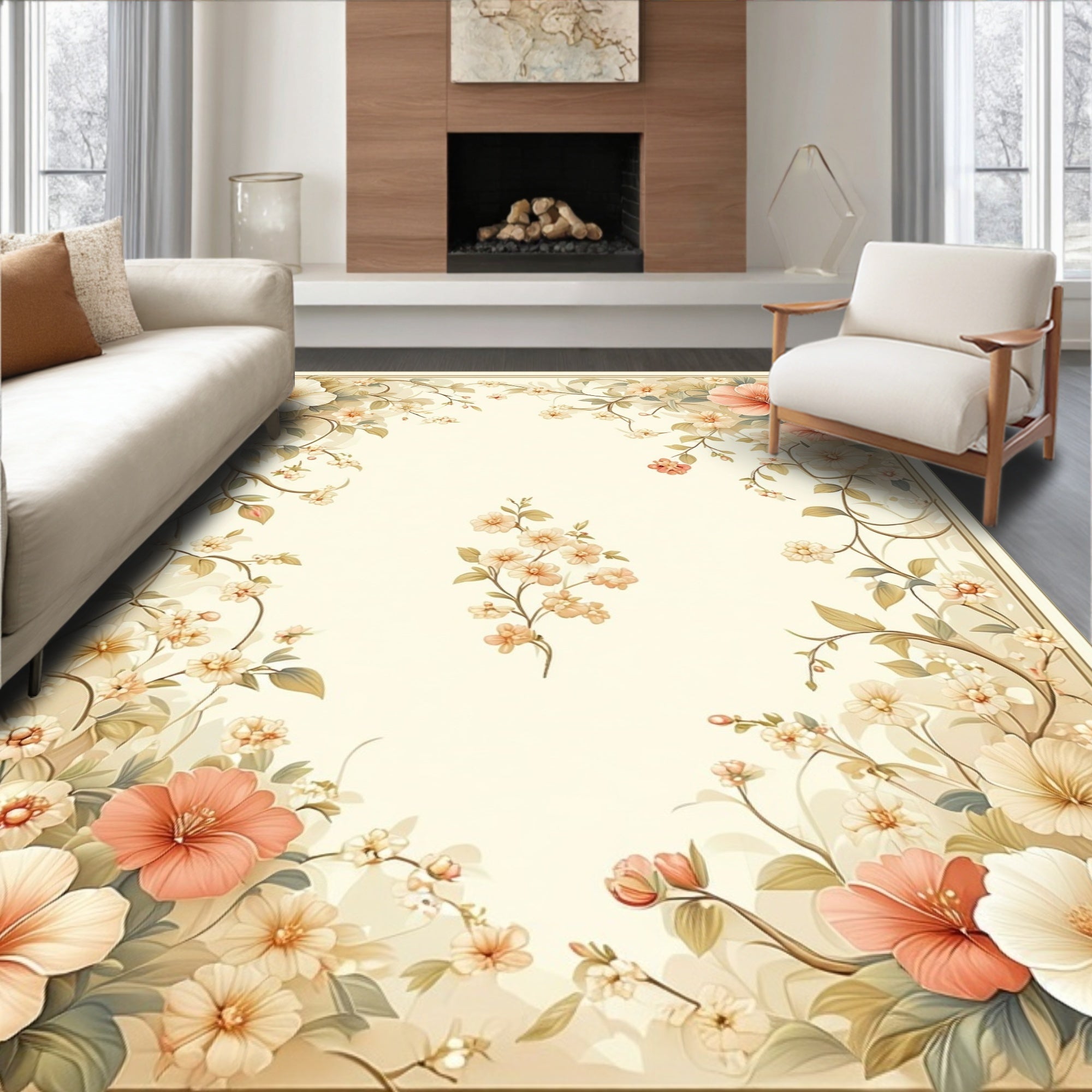 Flatwoven High Traffic Area Rug, Stylish Beige Floral, Non Slip, Stain Resistant, Washable Area Rugs for Living Room, Bedroom (Beige) Overview: