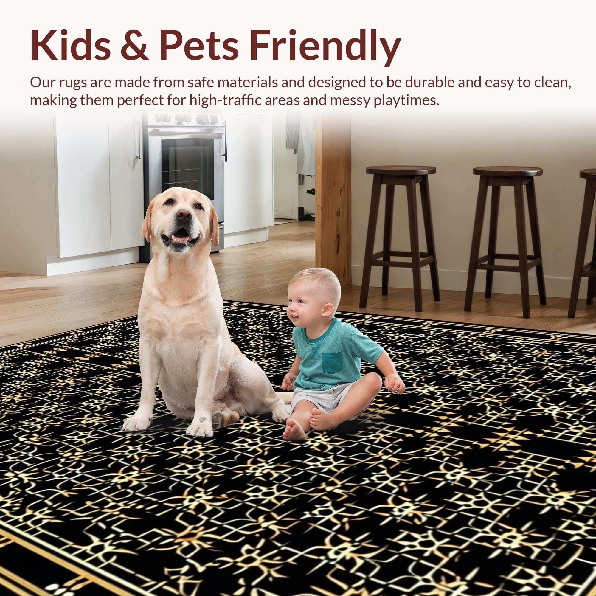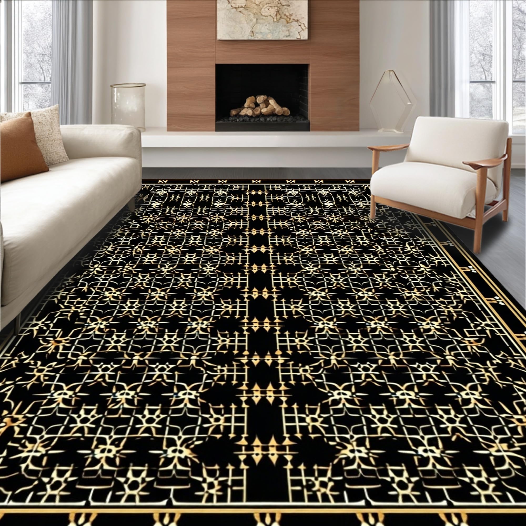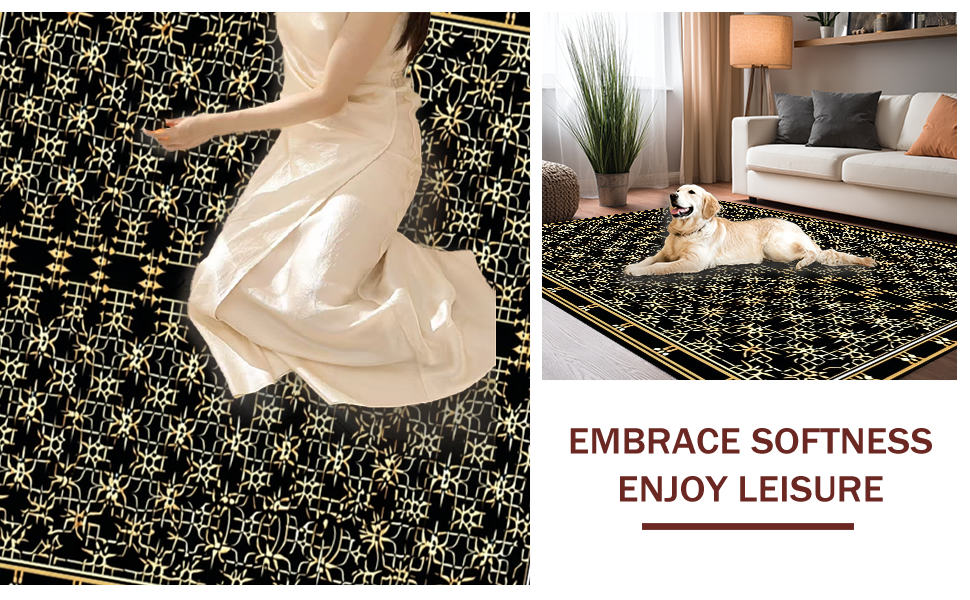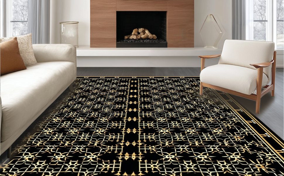 Ultra Soft Area Rug, Non Slip, Stain Resistant, Washable Area Rugs for Living Room, Bedroom, Stylish Black Abstract Lines(Black) Overview: