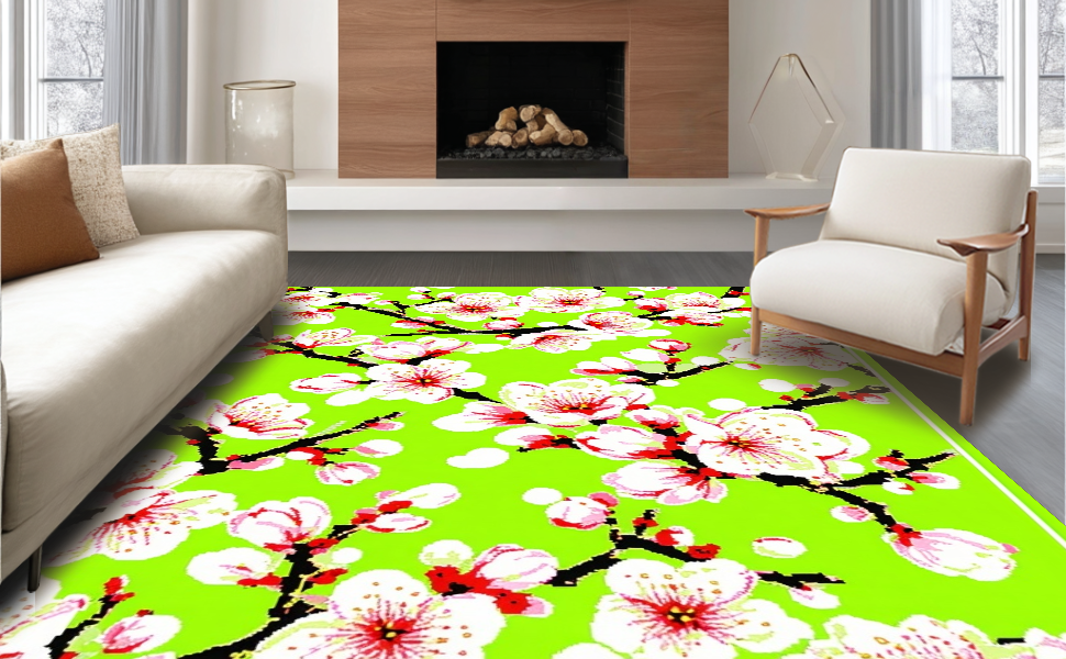 Ultra Soft Area Rug, Non Slip, Stain Resistant, Washable Area Rugs for Living Room, Bedroom, Stylish Bold Text and Hues(Green) Overview: