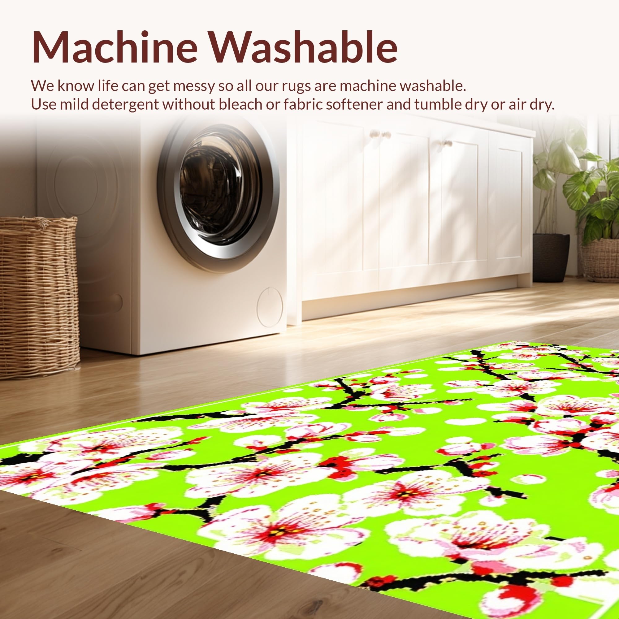 - Machine Washable: Our rugs can be easily thrown in the wash machine.