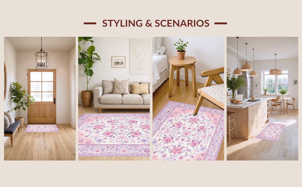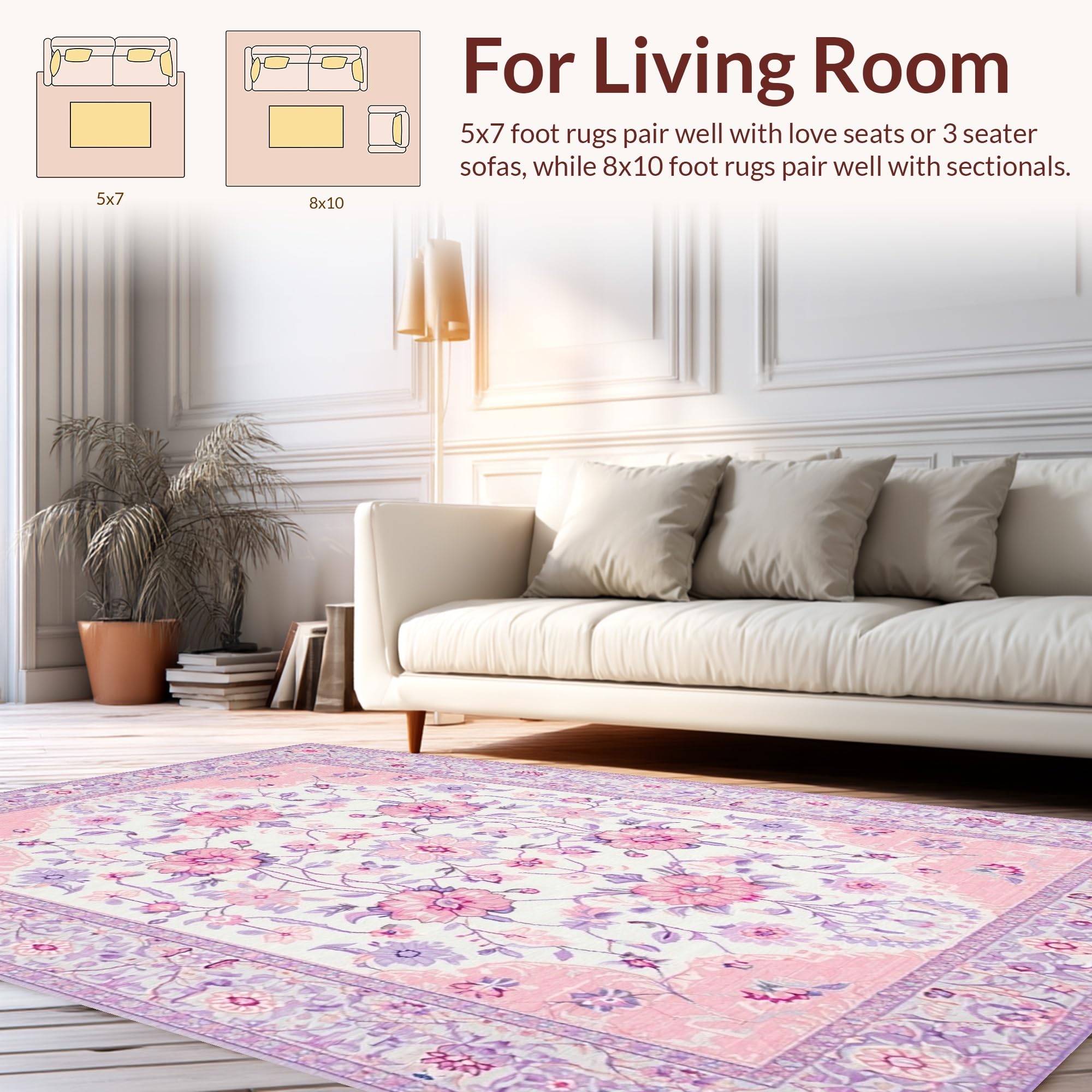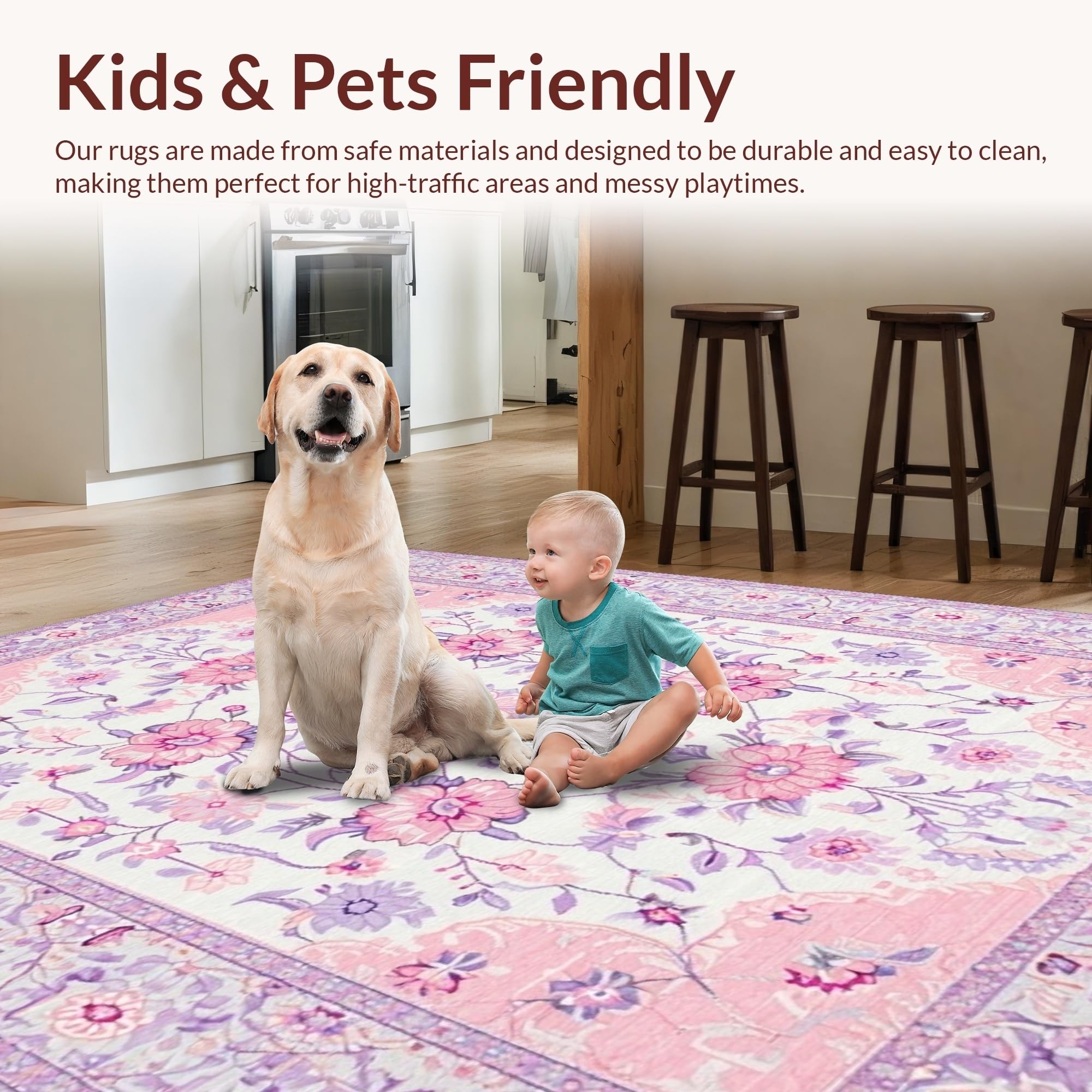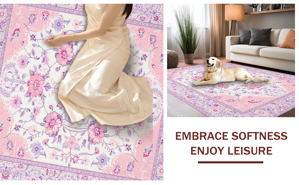 Ultra Soft Area Rug, Non Slip, Stain Resistant, Washable Area Rugs for Living Room, Bedroom, Stylish Chic Indoor Comfort(Pink) Overview:
