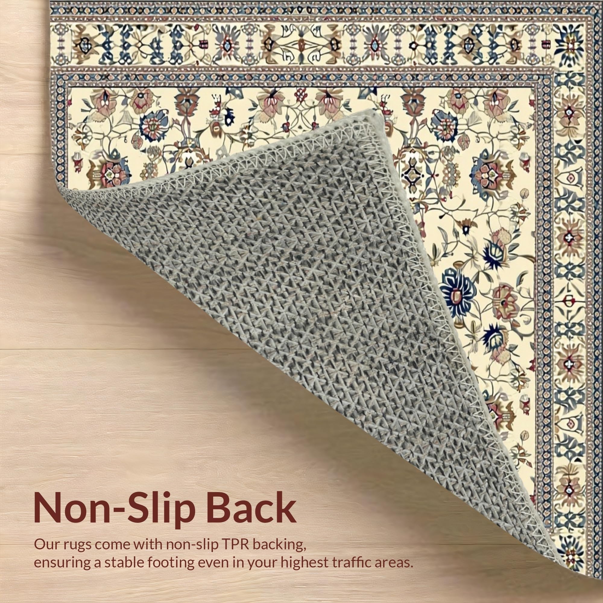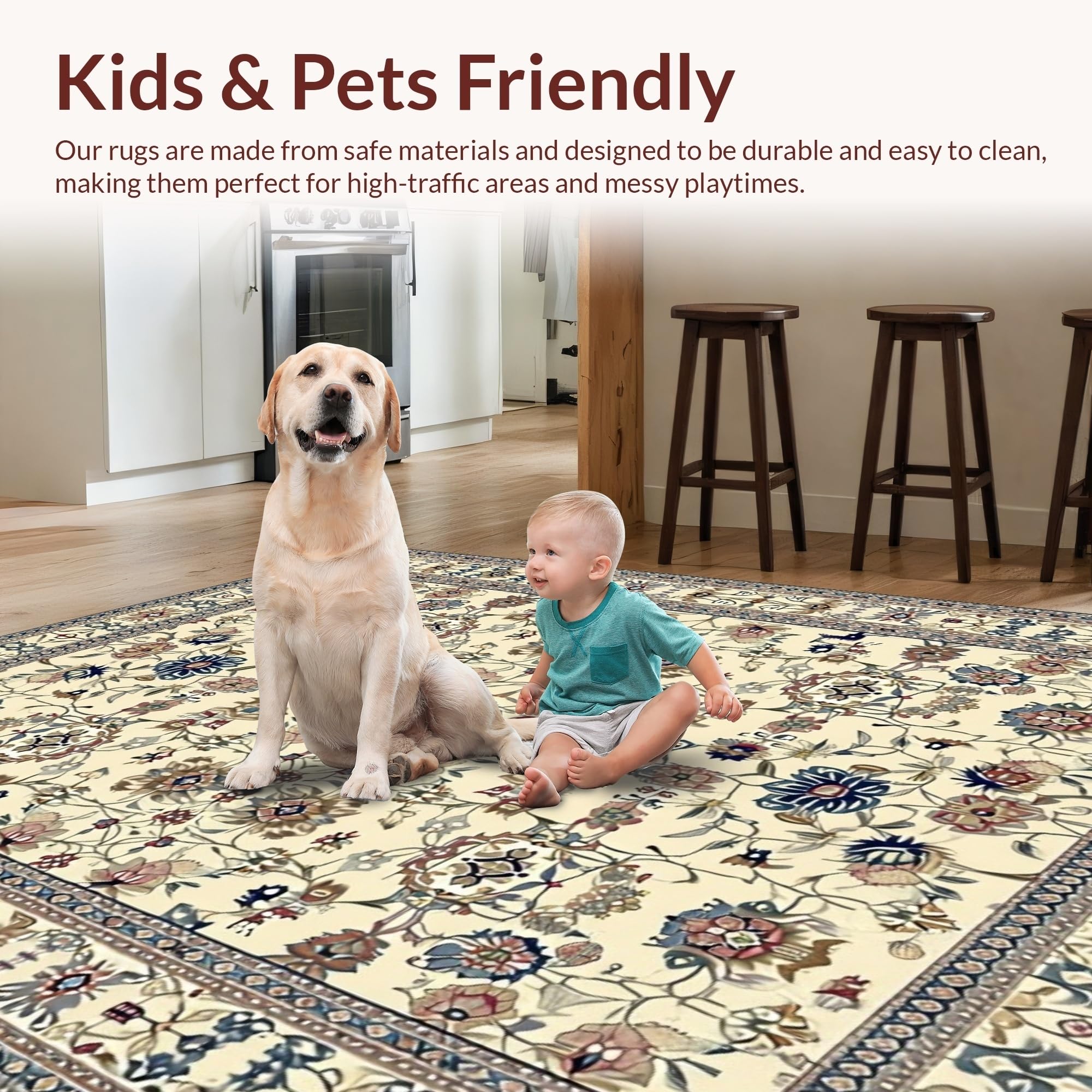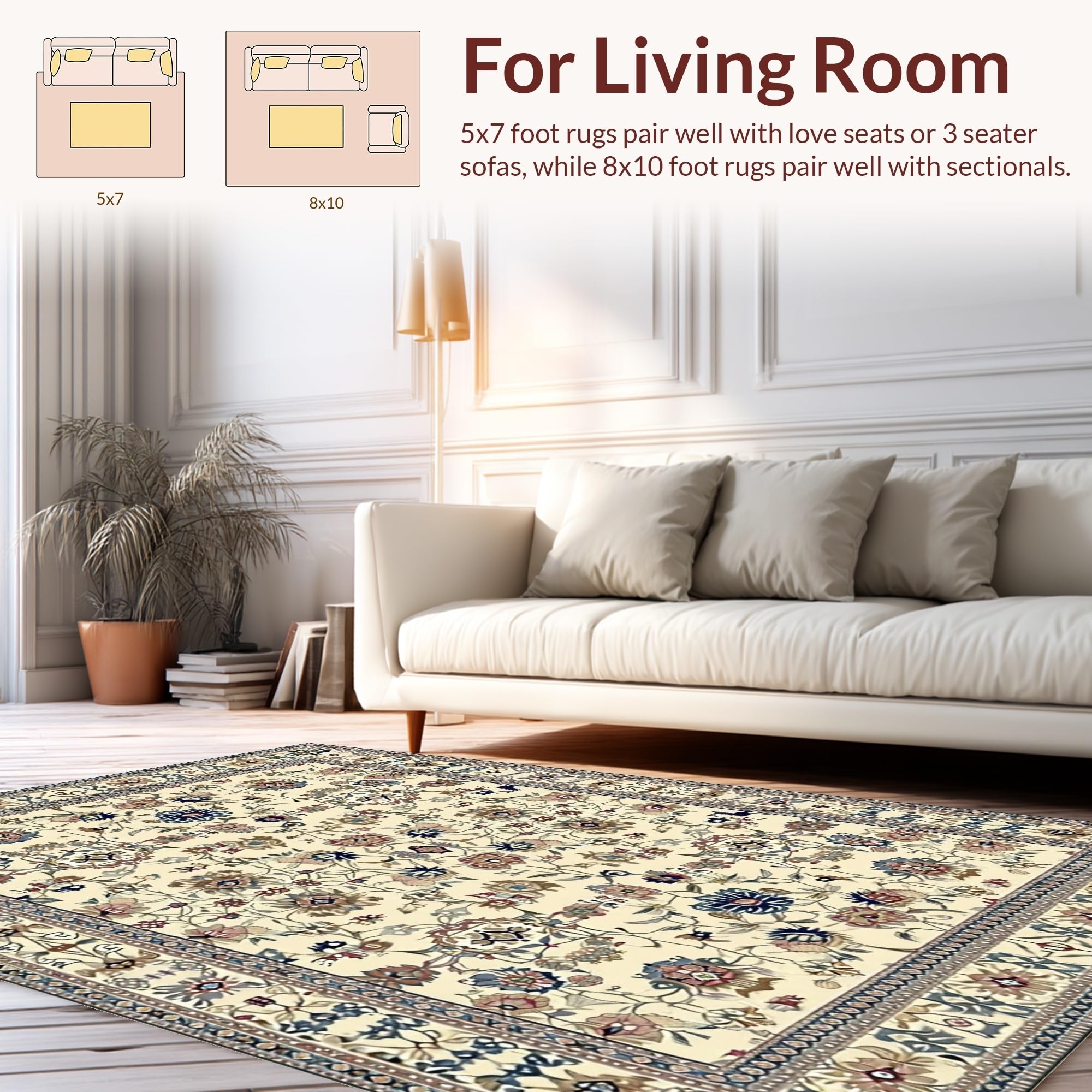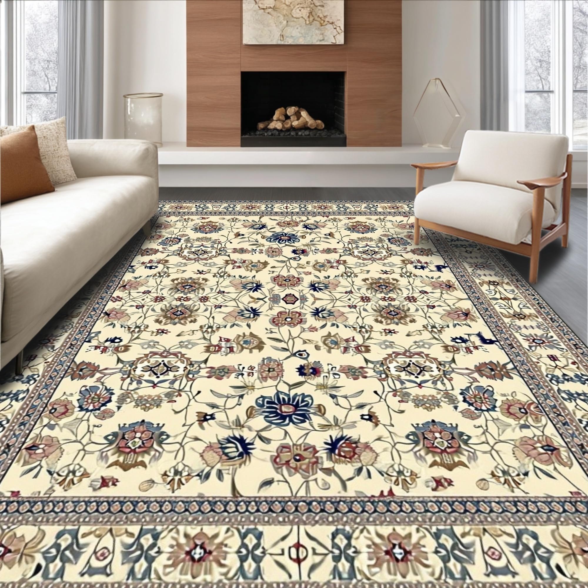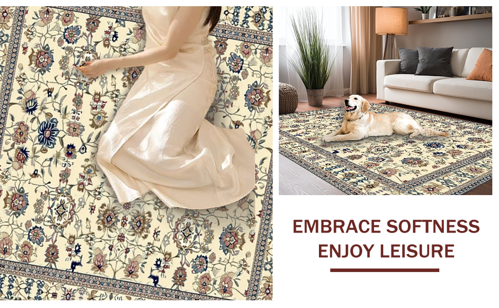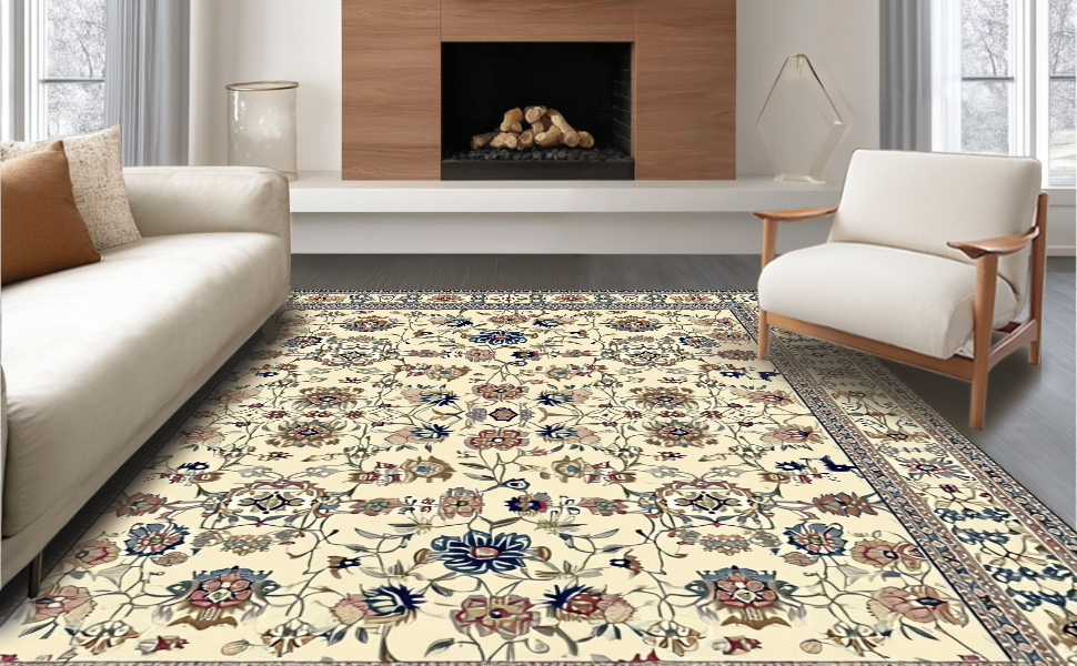 Ultra Soft Area Rug, Non Slip, Stain Resistant, Washable Area Rugs for Living Room, Bedroom, Stylish Colorful Bouquet Pattern(Beige) Overview: