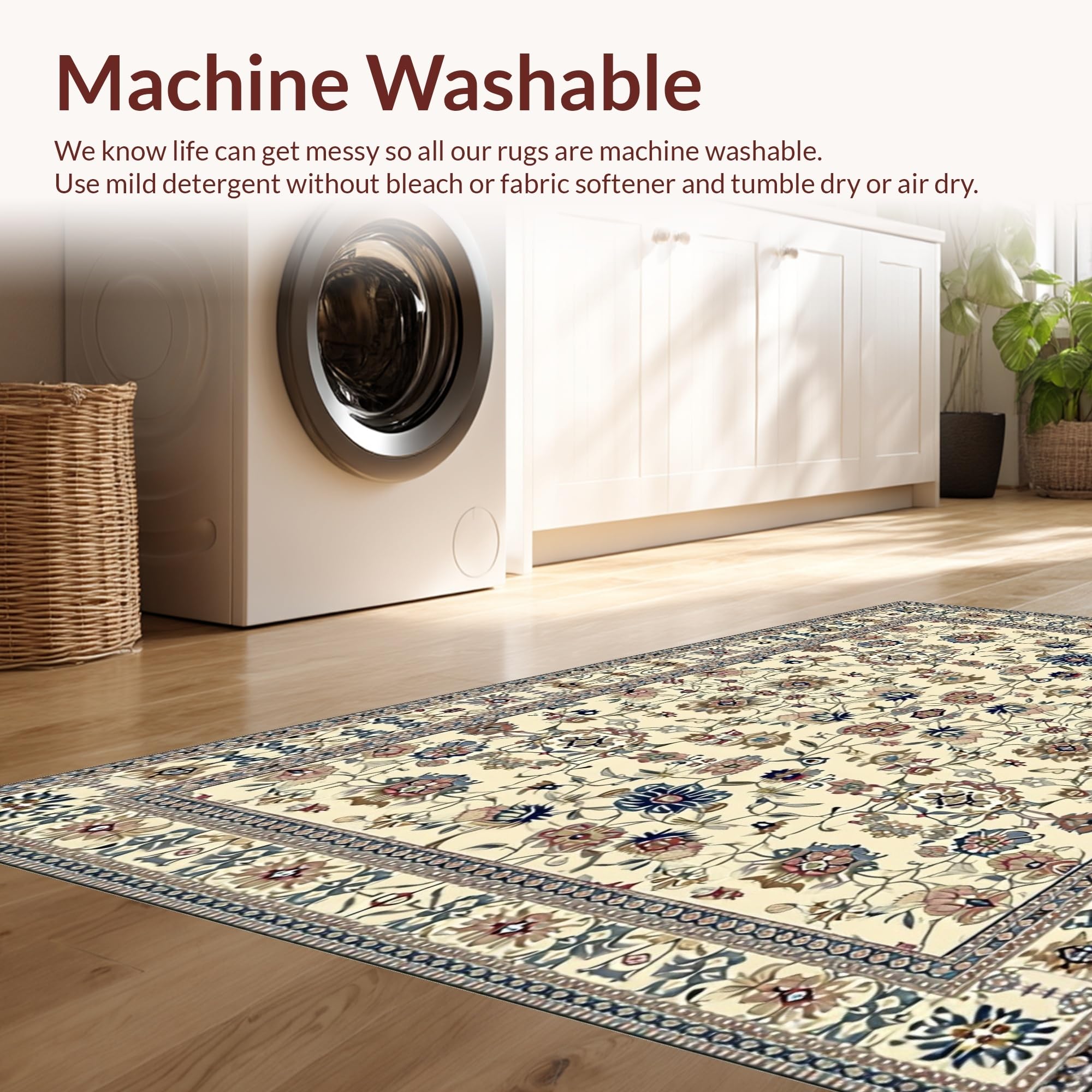- Machine Washable: Our rugs can be easily thrown in the wash machine.