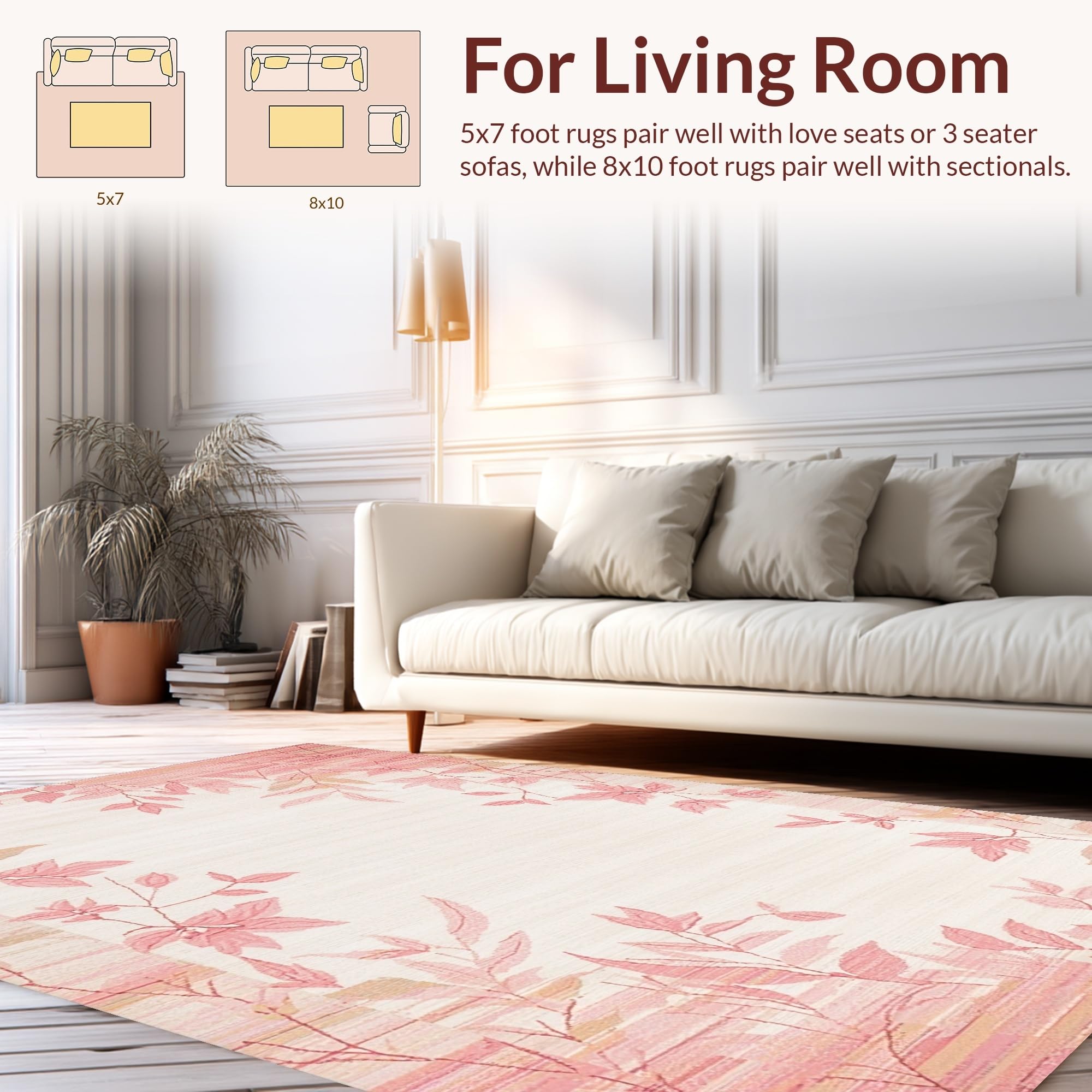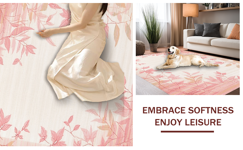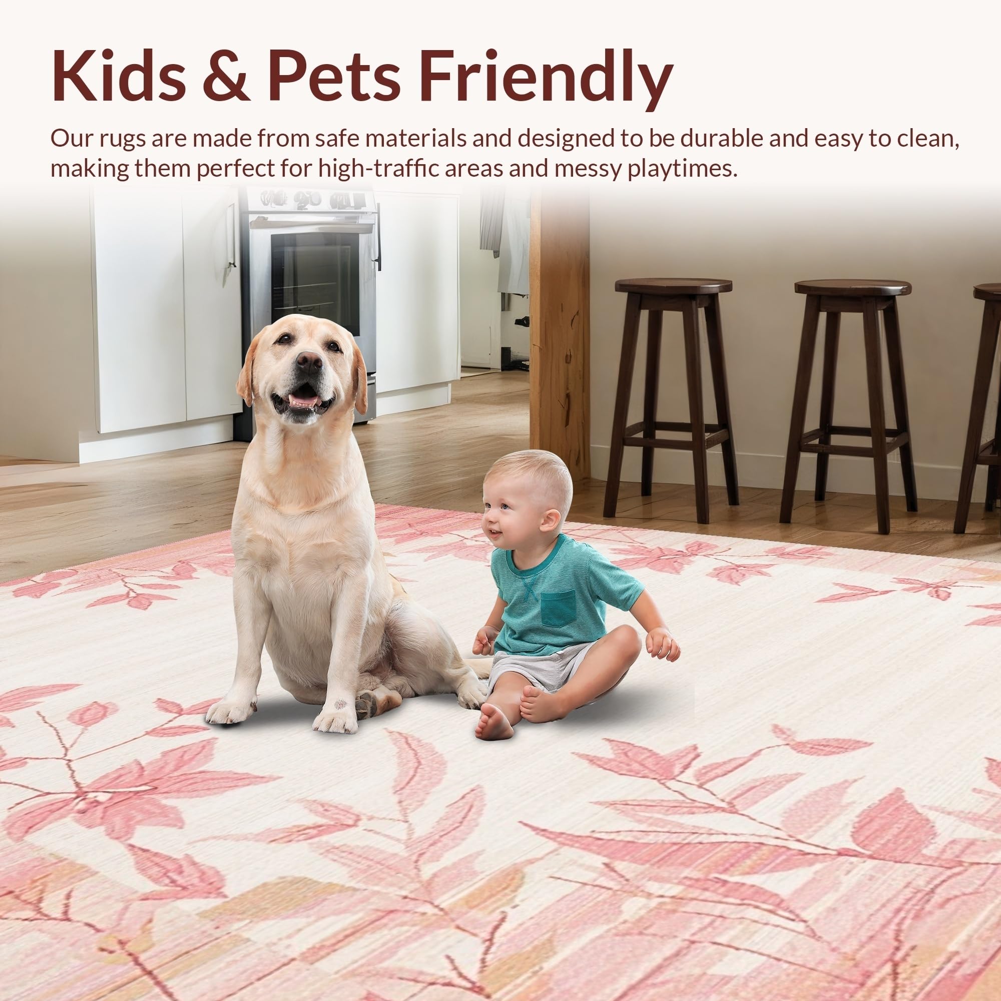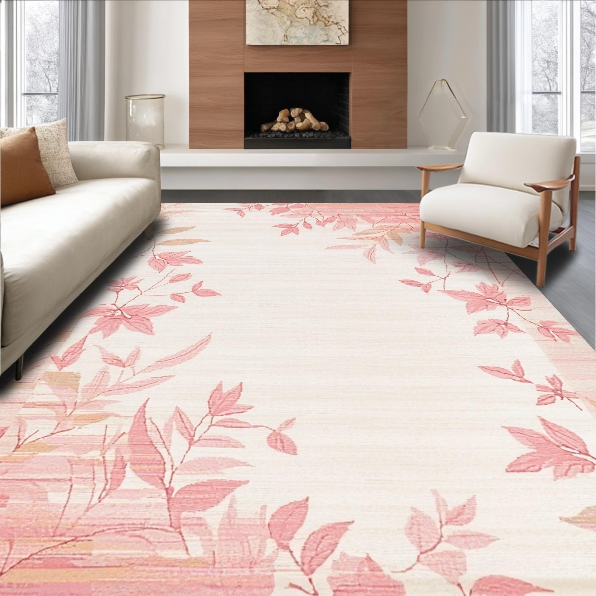 Ultra Soft Area Rug, Non Slip, Stain Resistant, Washable Area Rugs for Living Room, Bedroom, Stylish Cozy Modern Nature Theme(Pink) Overview: