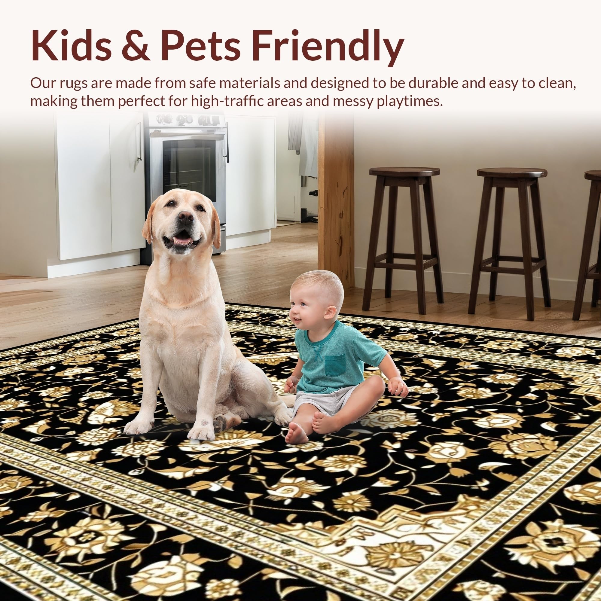 Ultra Soft Area Rug, Non Slip, Stain Resistant, Washable Area Rugs for Living Room, Bedroom, Stylish Cream and Black Lattice(Black) Overview: