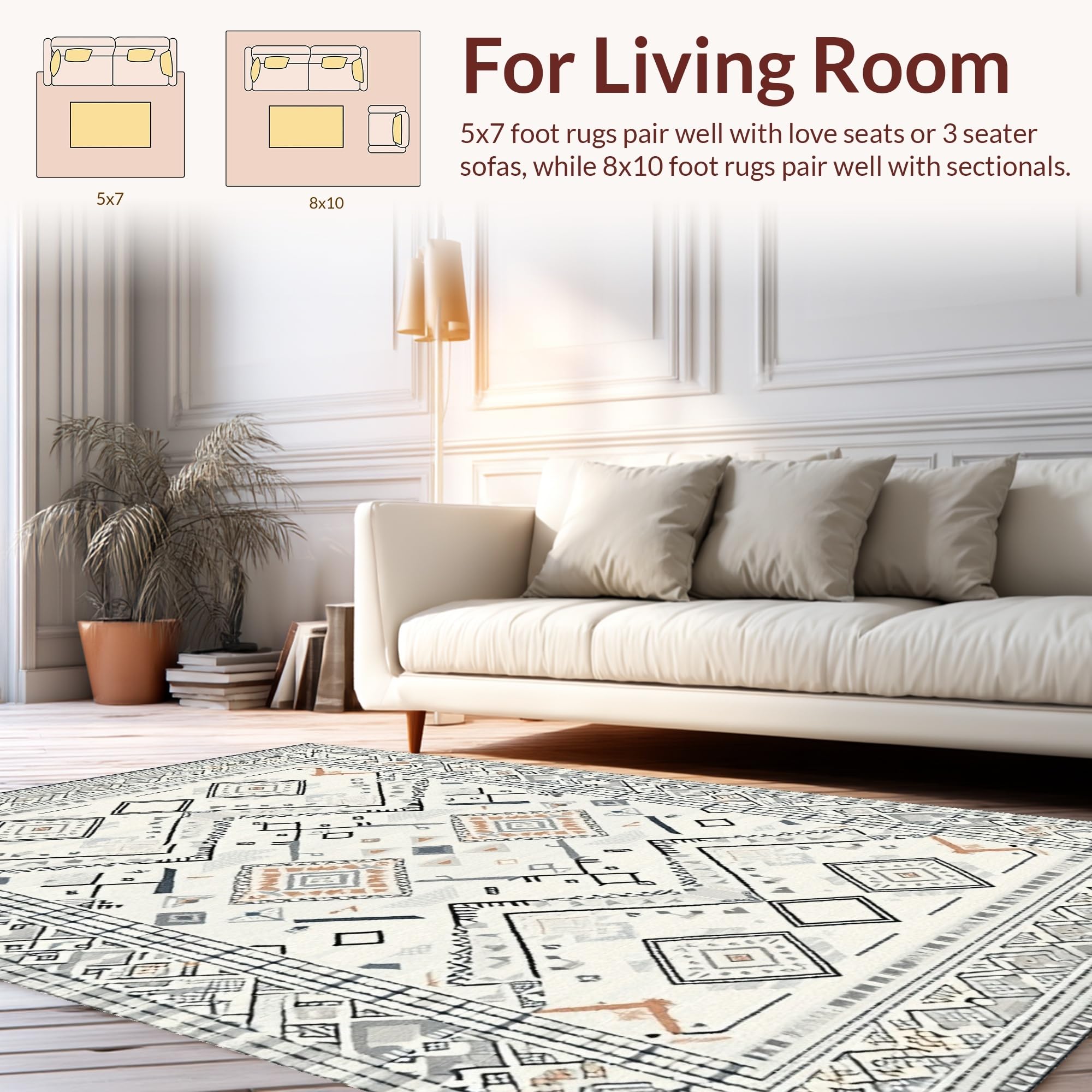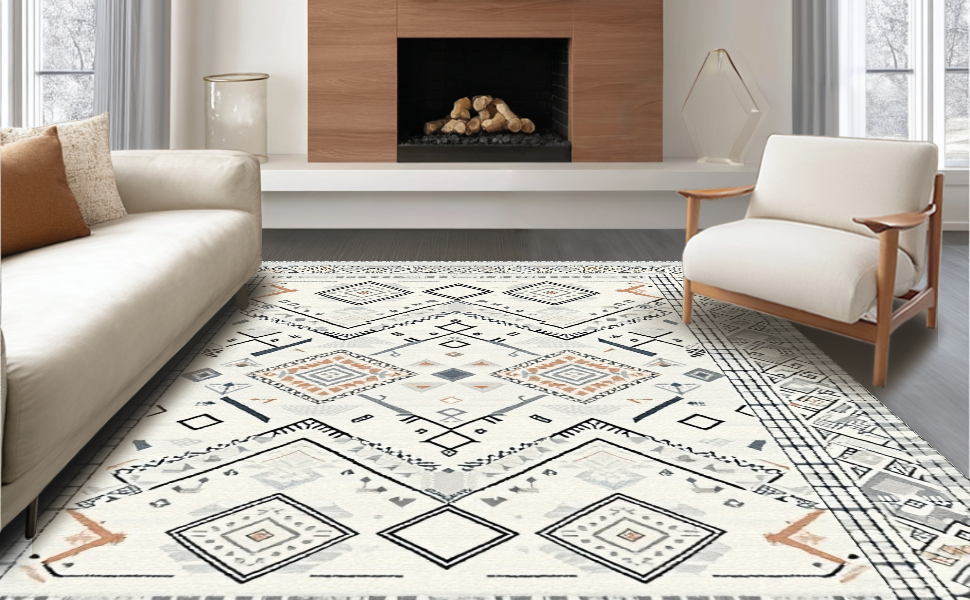 Ultra Soft Area Rug, Non Slip, Stain Resistant, Washable Area Rugs for Living Room, Bedroom, Stylish Diamond Minimalist Appeal(Gray) Overview: