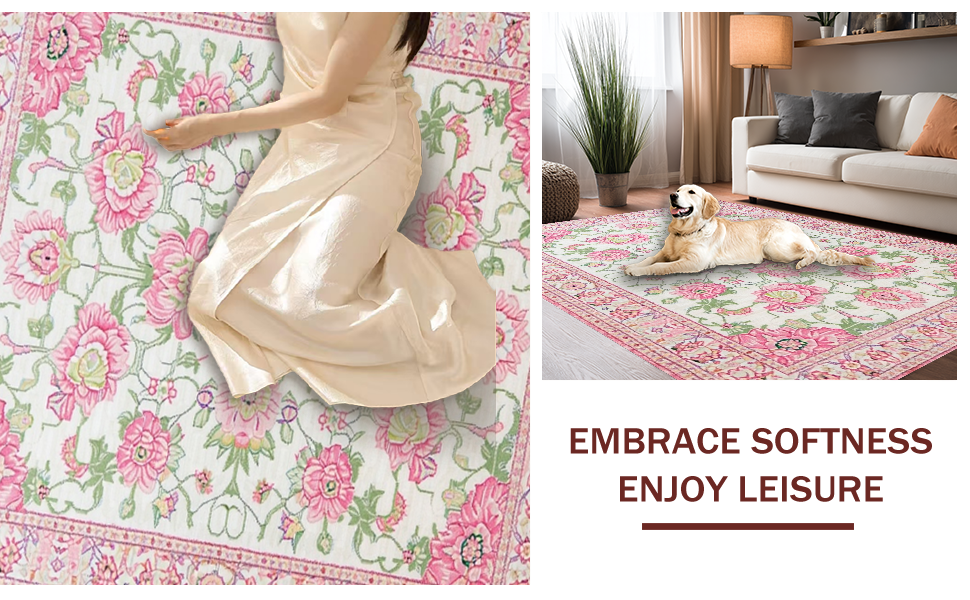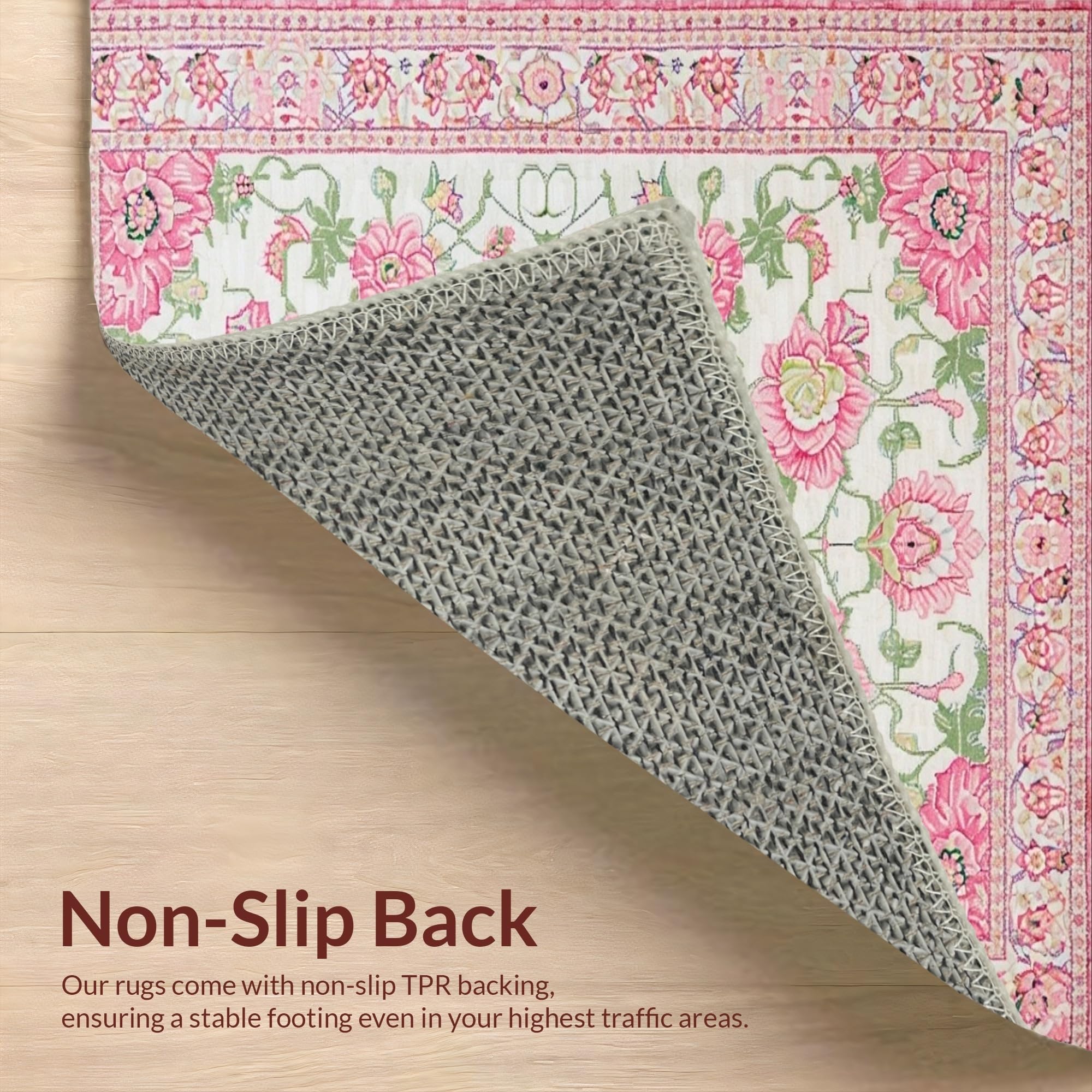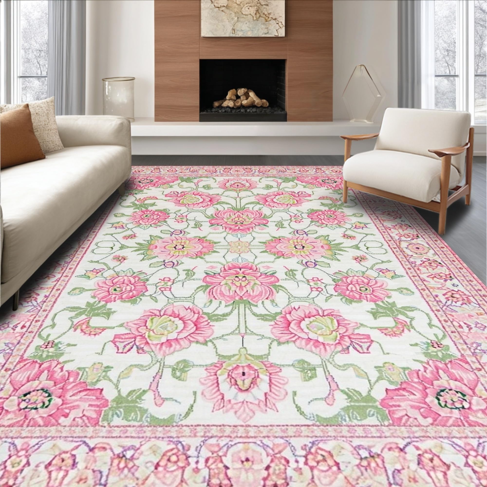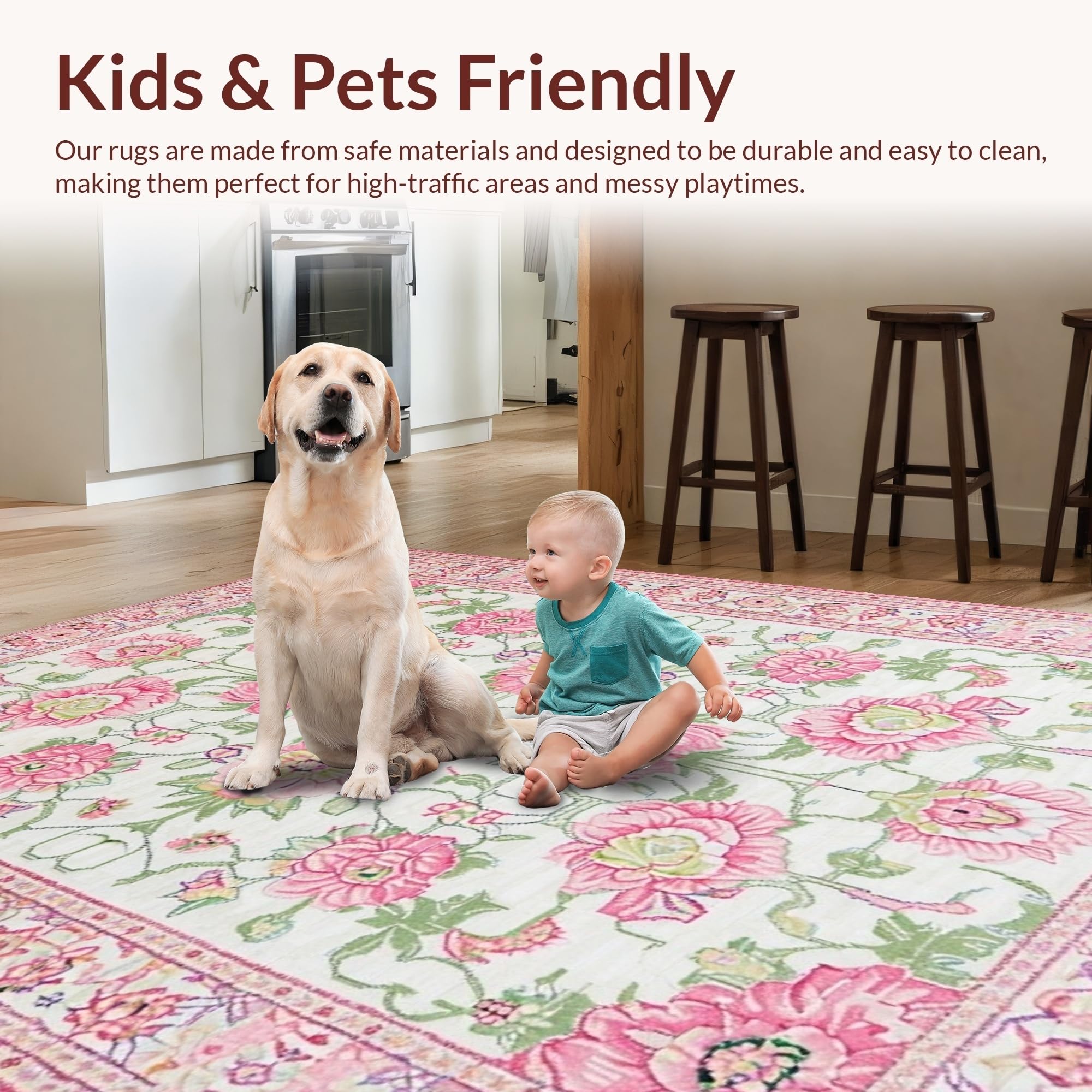 Ultra Soft Area Rug, Non Slip, Stain Resistant, Washable Area Rugs for Living Room, Bedroom, Stylish Distressed Floral Touch(Pink) Overview: