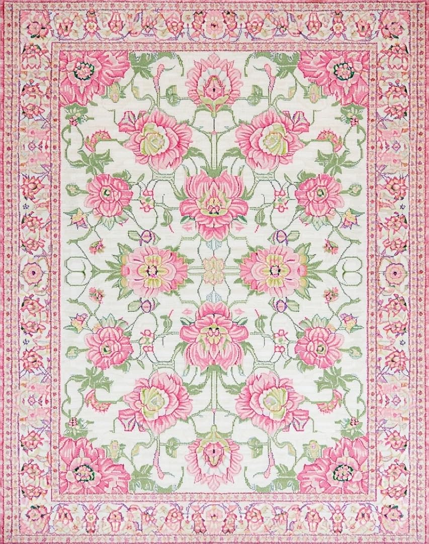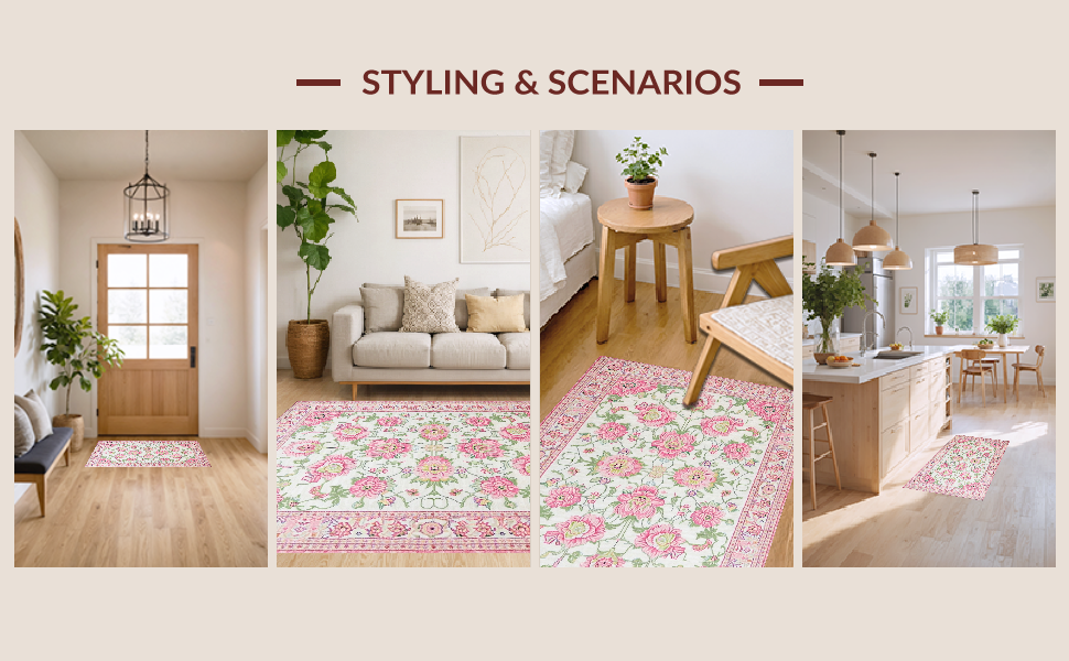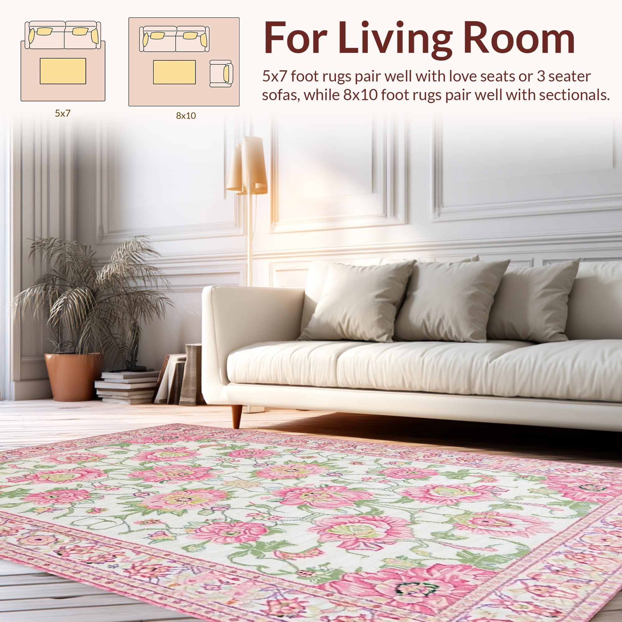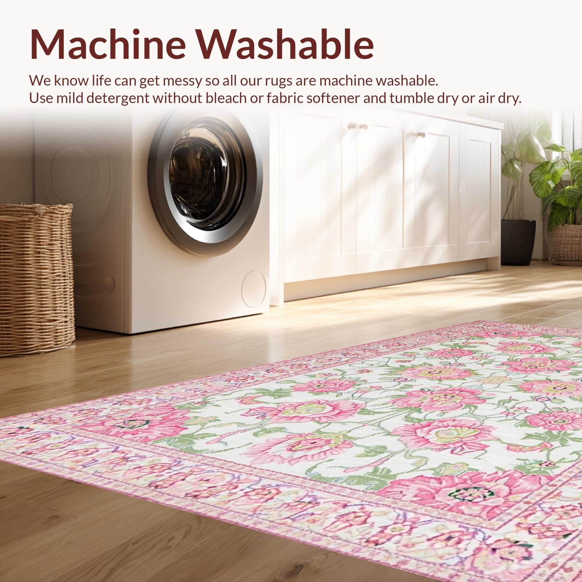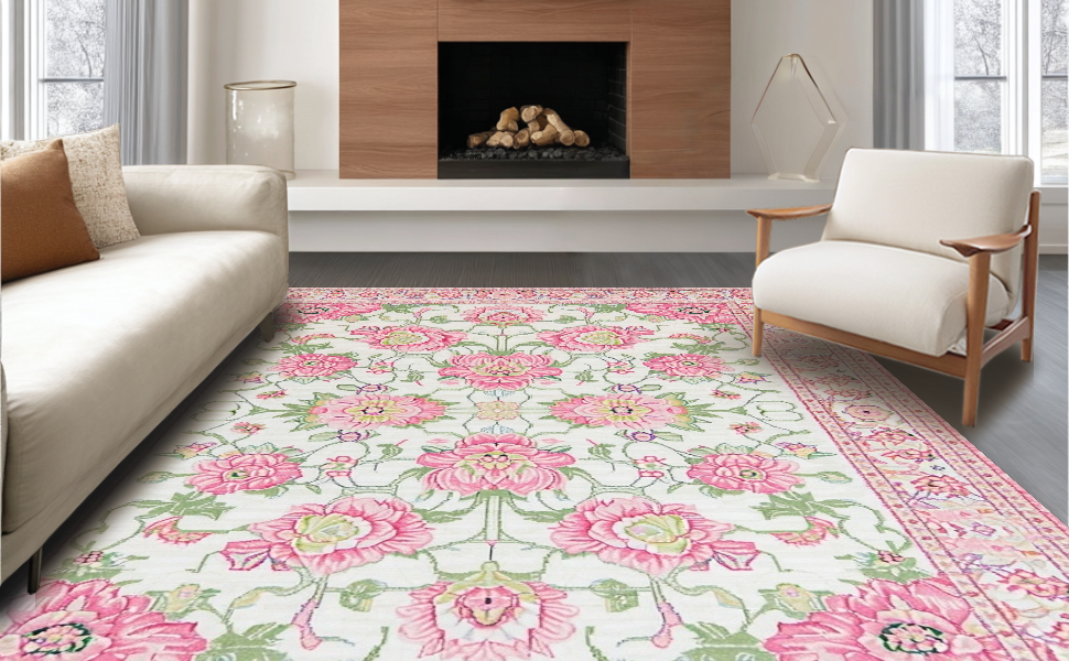 Ultra Soft Area Rug, Non Slip, Stain Resistant, Washable Area Rugs for Living Room, Bedroom, Stylish Distressed Floral Touch(Pink) Overview: