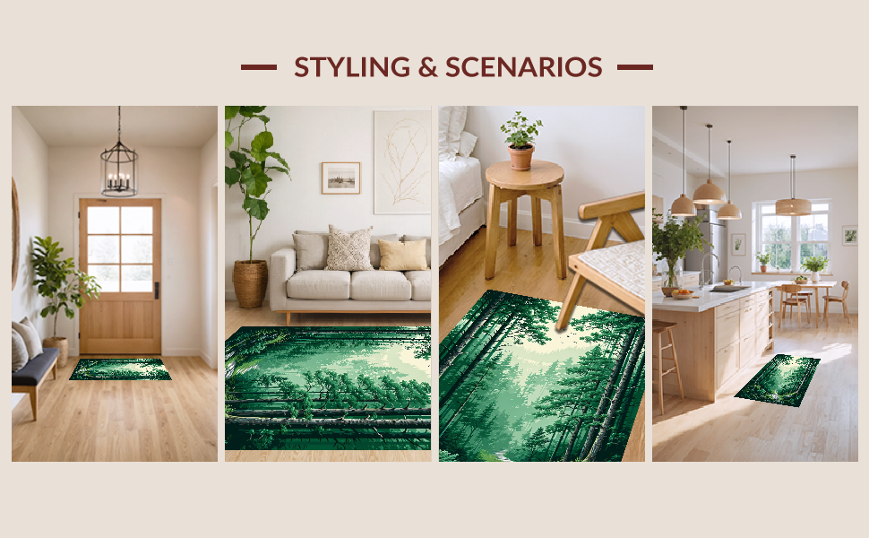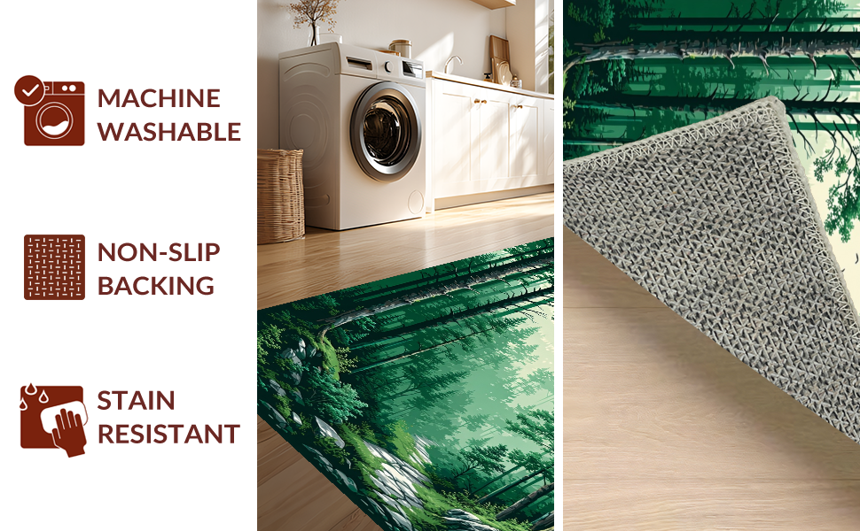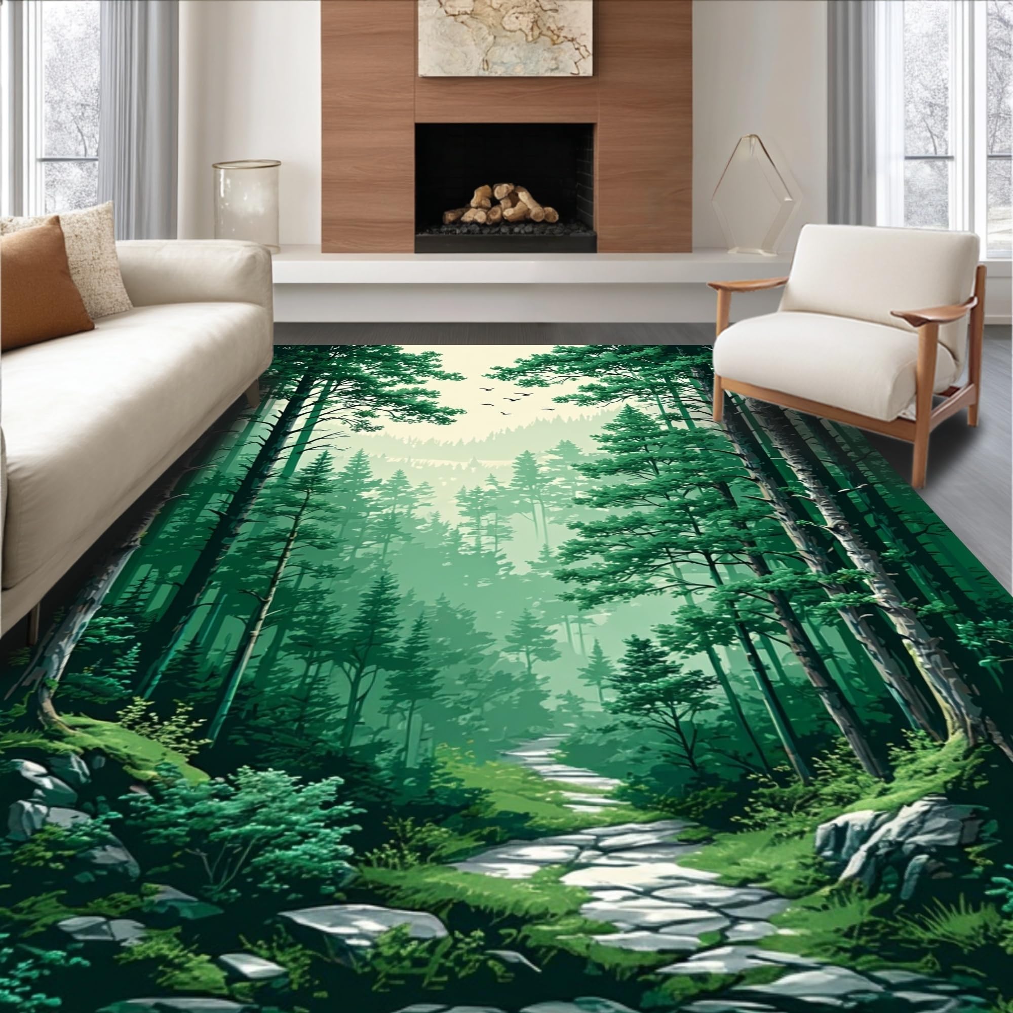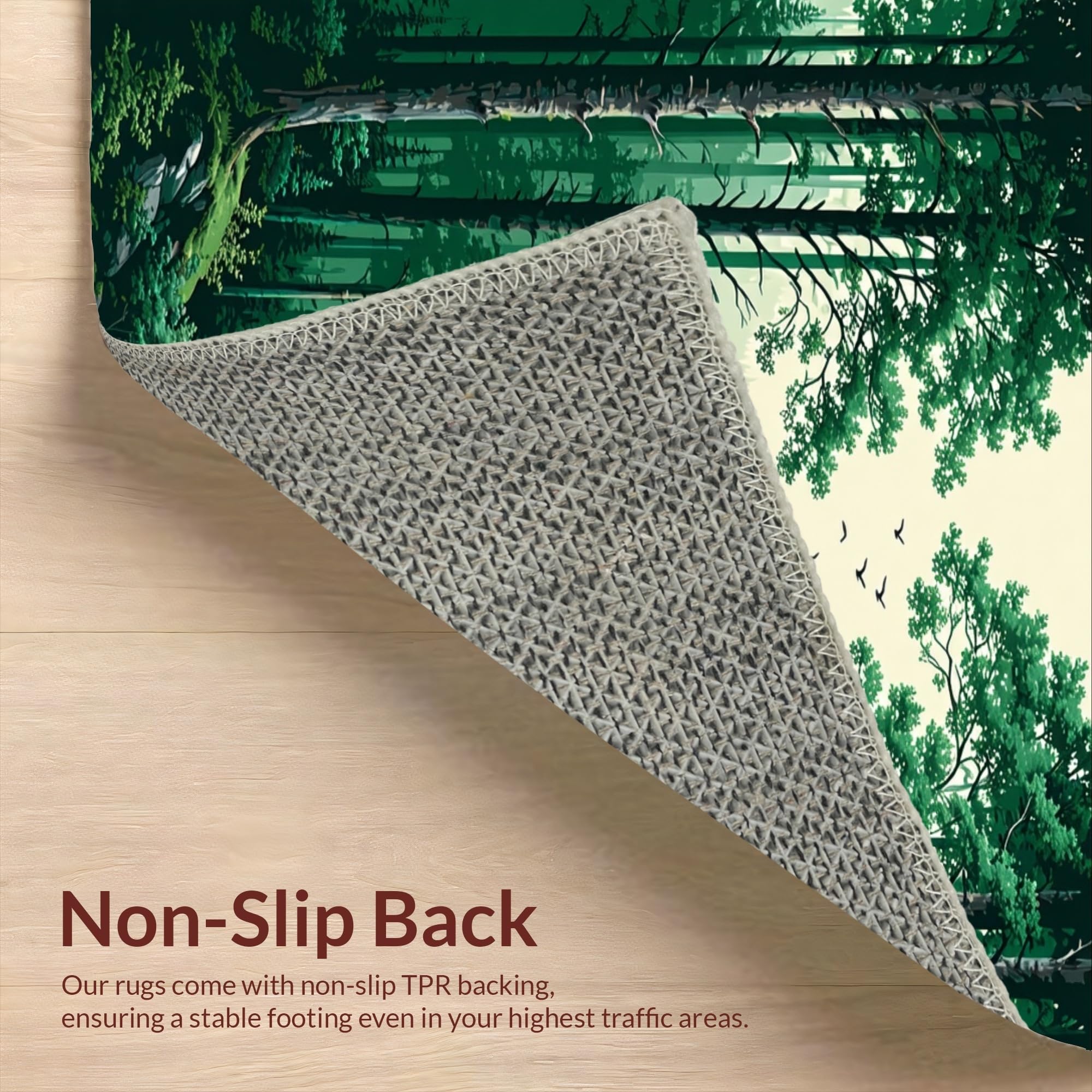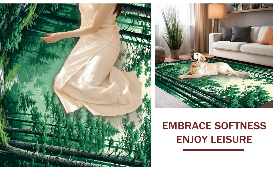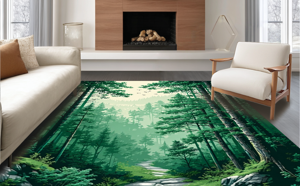 Ultra Soft Area Rug, Non Slip, Stain Resistant, Washable Area Rugs for Living Room, Bedroom, Stylish Dreamy Nature Scene(Green) Overview: