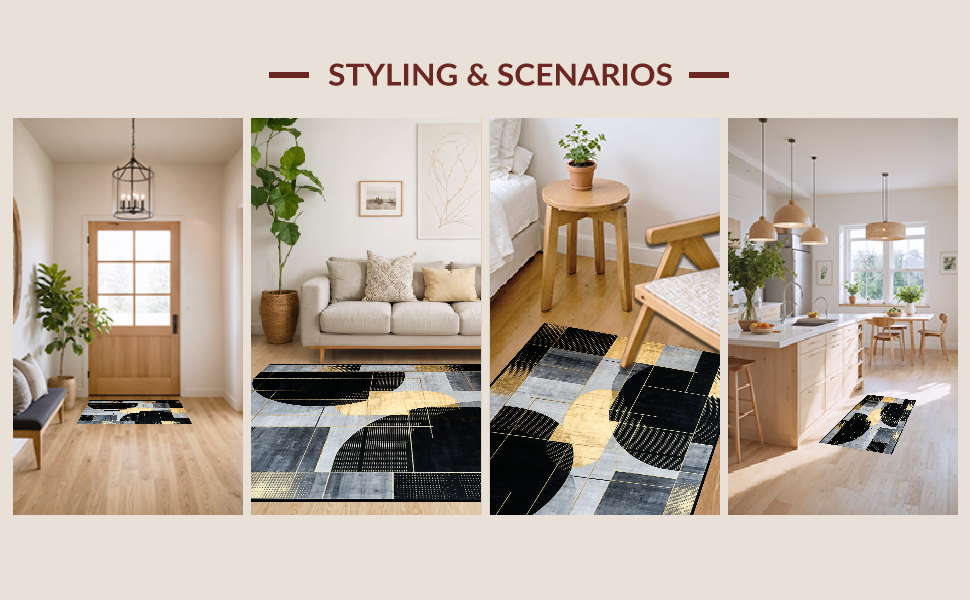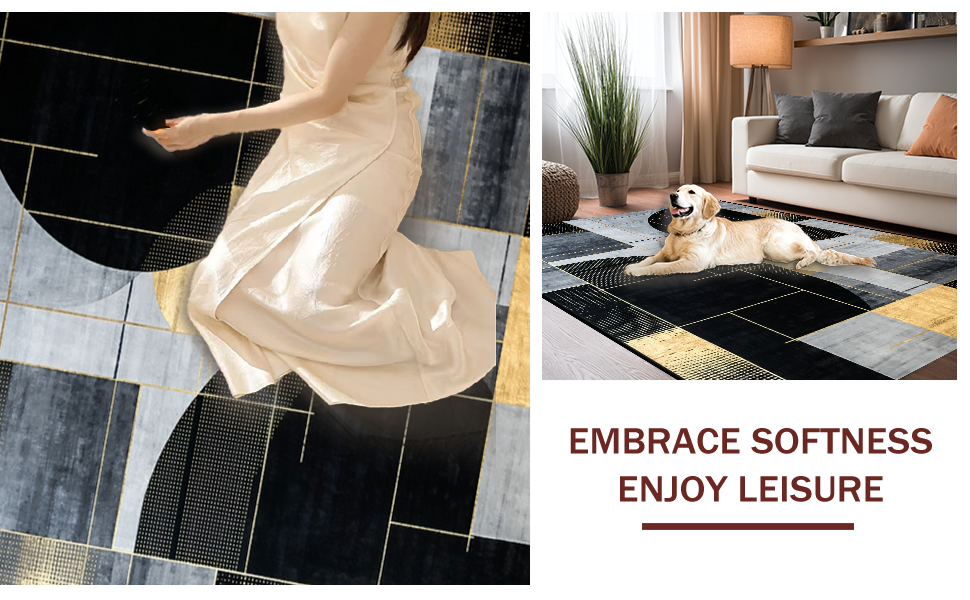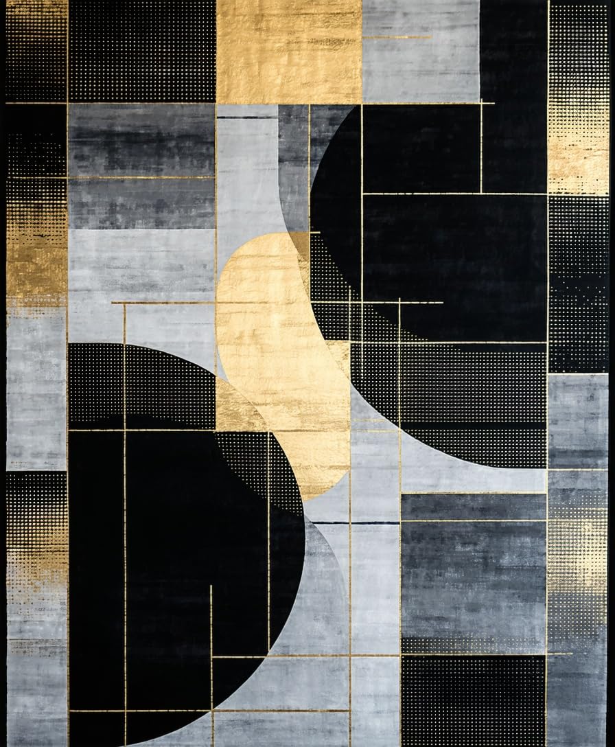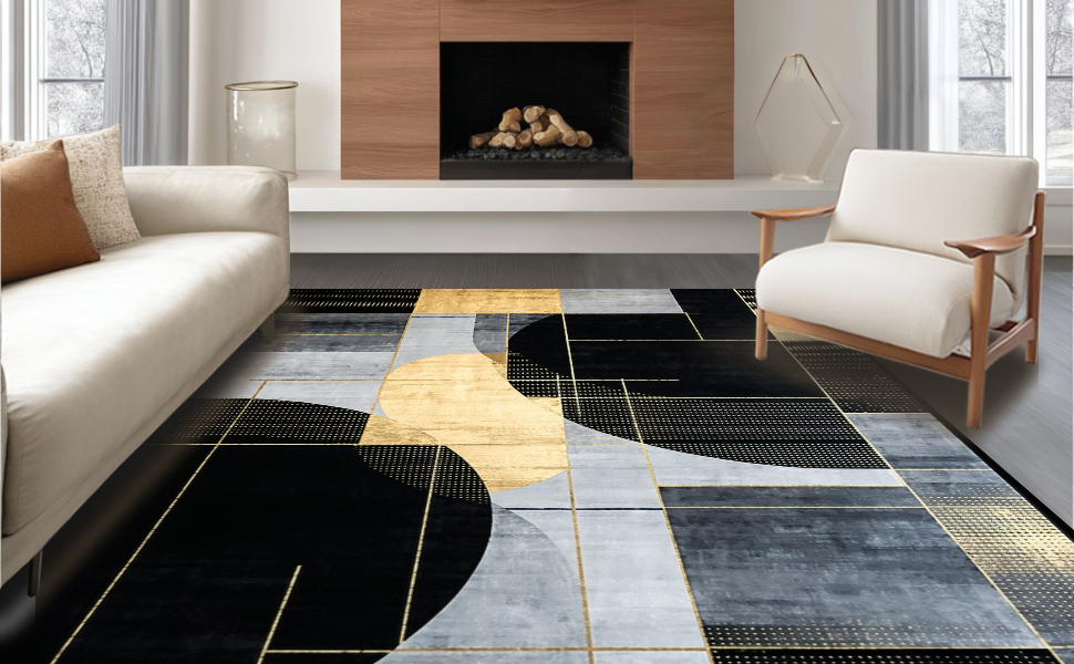 Ultra Soft Area Rug, Non Slip, Stain Resistant, Washable Area Rugs for Living Room, Bedroom, Stylish Dynamic Symmetrical Shapes(Gray) Overview: