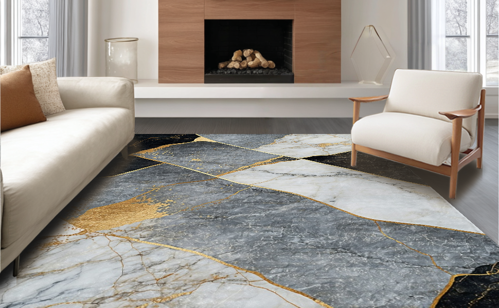 Ultra Soft Area Rug, Non Slip, Stain Resistant, Washable Area Rugs for Living Room, Bedroom, Stylish Earth Toned Linear Flow(Gray) Overview: