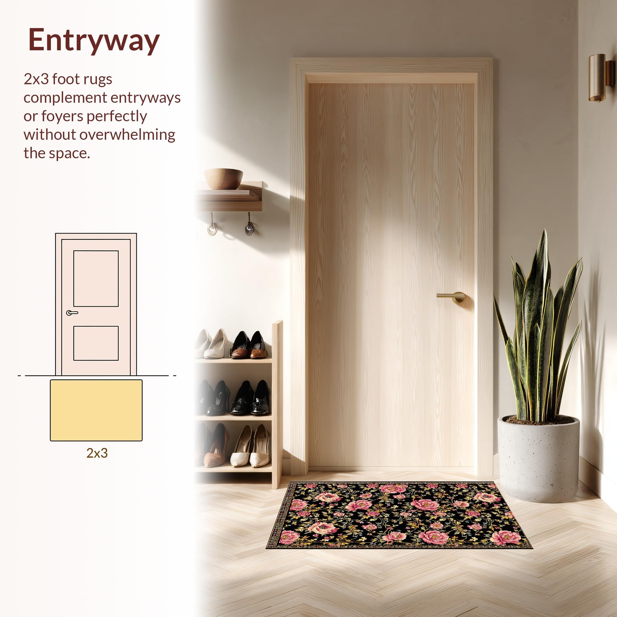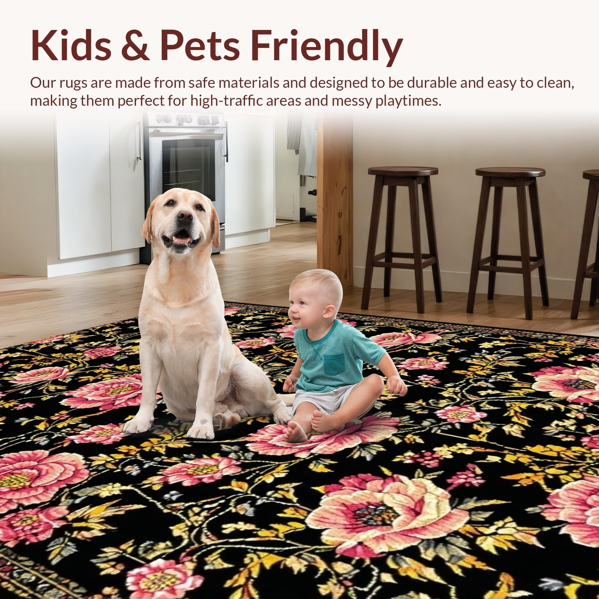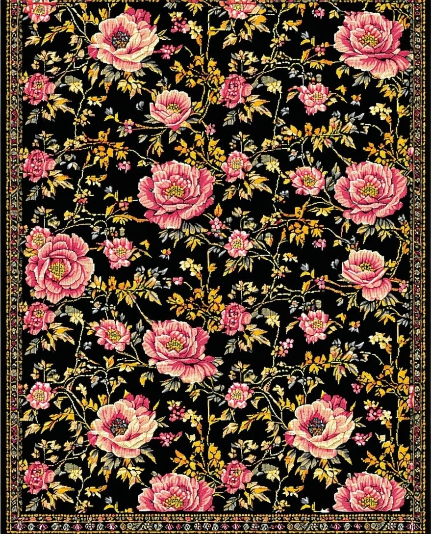 Ultra Soft Area Rug, Non Slip, Stain Resistant, Washable Area Rugs for Living Room, Bedroom, Stylish Earthy Floral Arrangement(Black) Overview: