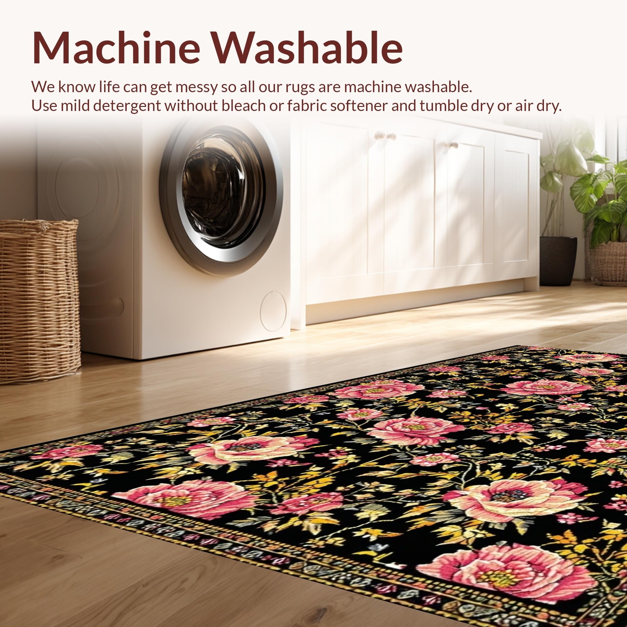 - Machine Washable: Our rugs can be easily thrown in the wash machine.