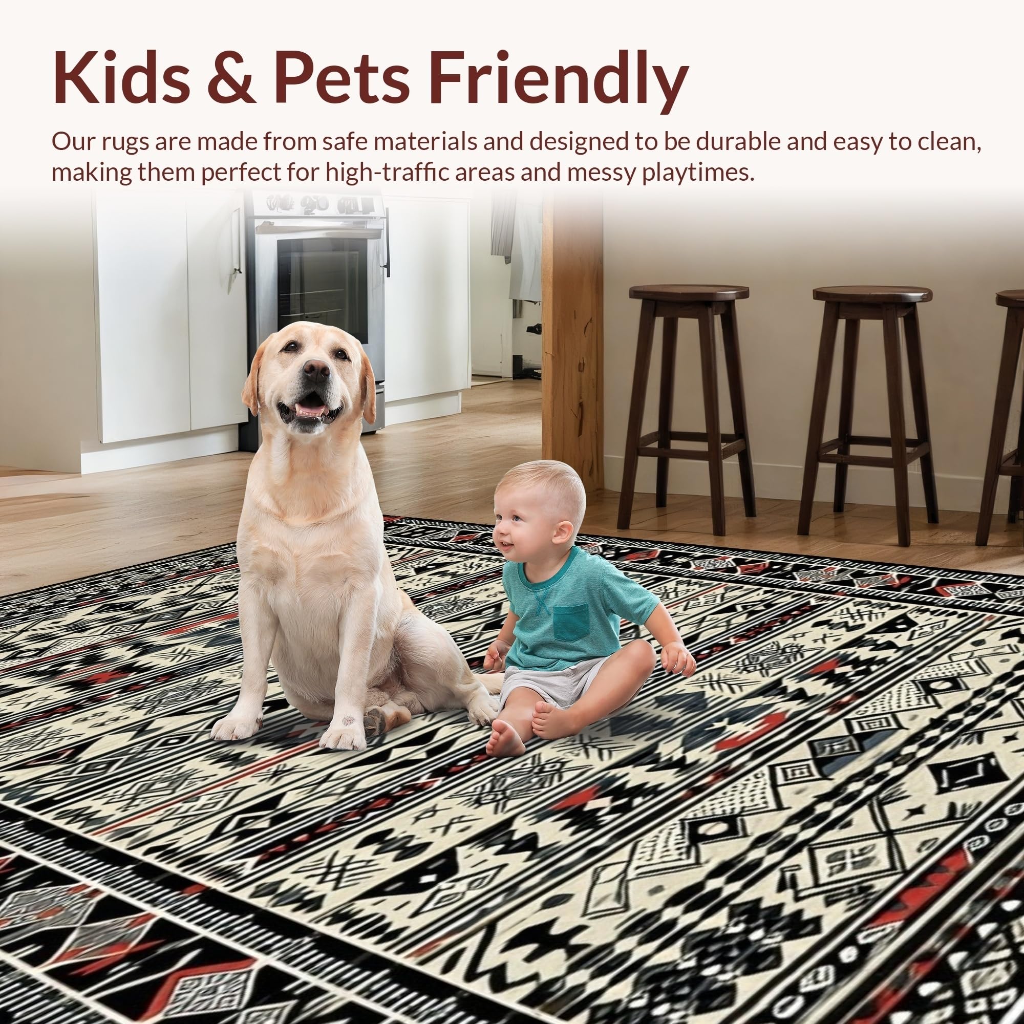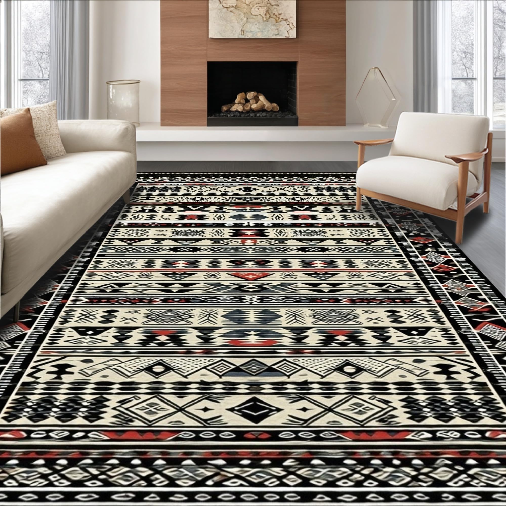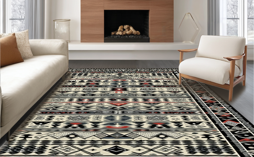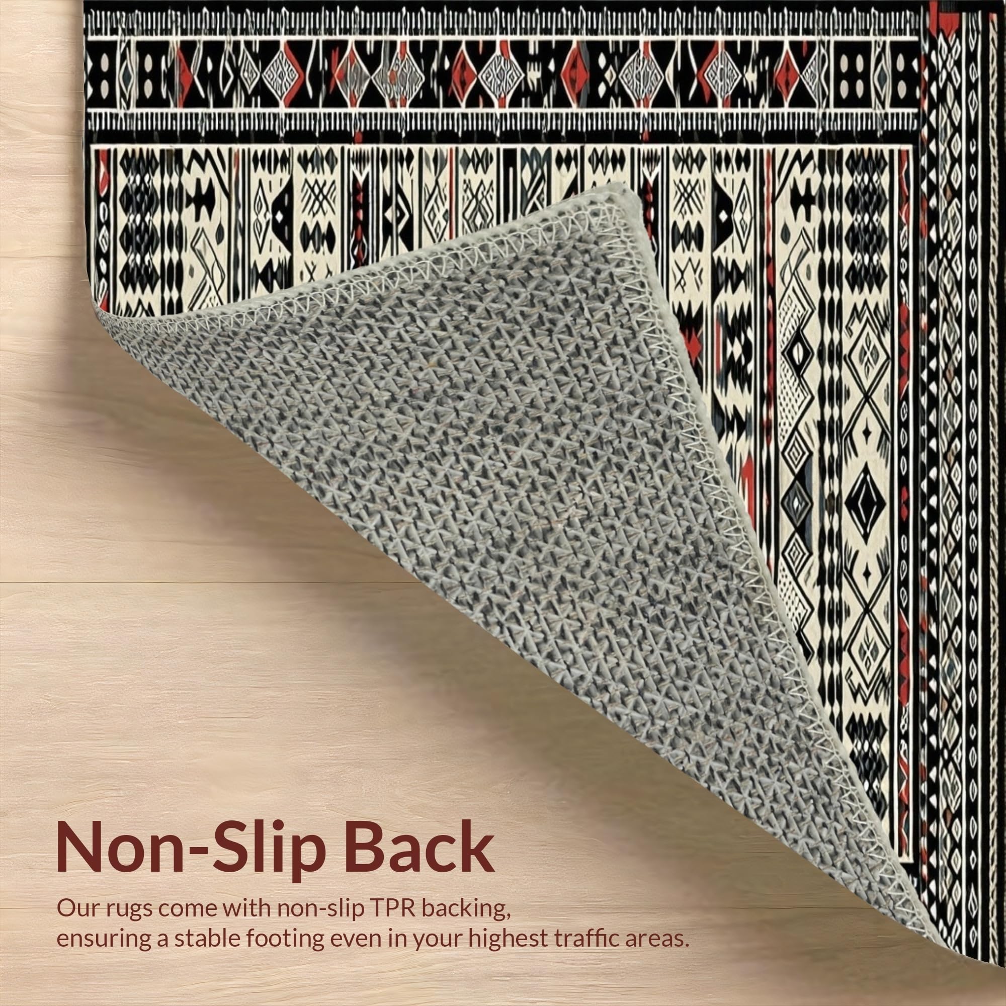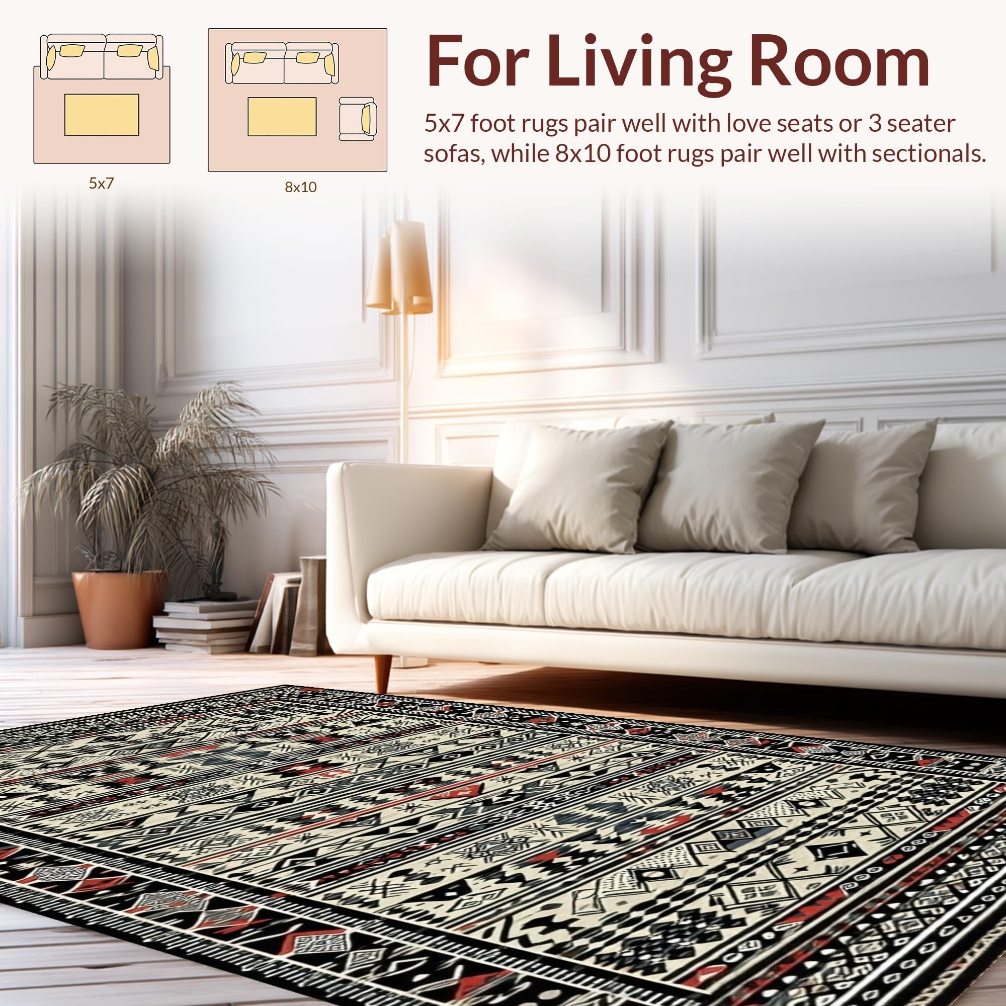 Ultra Soft Area Rug, Non Slip, Stain Resistant, Washable Area Rugs for Living Room, Bedroom, Stylish Earthy Trellis Aesthetic(Black) Overview:
