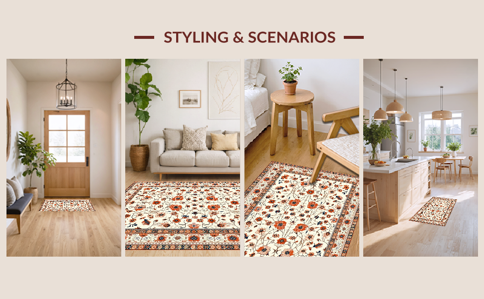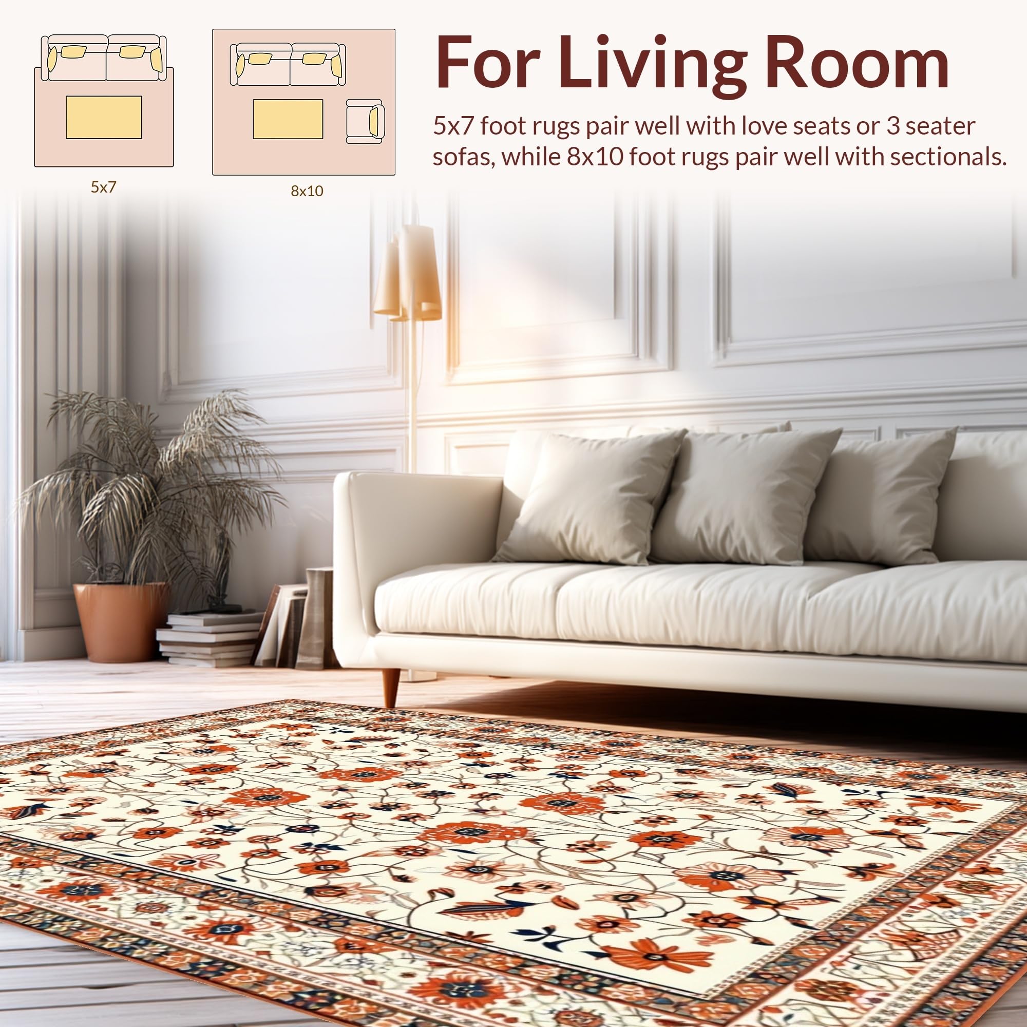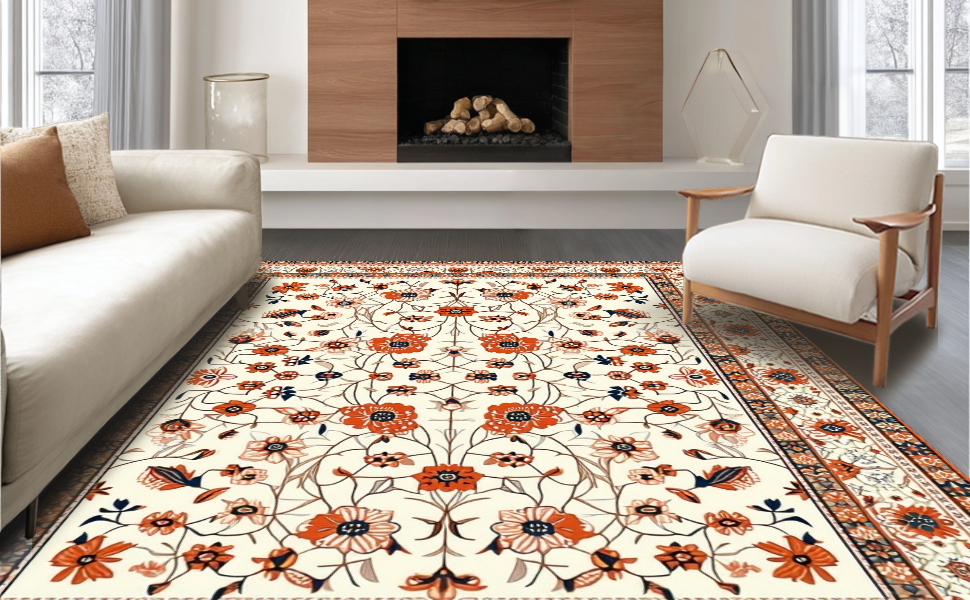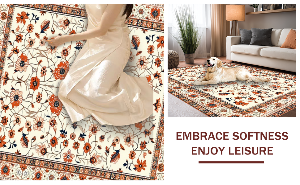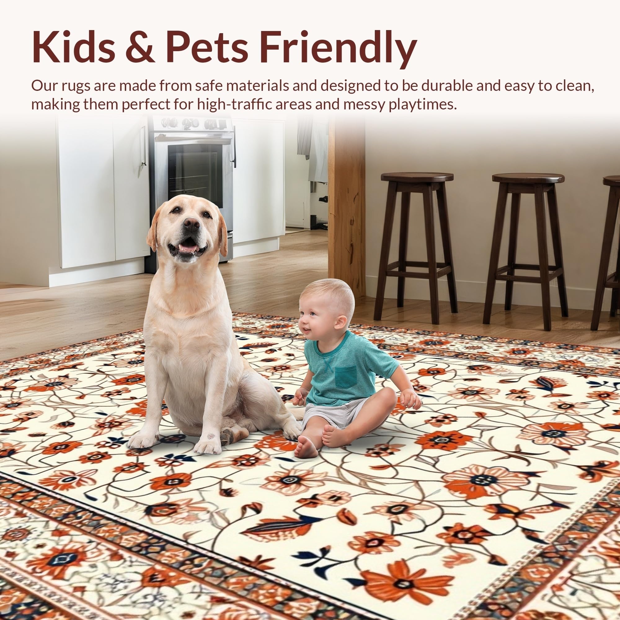 Ultra Soft Area Rug, Non Slip, Stain Resistant, Washable Area Rugs for Living Room, Bedroom, Stylish Eco-Inspired Pattern(Beige) Overview: