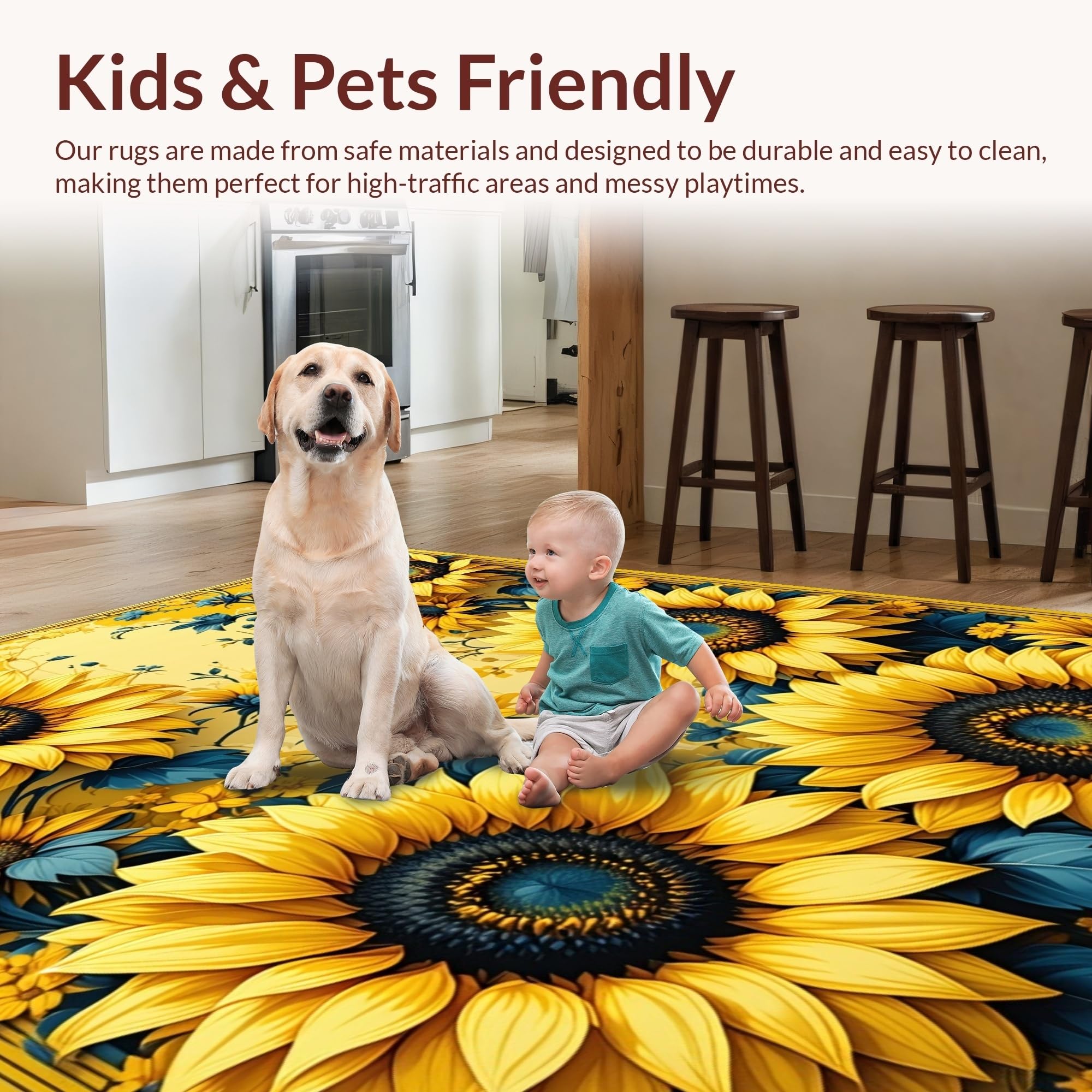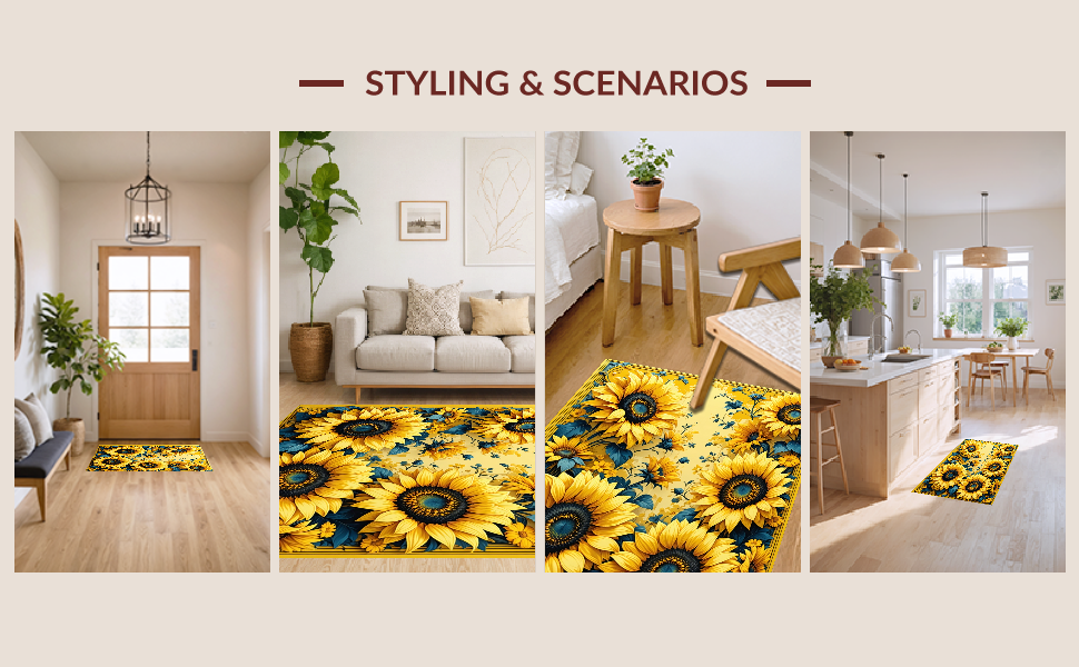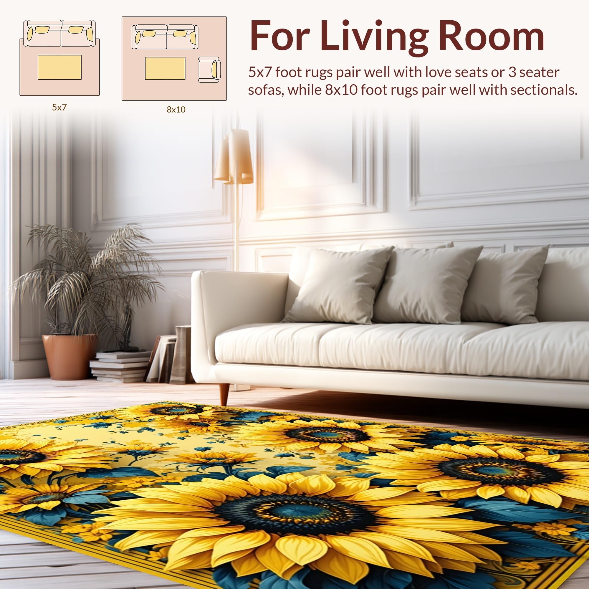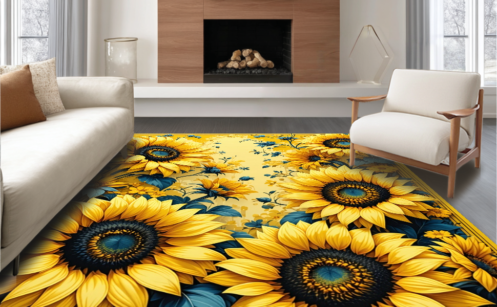 Ultra Soft Area Rug, Non Slip, Stain Resistant, Washable Area Rugs for Living Room, Bedroom, Stylish Floral Artful Arrangement(Yellow) Overview: