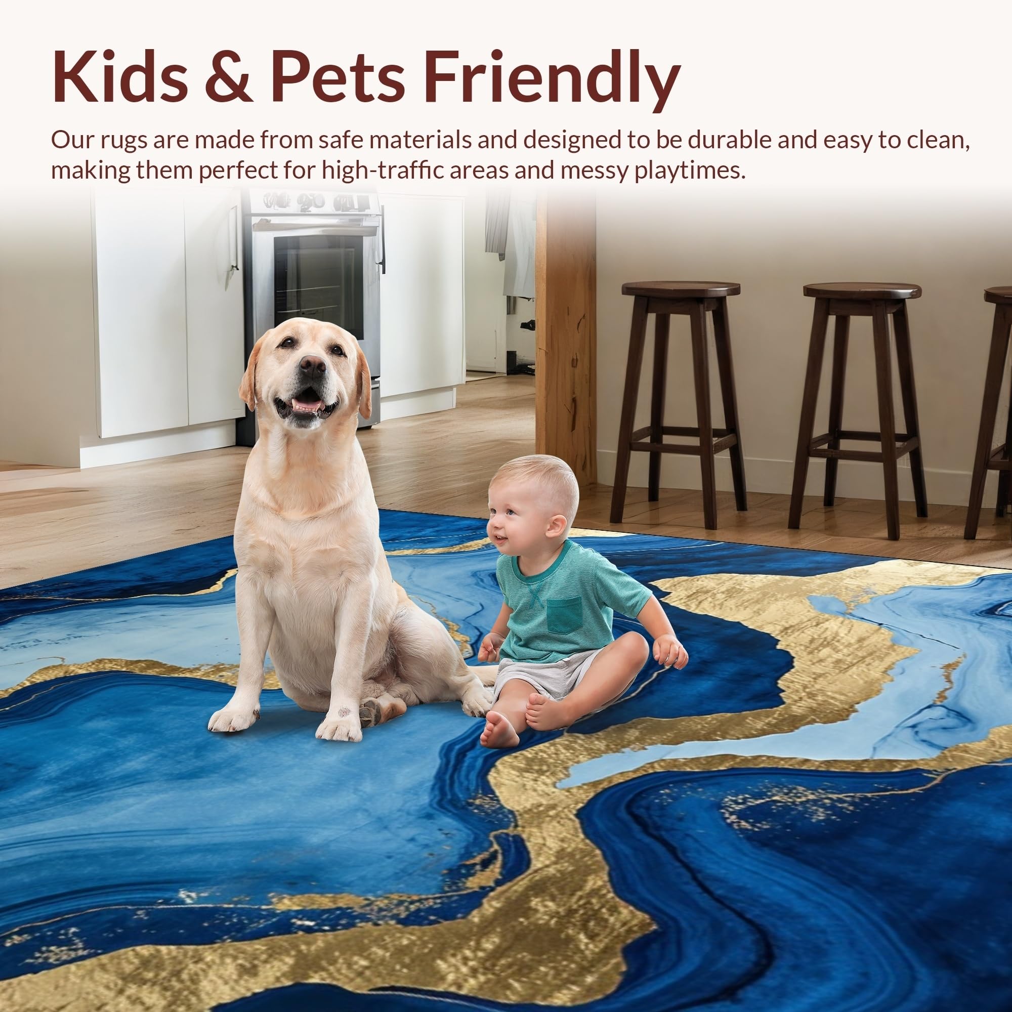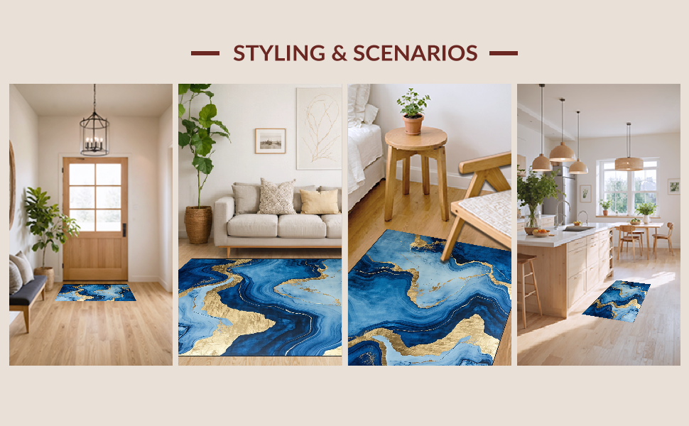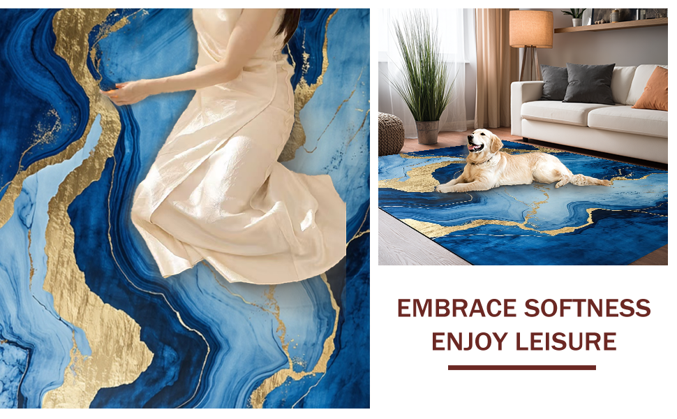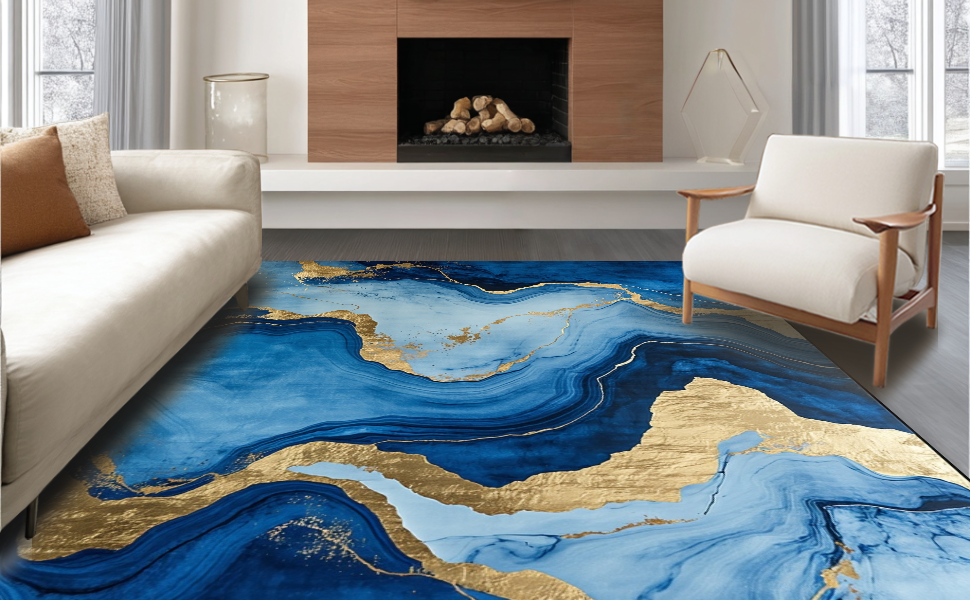 Ultra Soft Area Rug, Non Slip, Stain Resistant, Washable Area Rugs for Living Room, Bedroom, Stylish Fluid Color Blend(Blue) Overview: