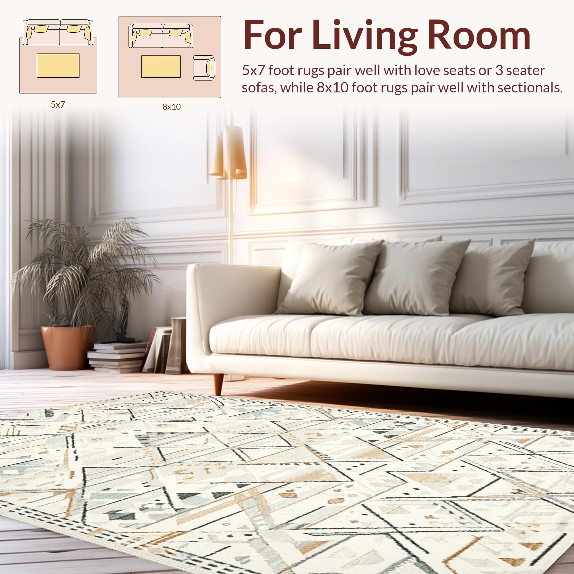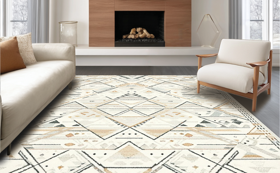 Ultra Soft Area Rug, Non Slip, Stain Resistant, Washable Area Rugs for Living Room, Bedroom, Stylish Freeform Rustic Charm(Beige) Overview: