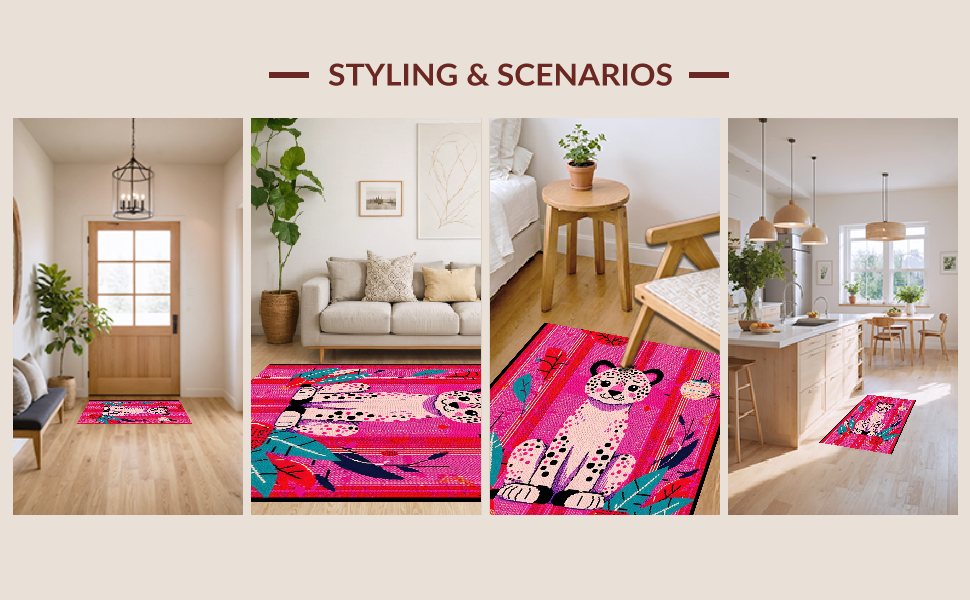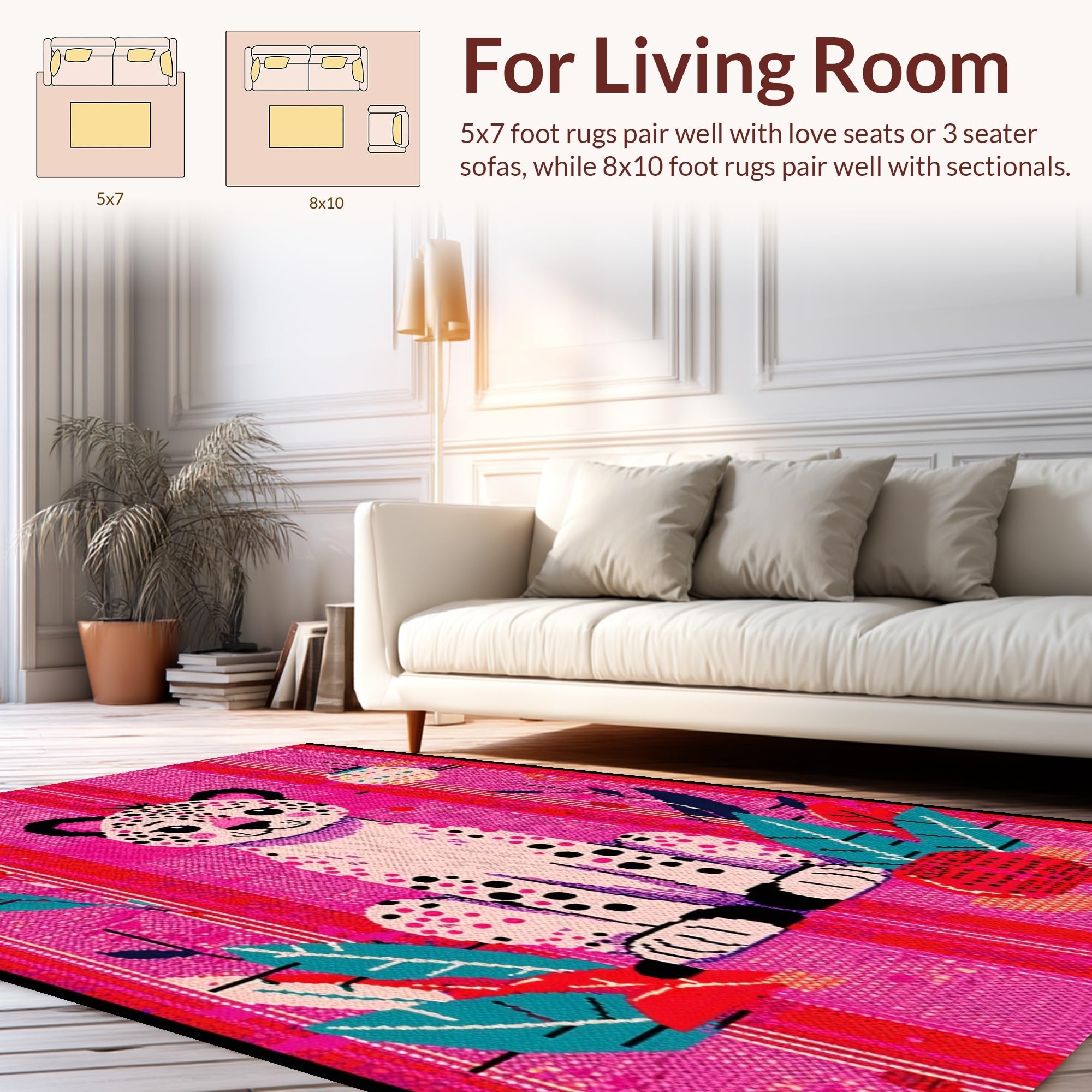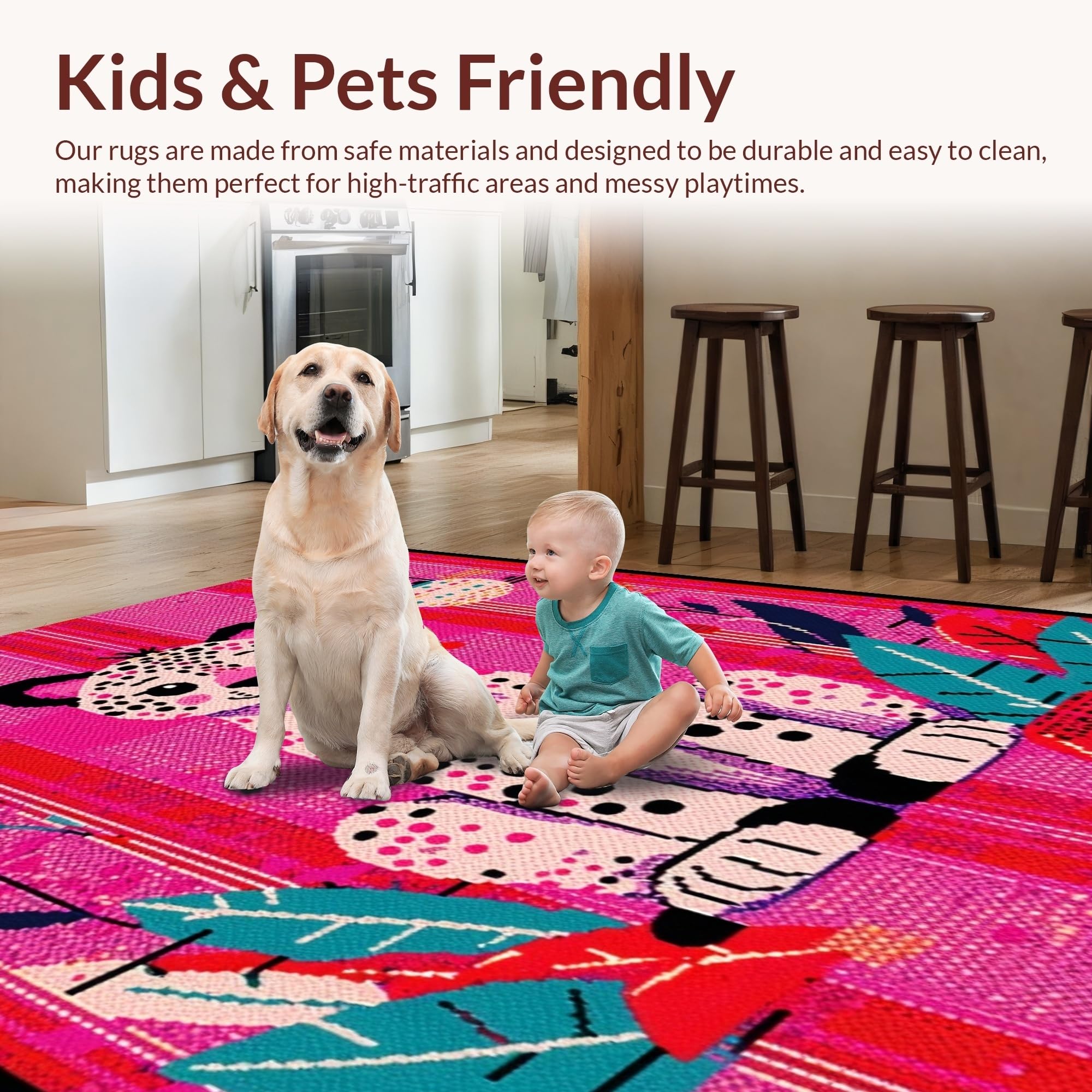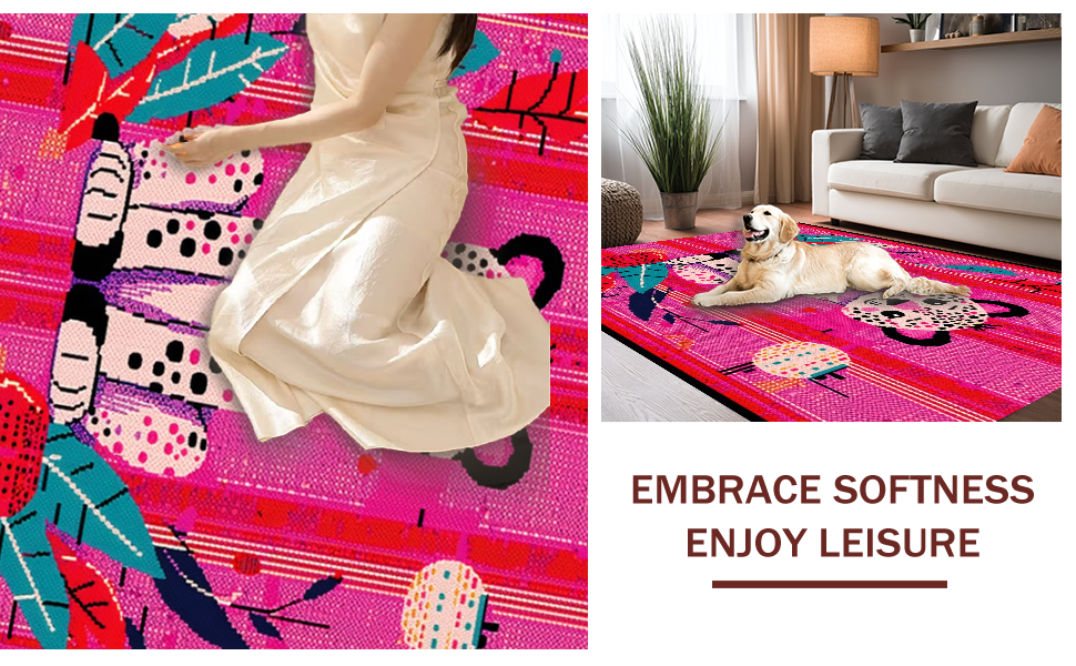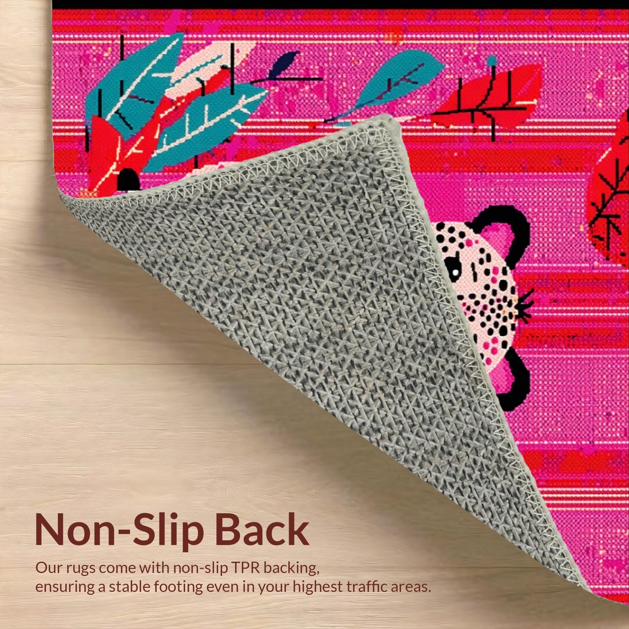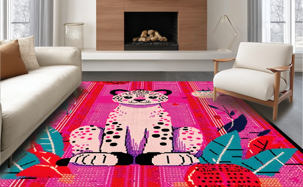 Ultra Soft Area Rug, Non Slip, Stain Resistant, Washable Area Rugs for Living Room, Bedroom, Stylish Fun Leopard Illustration(Pink) Overview: