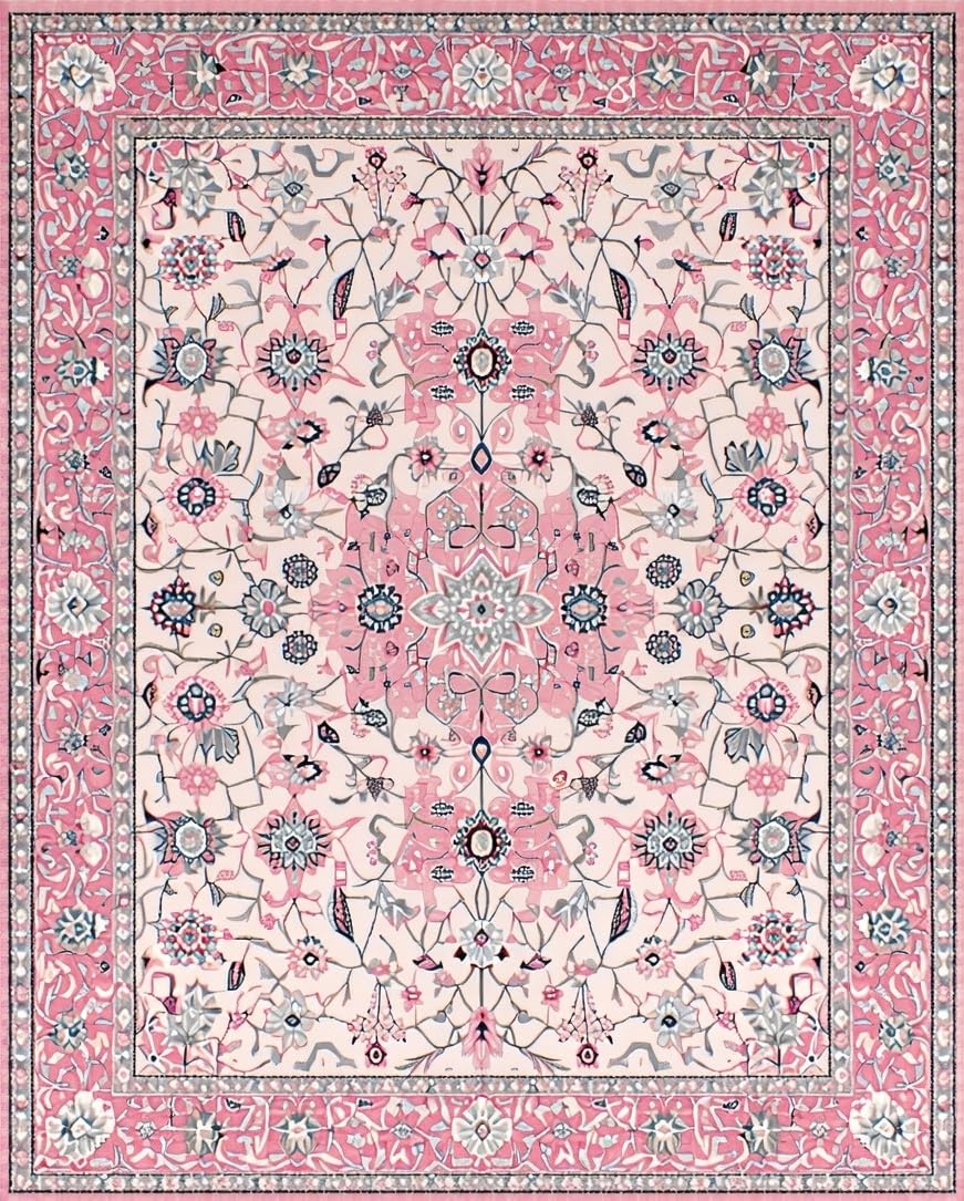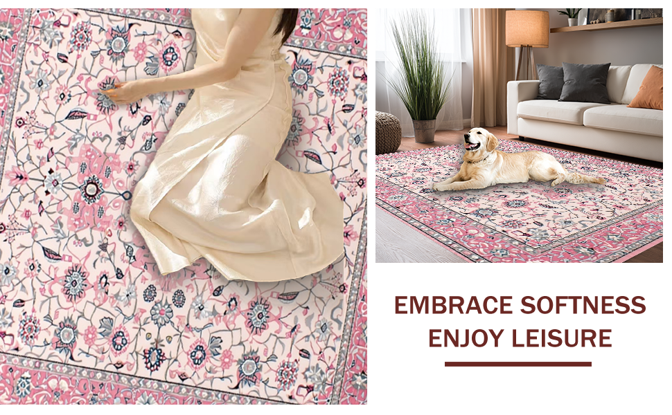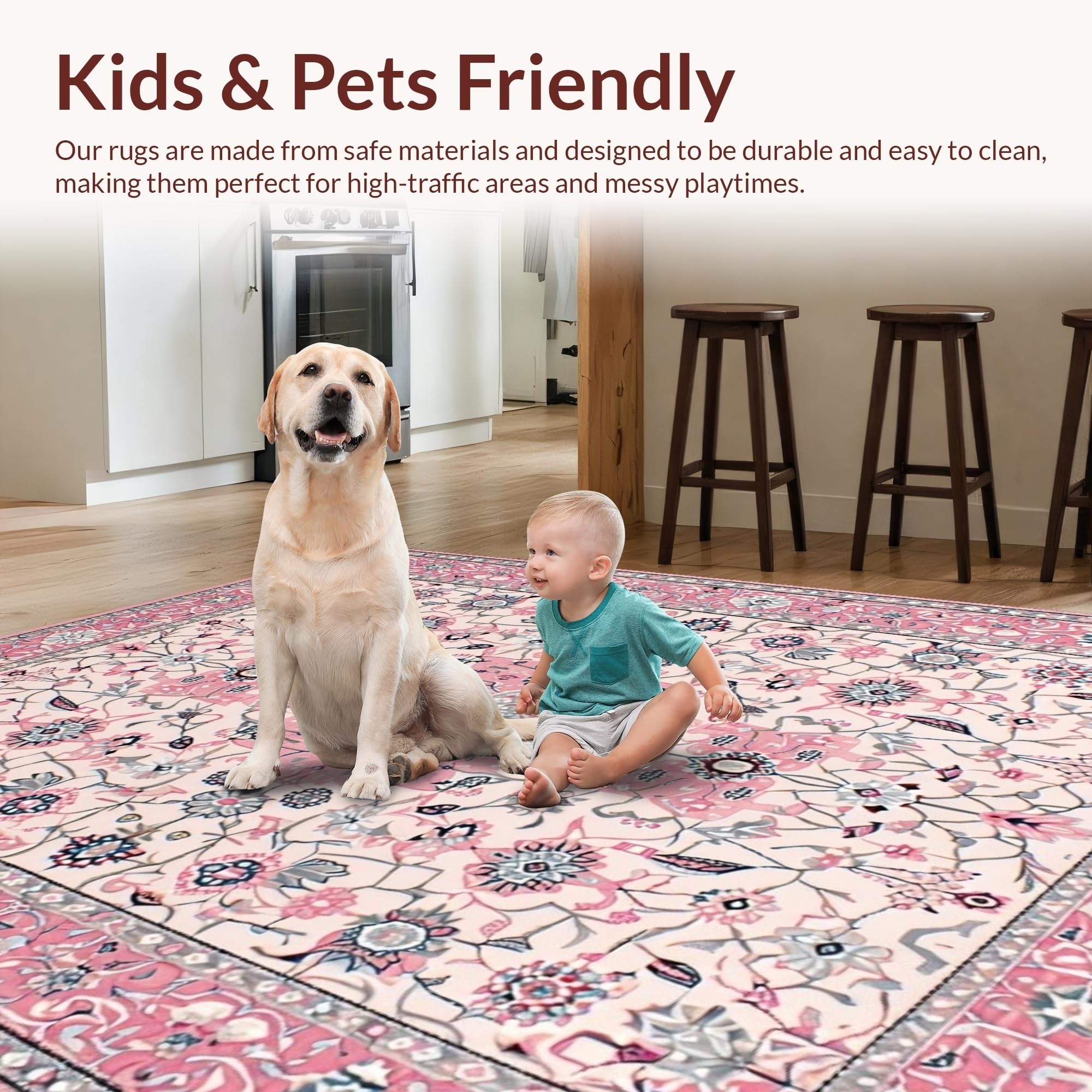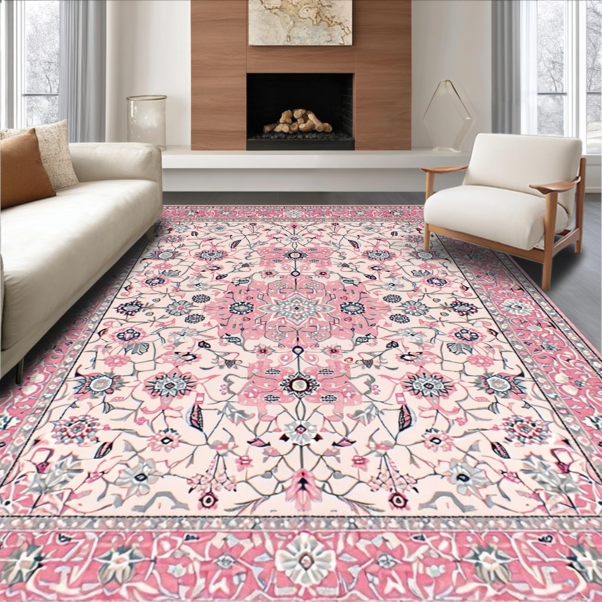 Ultra Soft Area Rug, Non Slip, Stain Resistant, Washable Area Rugs for Living Room, Bedroom, Stylish Gray Floral Symmetrical Elements(Pink) Overview: