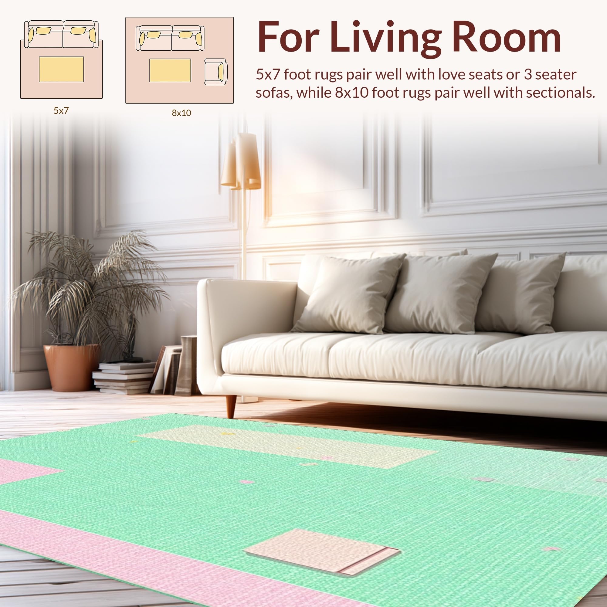 Ultra Soft Area Rug, Non Slip, Stain Resistant, Washable Area Rugs for Living Room, Bedroom, Stylish Green Lattice Adventure(Green) Overview: