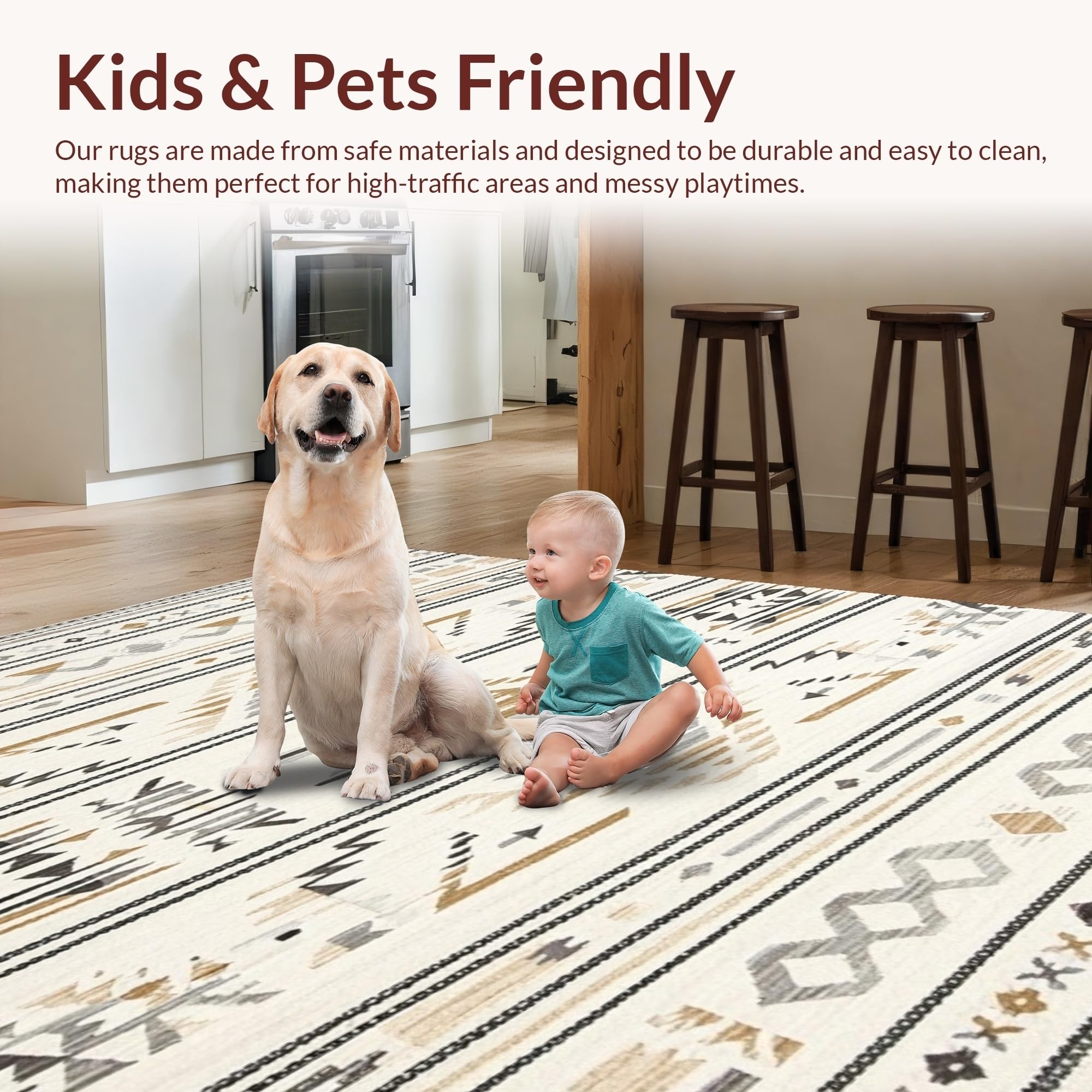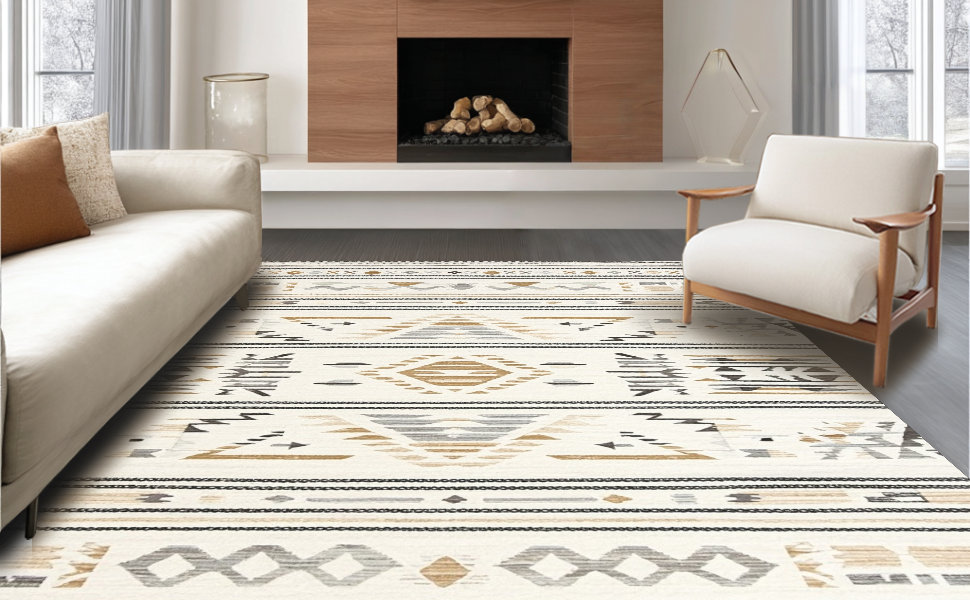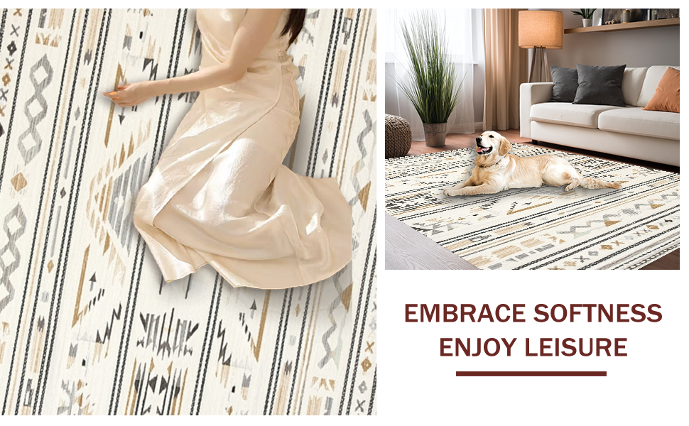 Ultra Soft Area Rug, Non Slip, Stain Resistant, Washable Area Rugs for Living Room, Bedroom, Stylish Half-Circle Crochet Accent(Beige) Overview: