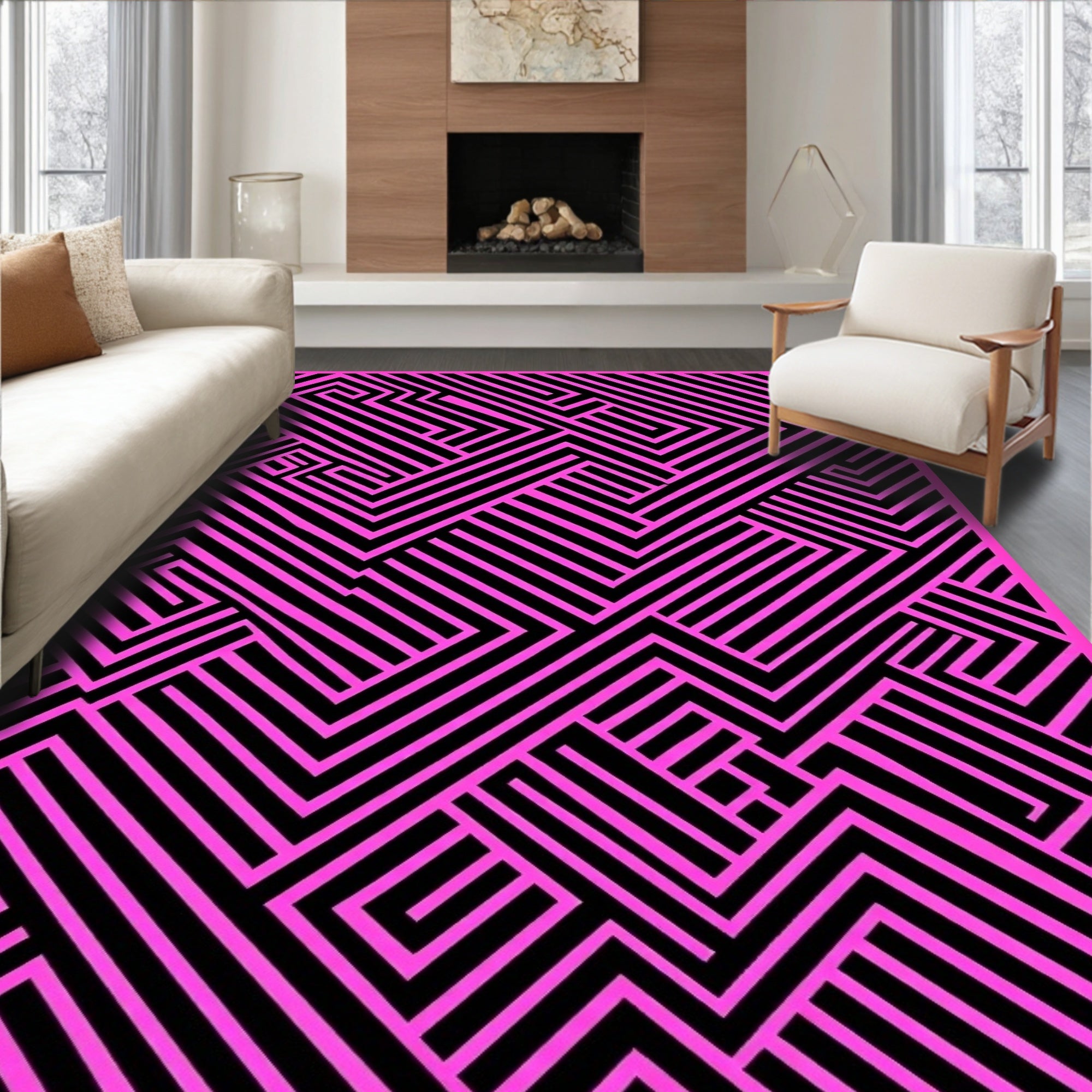 Ultra Soft Area Rug, Non Slip, Stain Resistant, Washable Area Rugs for Living Room, Bedroom, Stylish Herringbone Zigzag Modernist Sleek Diagonal Lattice(Pink) Overview: