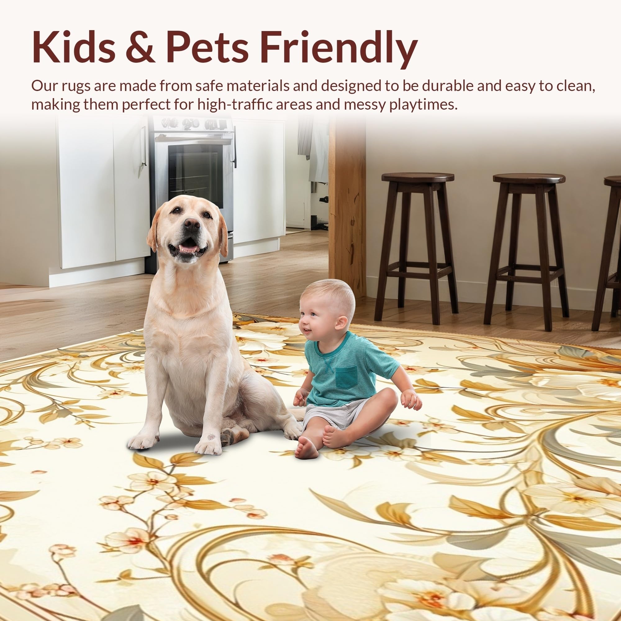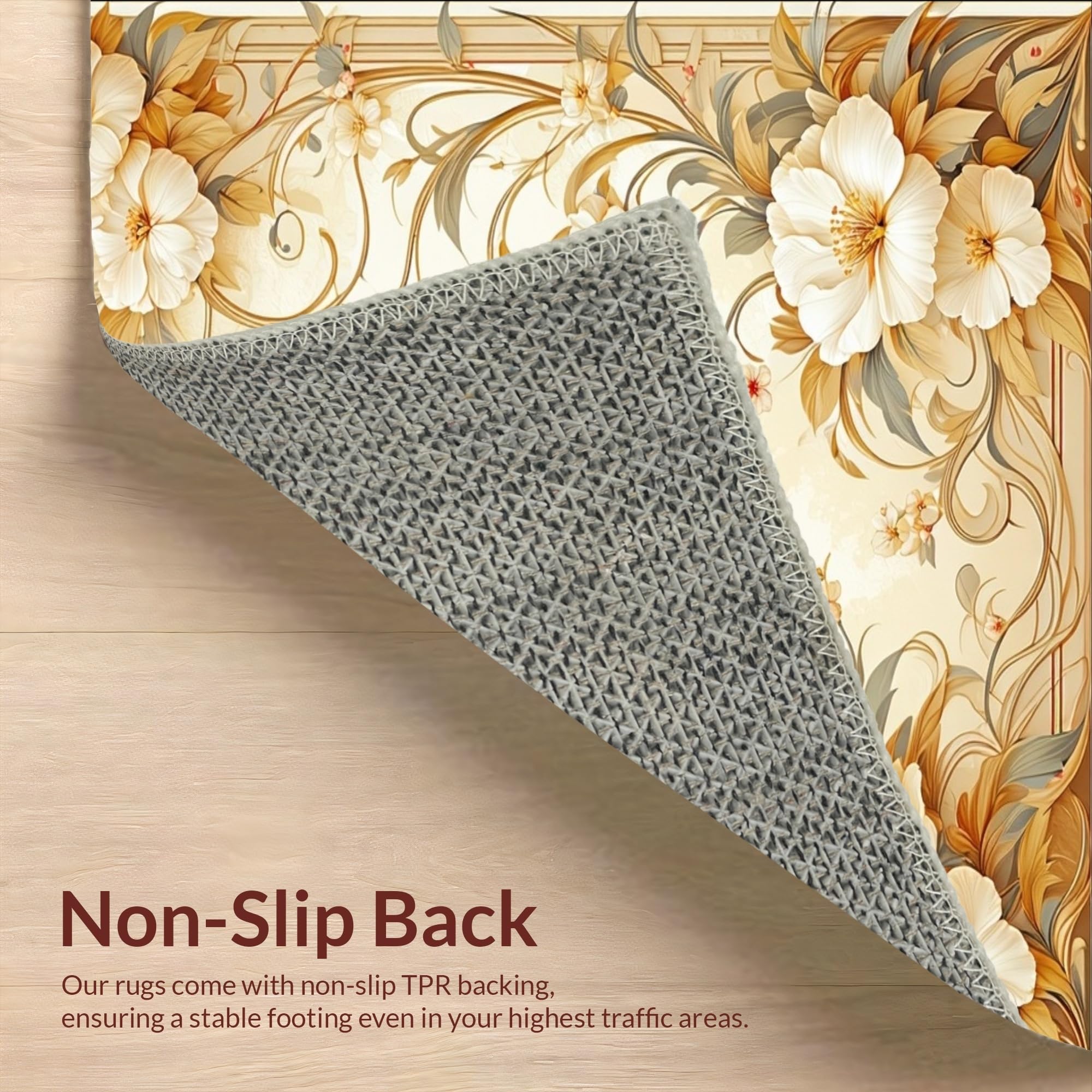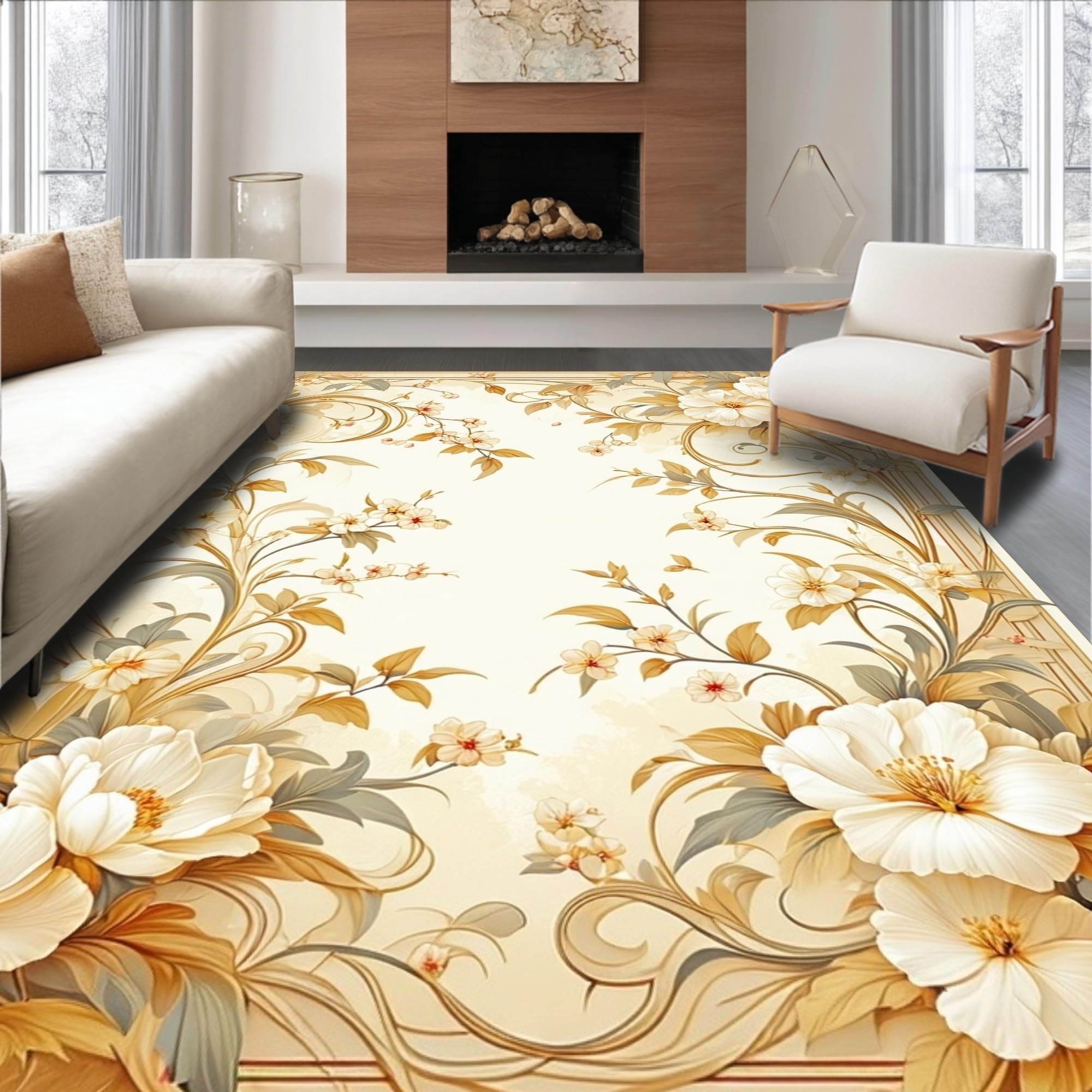 Ultra Soft Area Rug, Non Slip, Stain Resistant, Washable Area Rugs for Living Room, Bedroom, Stylish Indoor Floral Area in Beige Tones(Beige) Overview: