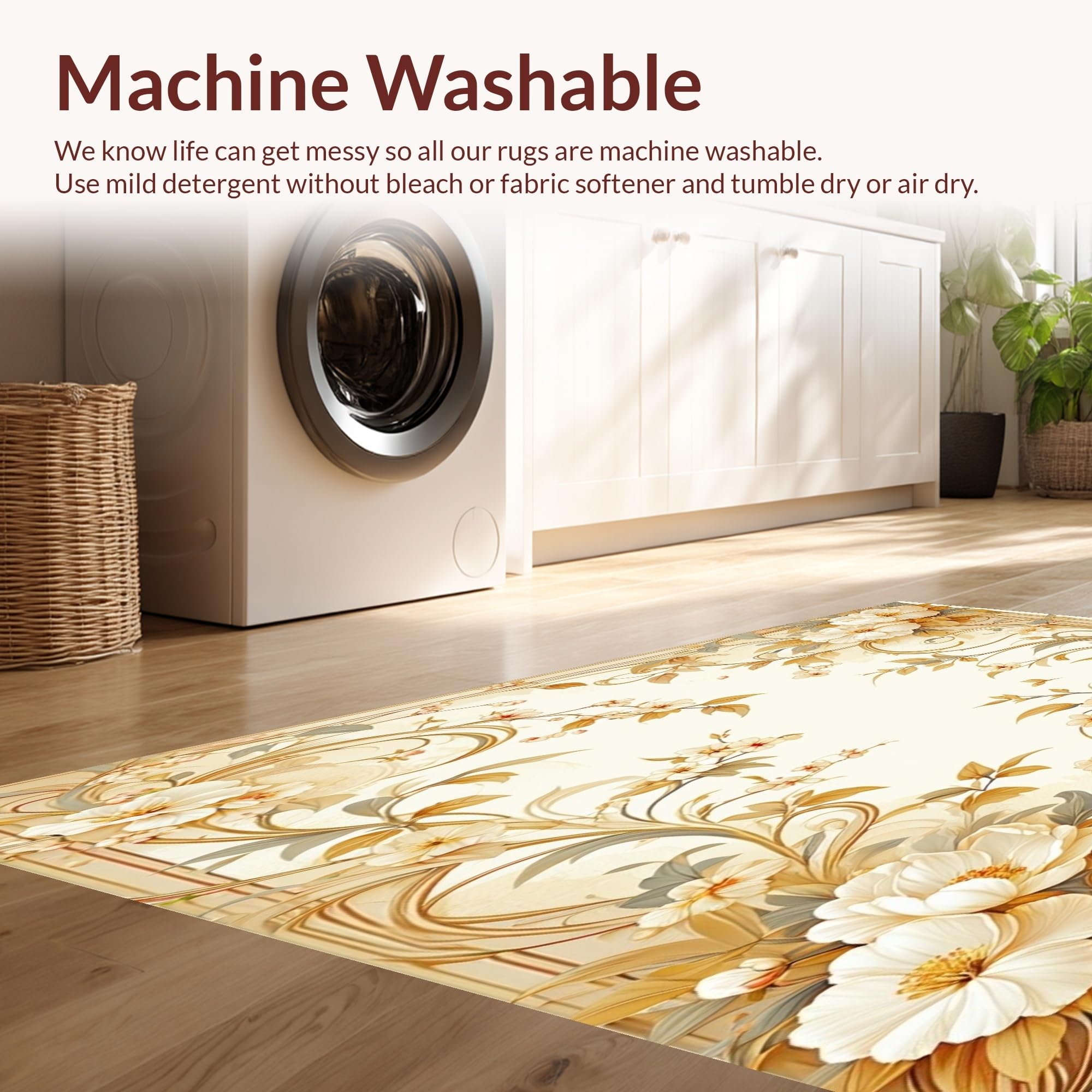 - Machine Washable: Our rugs can be easily thrown in the wash machine.