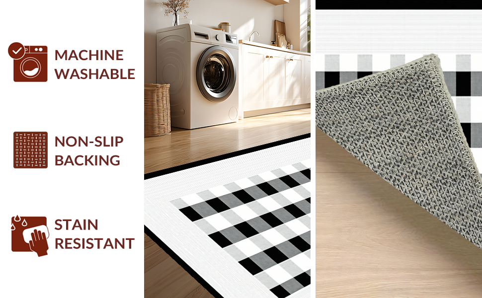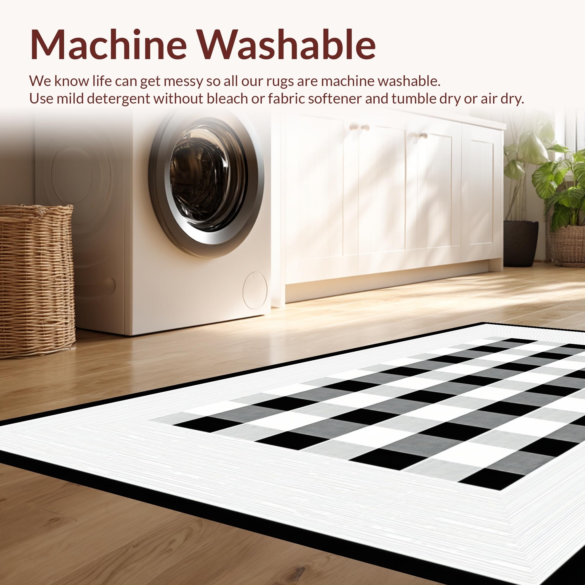 Ultra Soft Area Rug, Non Slip, Stain Resistant, Washable Area Rugs for Living Room, Bedroom, Stylish Lightweight Checkered Textile(Black) Overview: