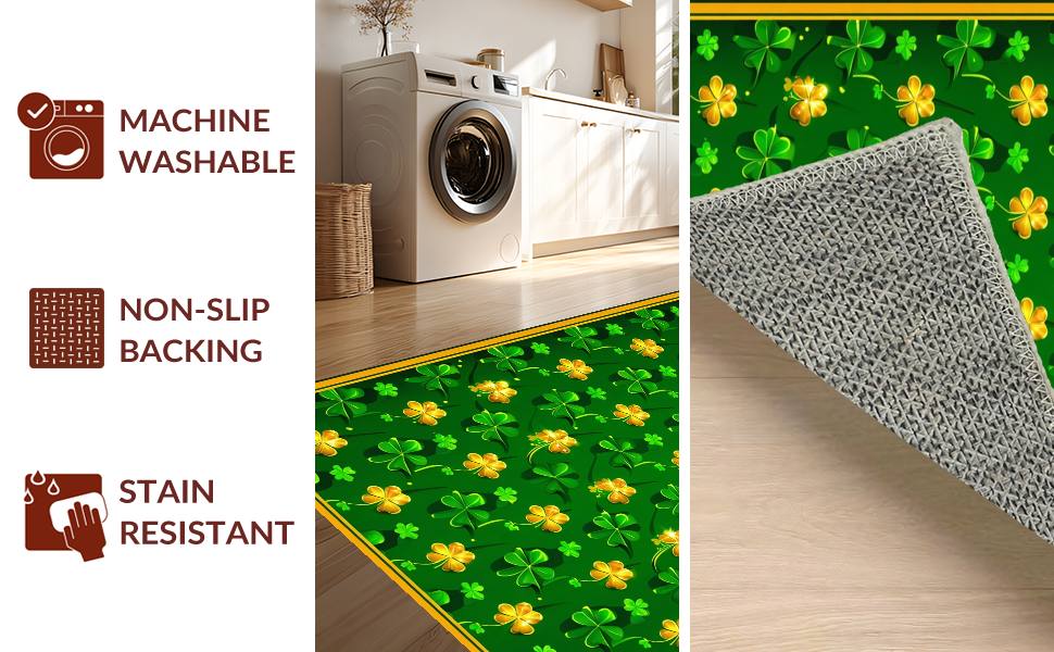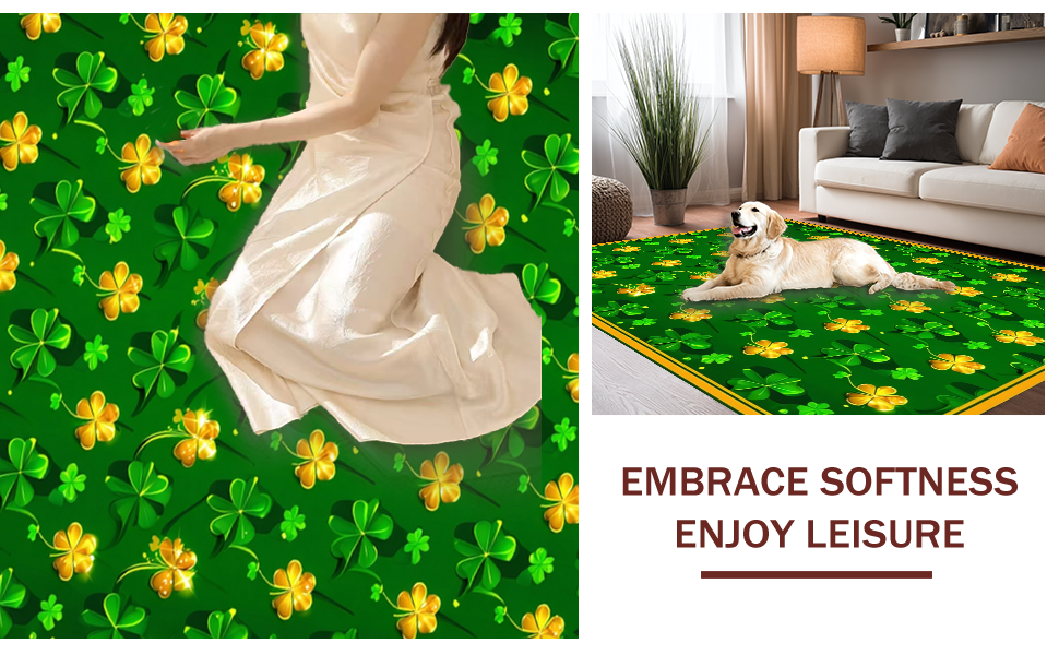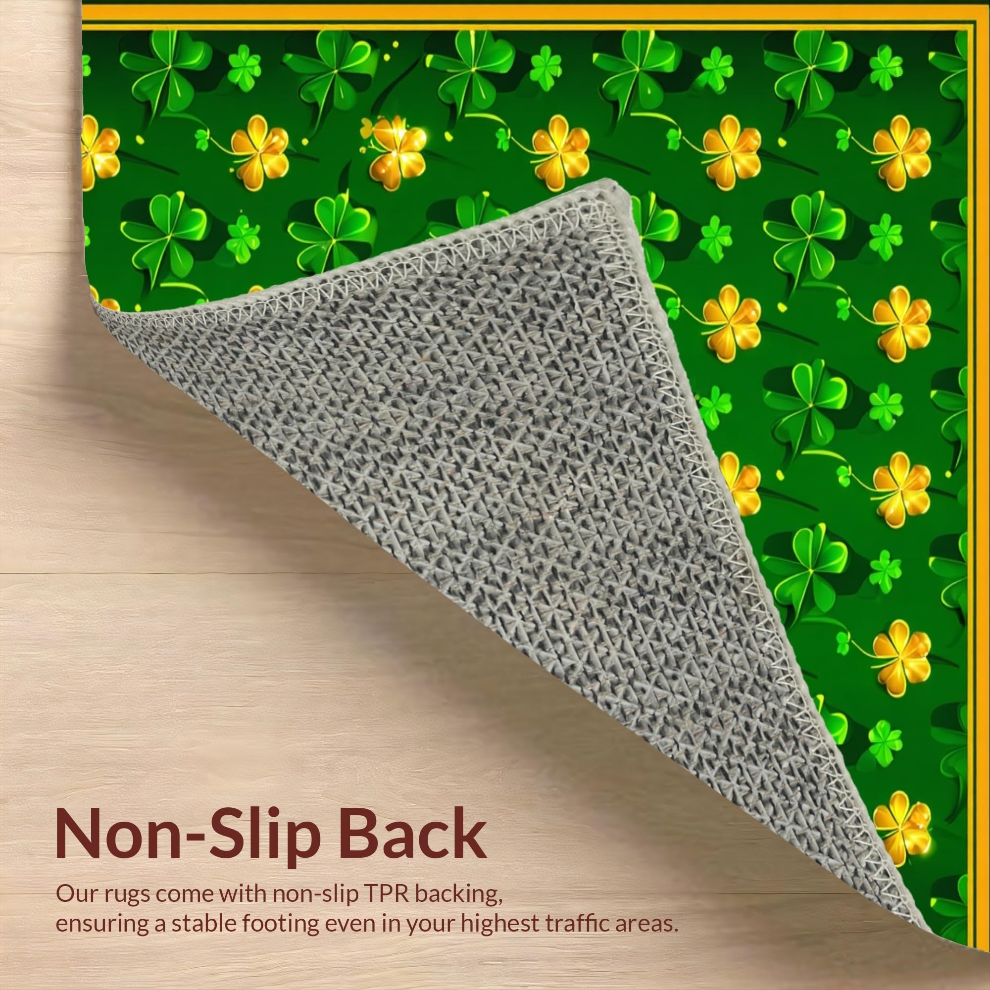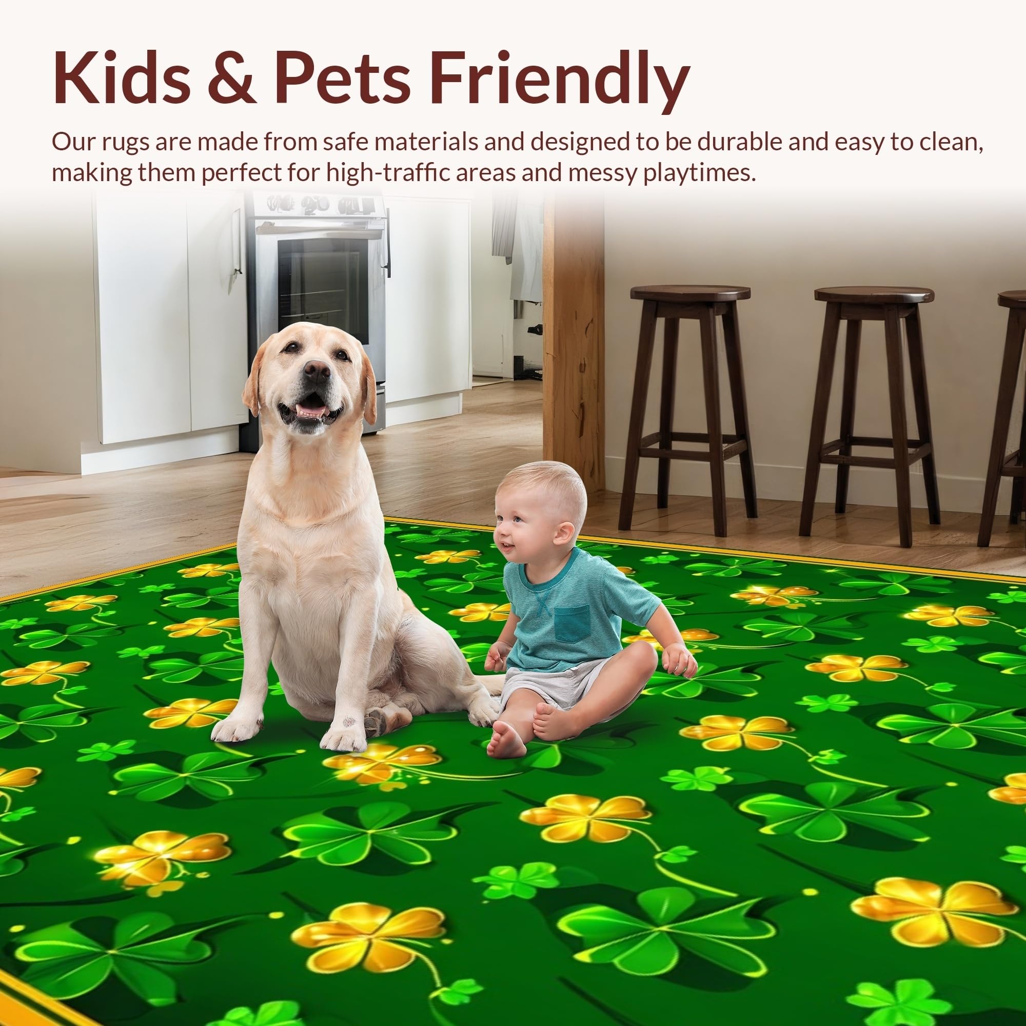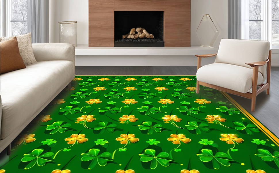 Ultra Soft Area Rug, Non Slip, Stain Resistant, Washable Area Rugs for Living Room, Bedroom, Stylish Lucky Clover Visual Element(Green) Overview:
