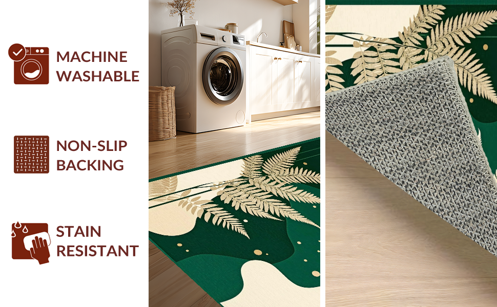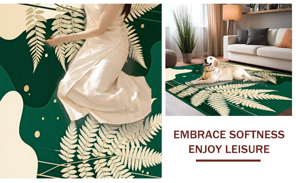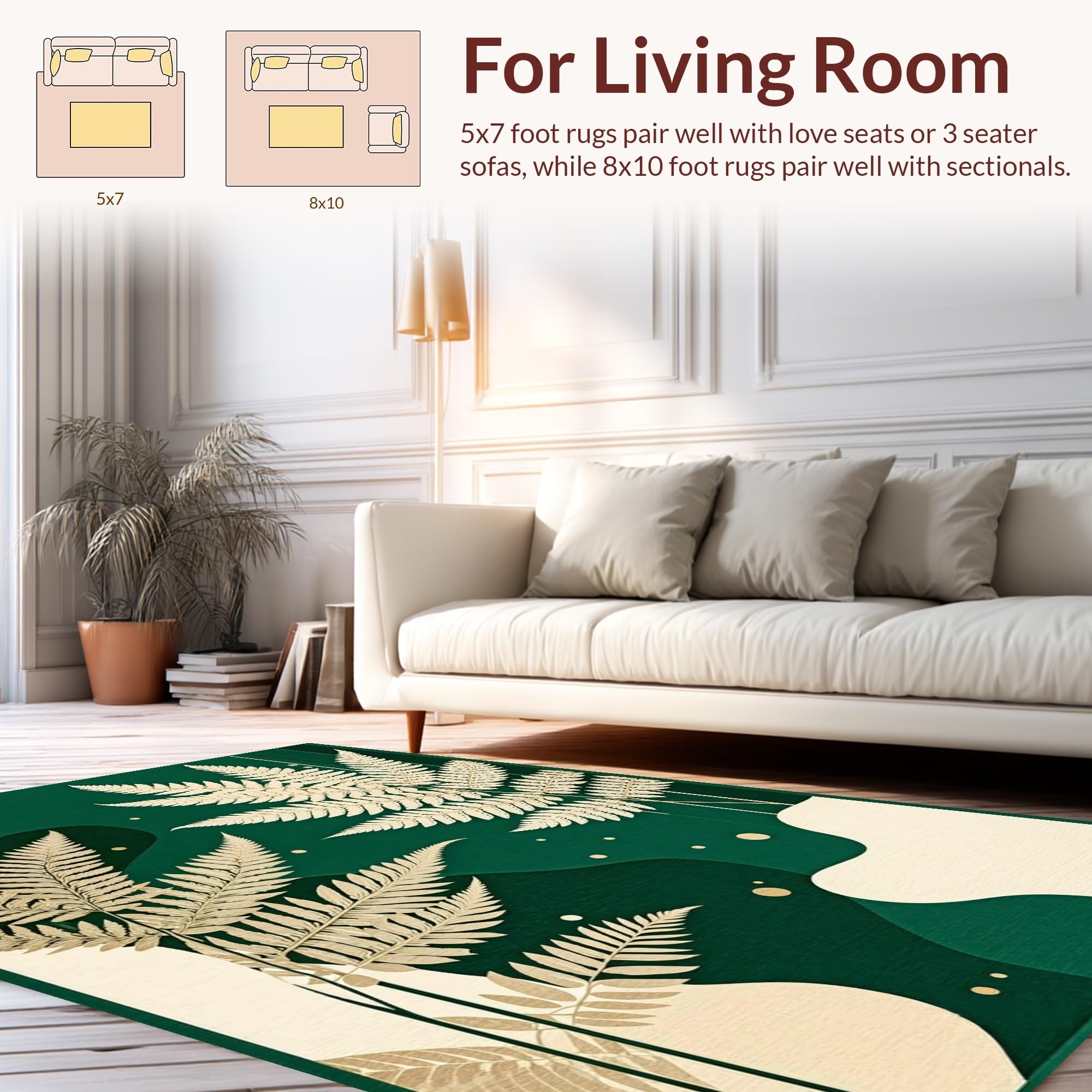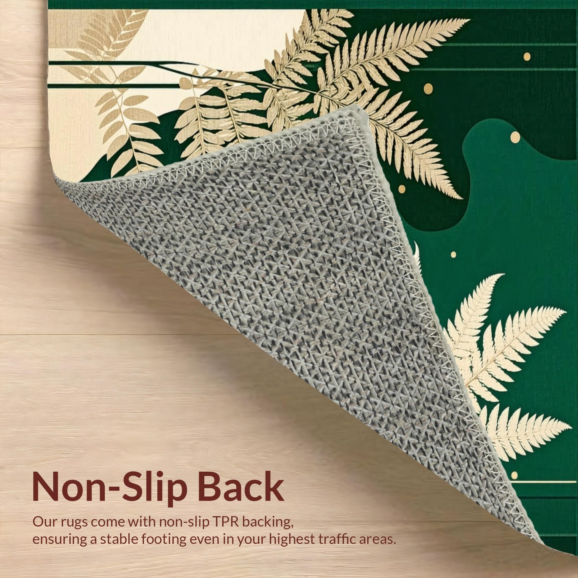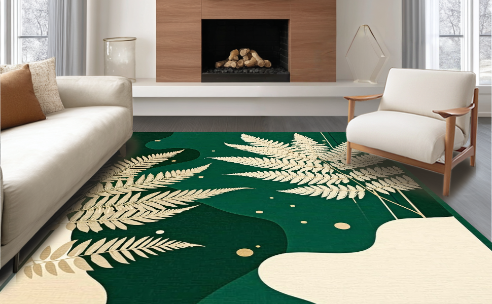 Ultra Soft Area Rug, Non Slip, Stain Resistant, Washable Area Rugs for Living Room, Bedroom, Stylish Minimalist Leafy Print(Green) Overview: