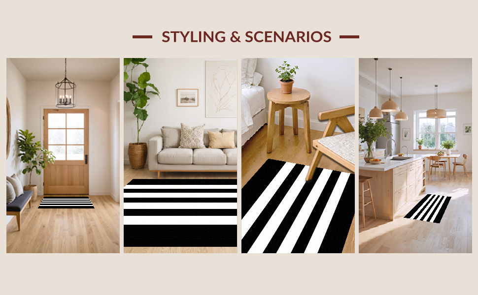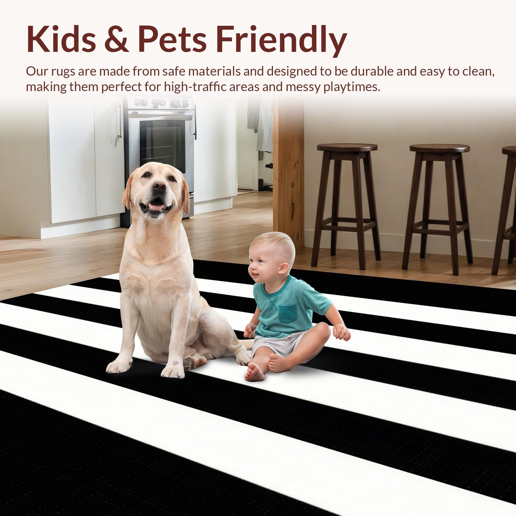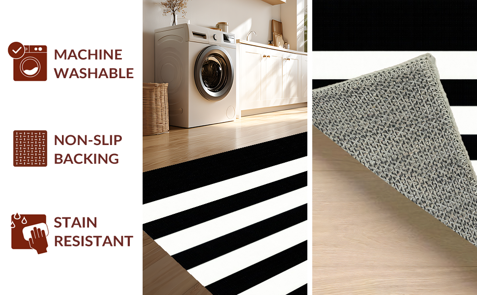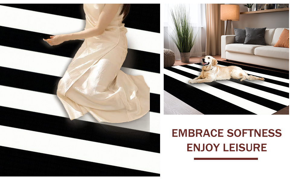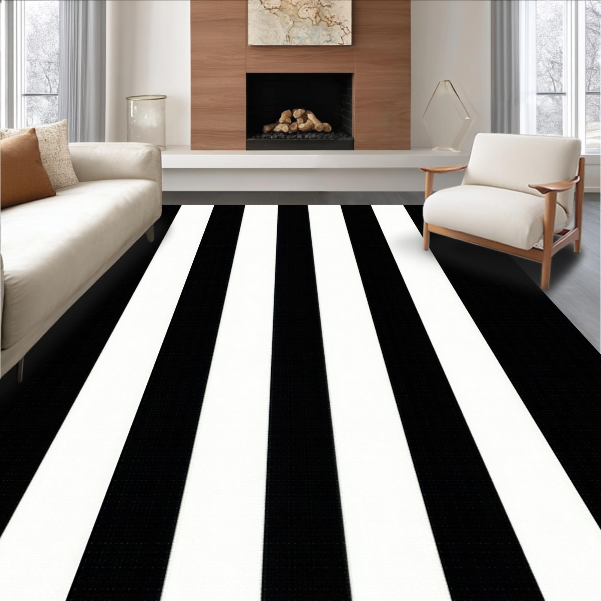 Ultra Soft Area Rug, Non Slip, Stain Resistant, Washable Area Rugs for Living Room, Bedroom, Stylish Minimalist Linear Arrangement(Black) Overview: