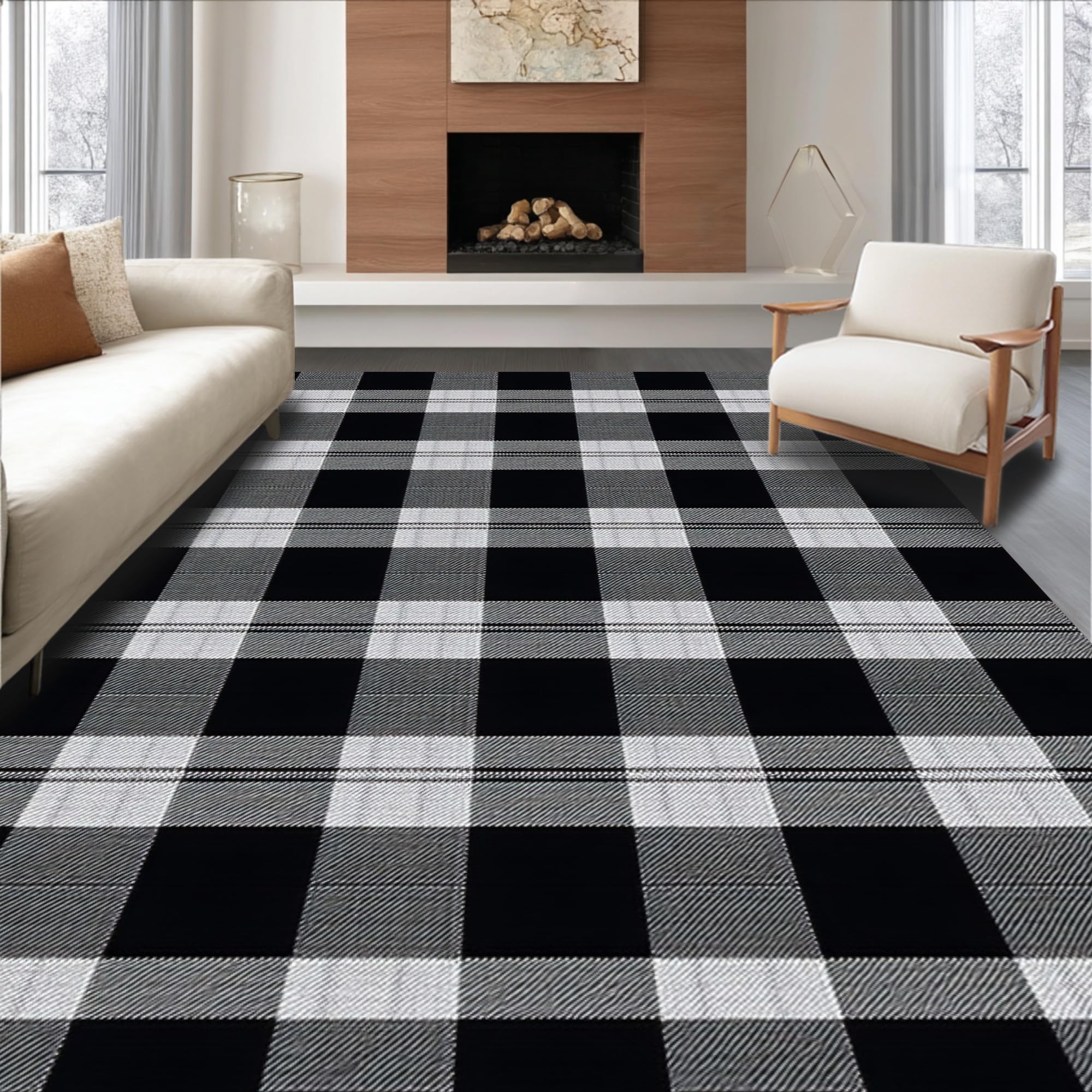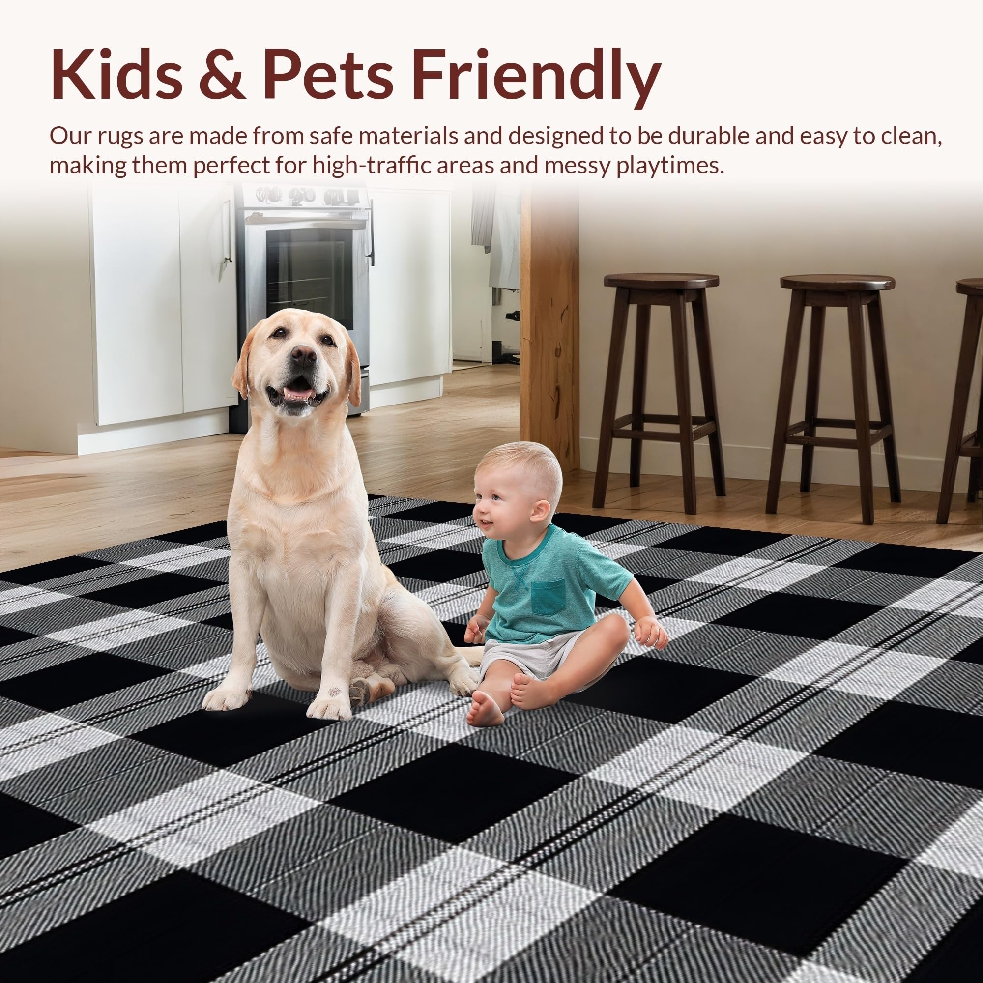 Ultra Soft Area Rug, Non Slip, Stain Resistant, Washable Area Rugs for Living Room, Bedroom, Stylish Minimalist Patterned Floor(Black) Overview: