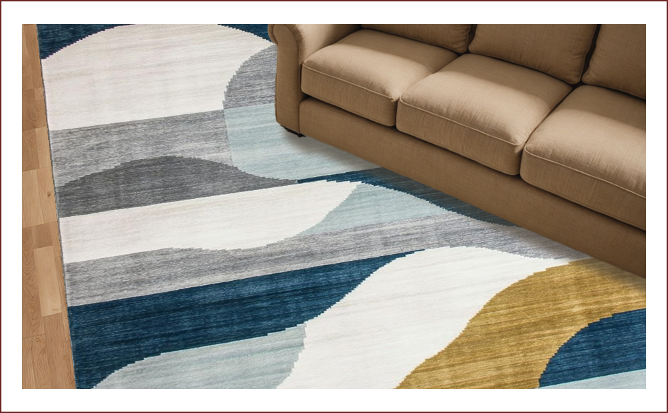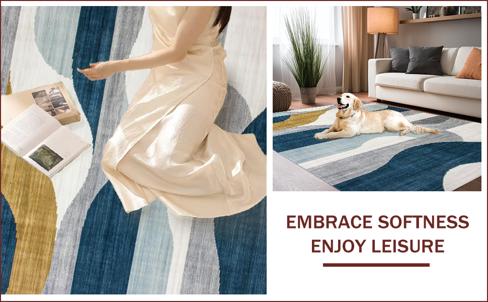 Ultra Soft Area Rug, Non Slip, Stain Resistant, Washable Area Rugs for Living Room, Bedroom, Stylish Minimalist Strokes Design(Blue) Overview: