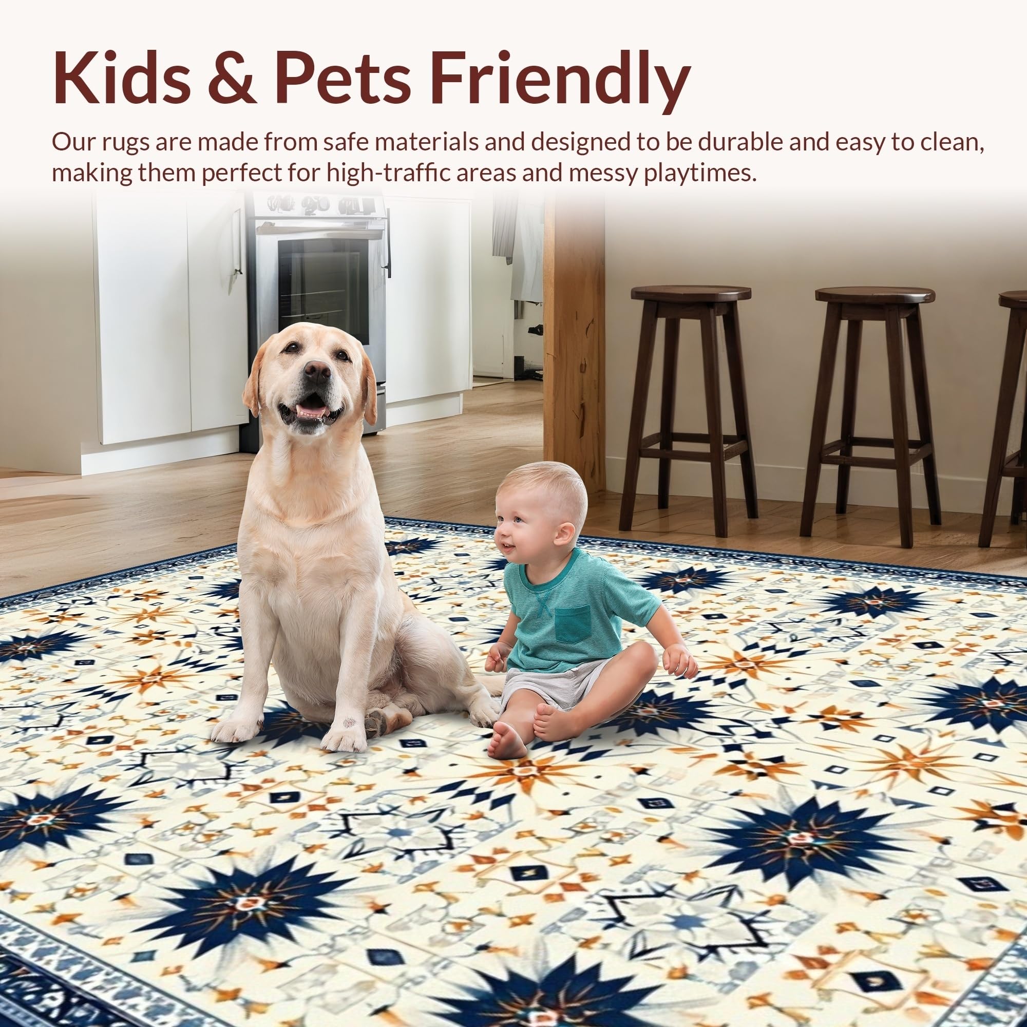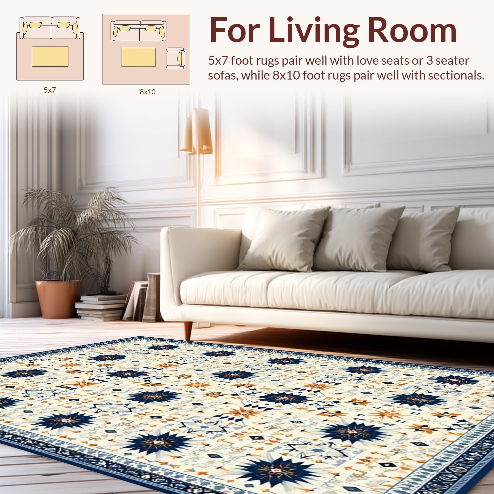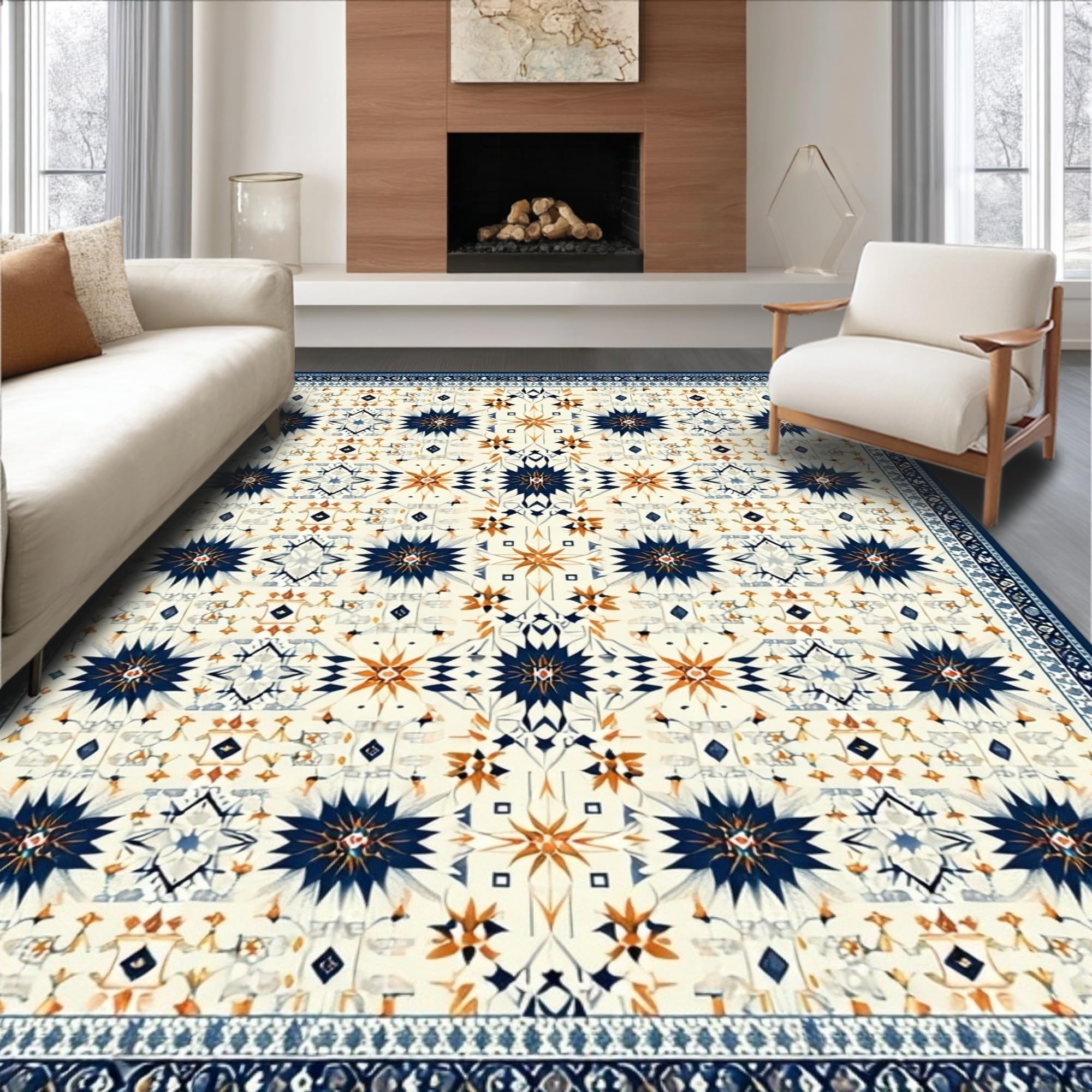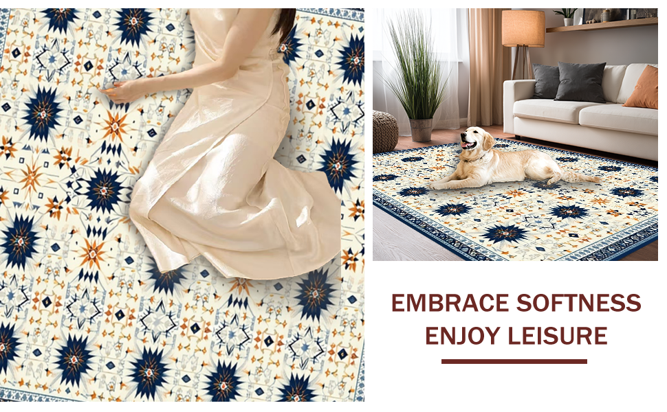 Ultra Soft Area Rug, Non Slip, Stain Resistant, Washable Area Rugs for Living Room, Bedroom, Stylish Modern Geometric Aesthetic(Beige) Overview: