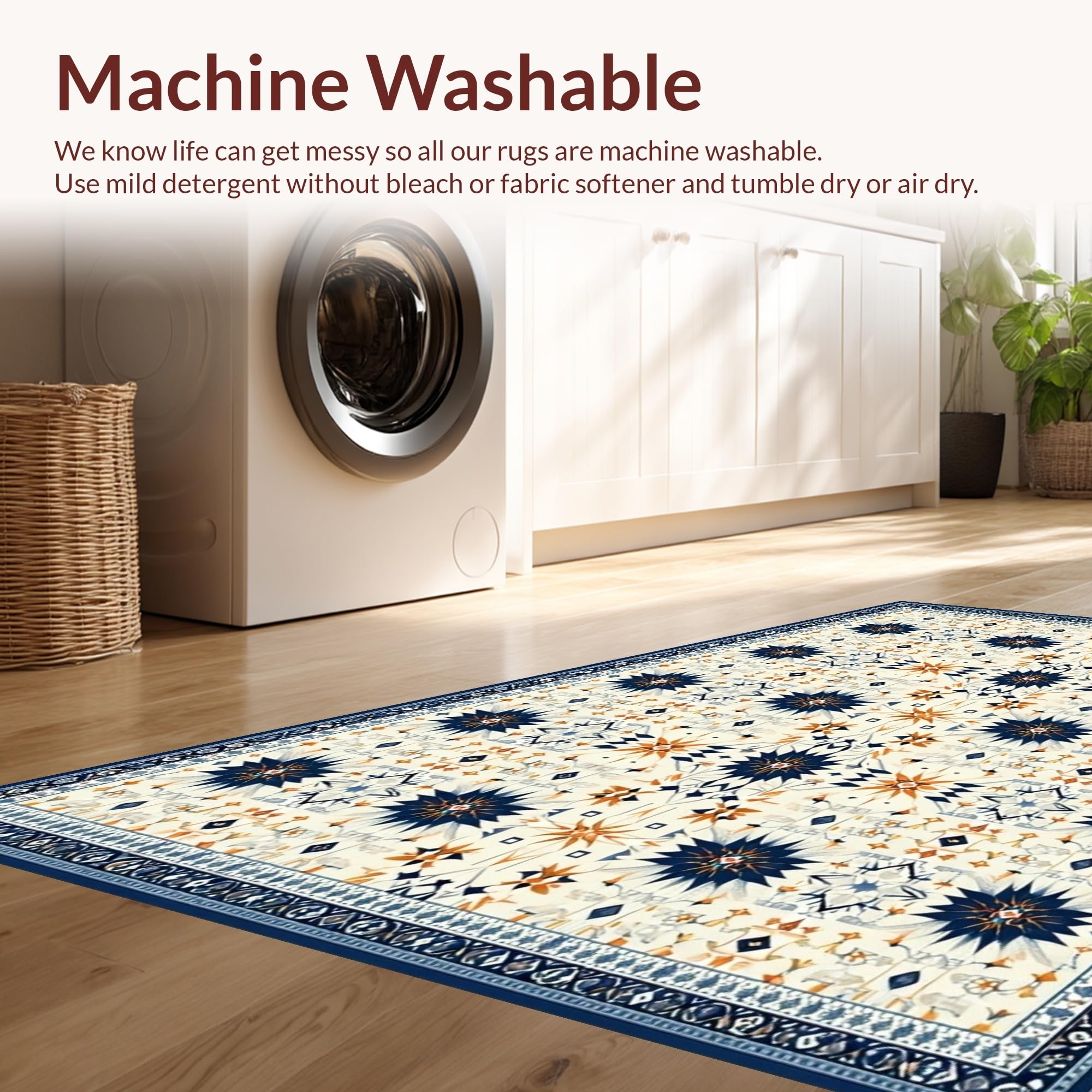 - Machine Washable: Our rugs can be easily thrown in the wash machine.