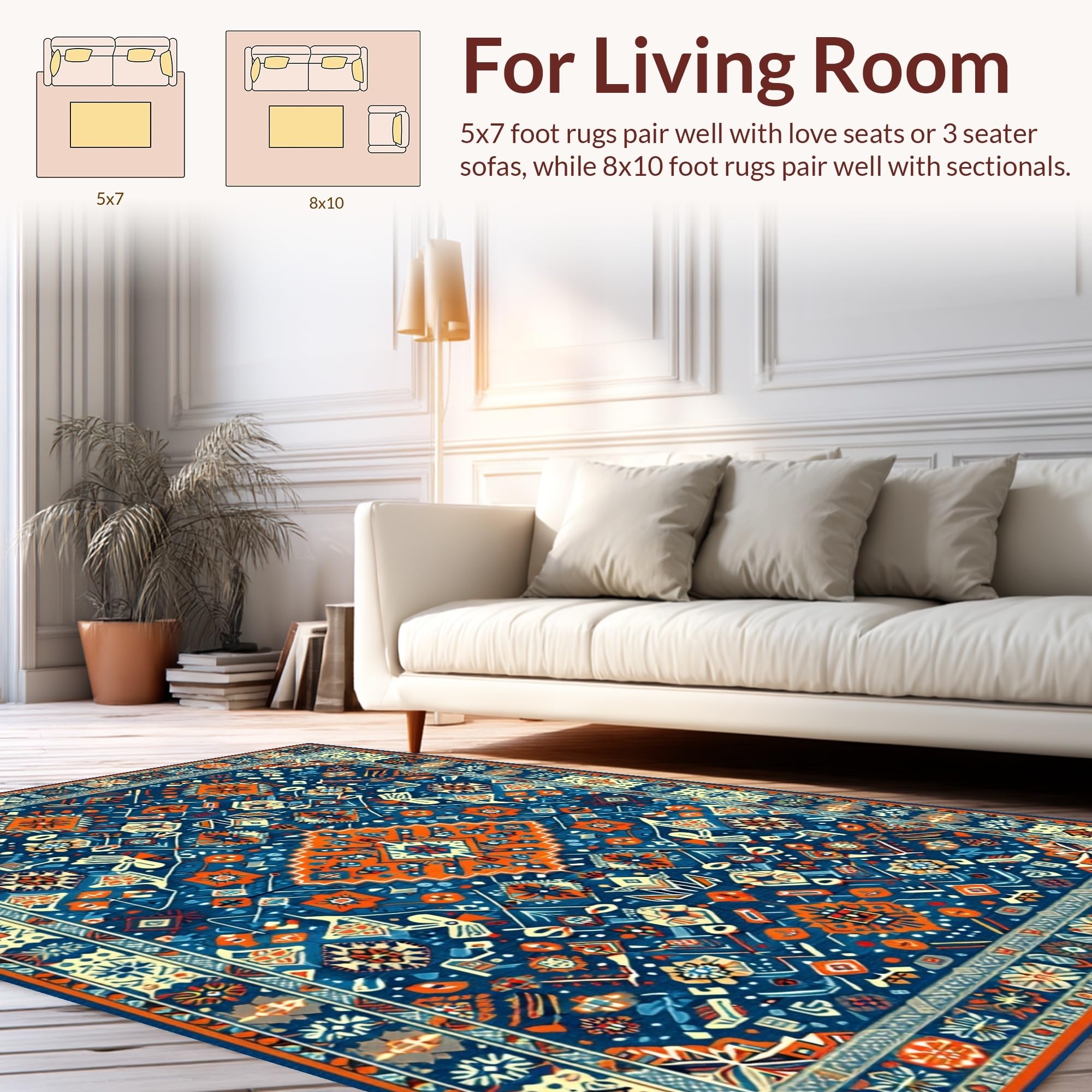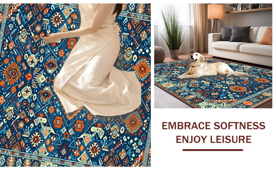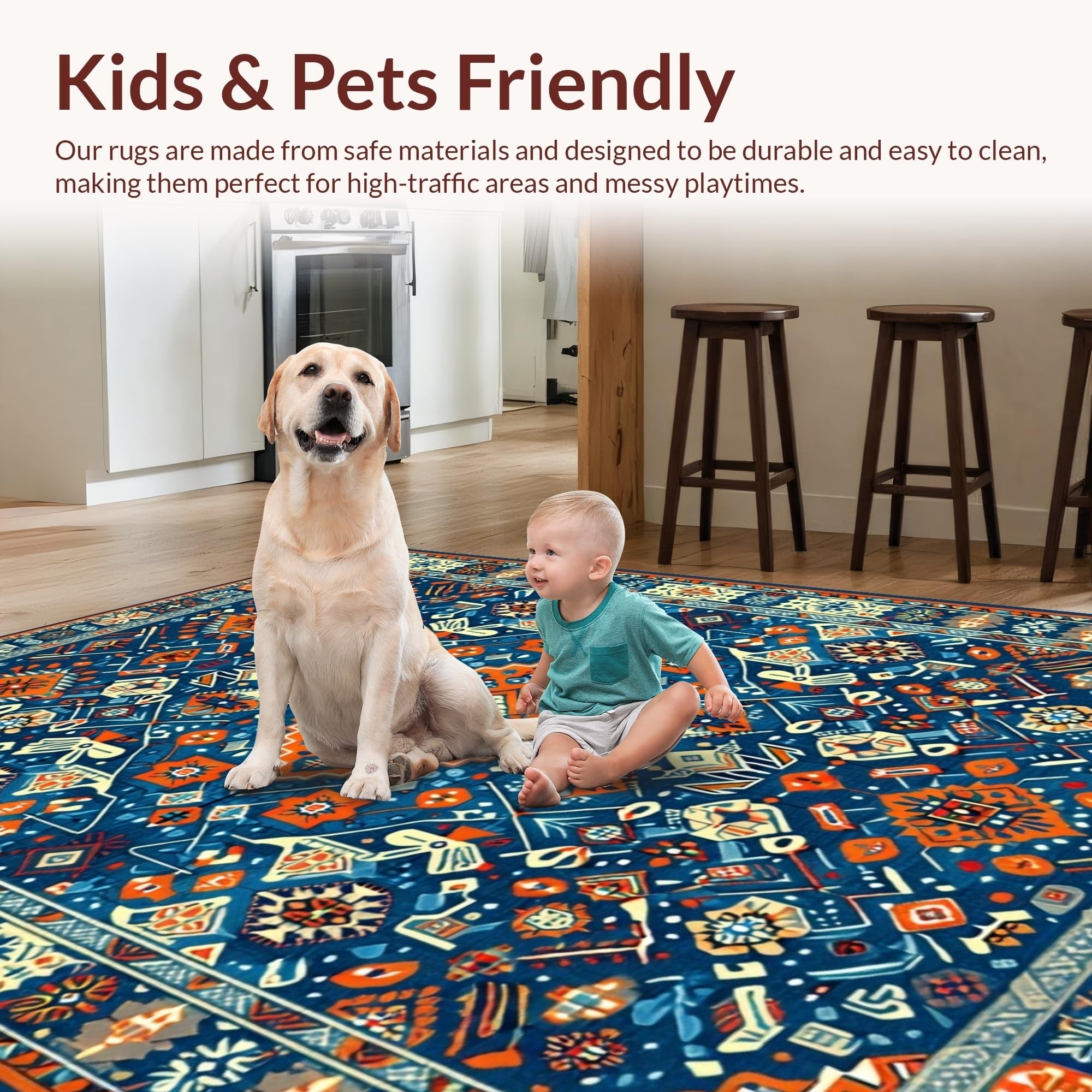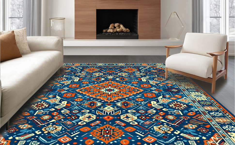 Ultra Soft Area Rug, Non Slip, Stain Resistant, Washable Area Rugs for Living Room, Bedroom, Stylish Modern Ogee Inspiration(Blue) Overview: