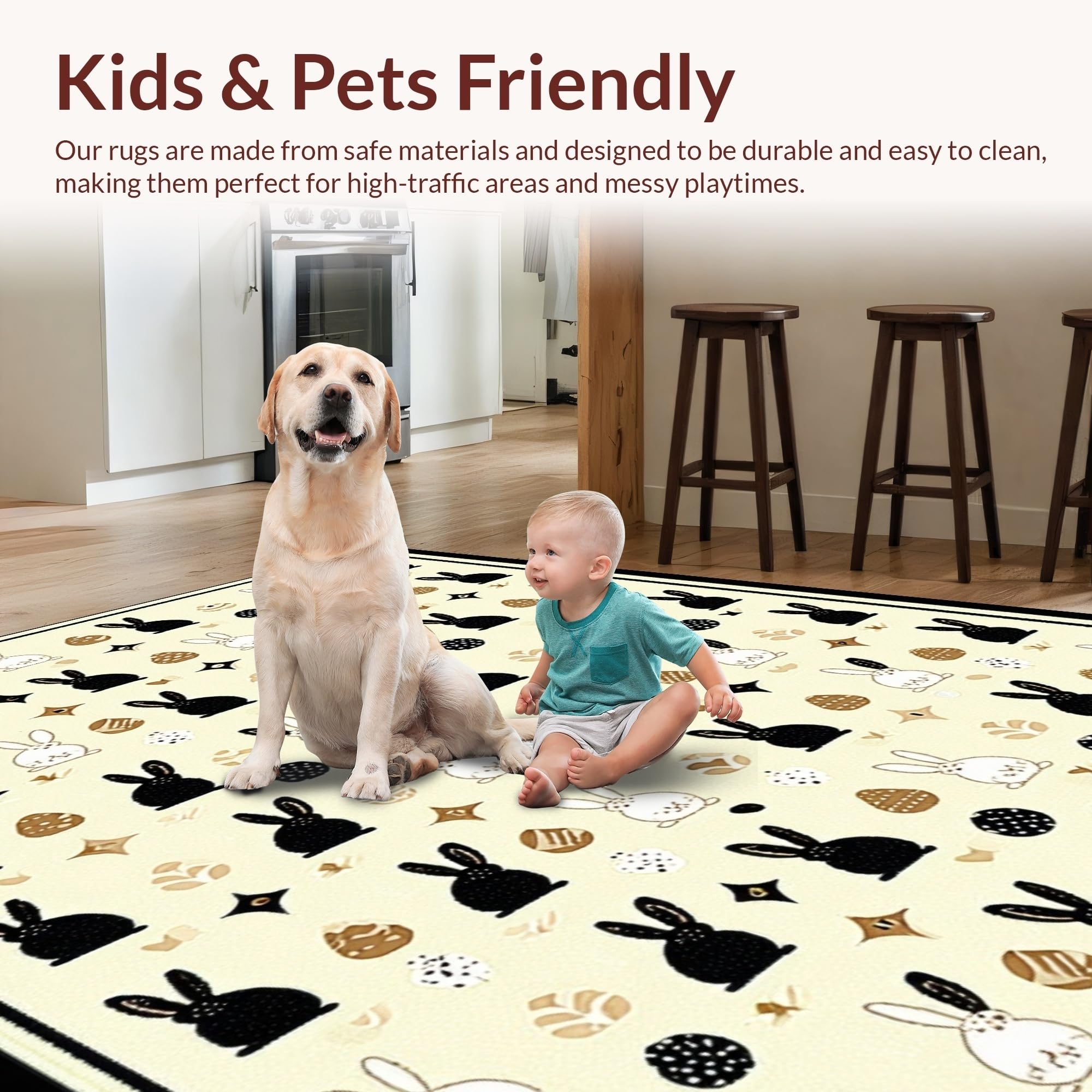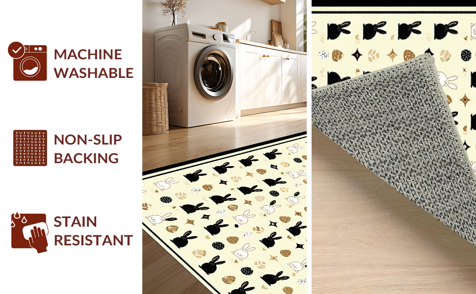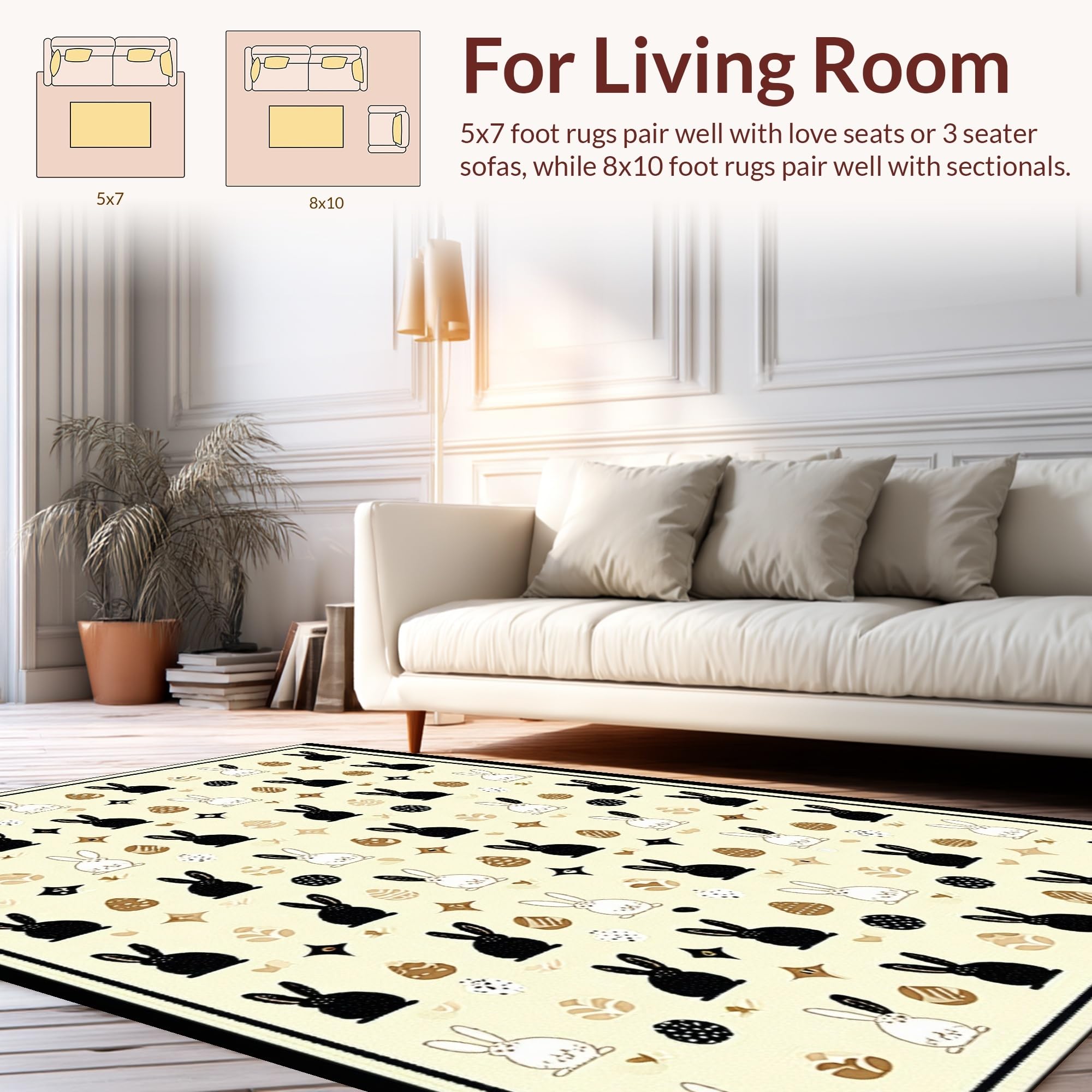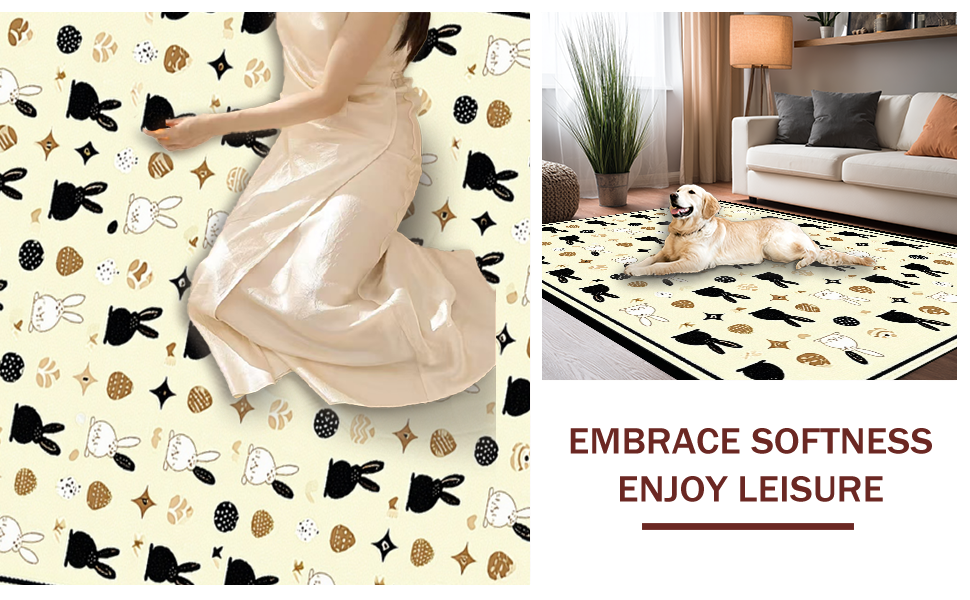 Ultra Soft Area Rug, Non Slip, Stain Resistant, Washable Area Rugs for Living Room, Bedroom, Stylish Monochrome Bunny Illustration(Beige) Overview: