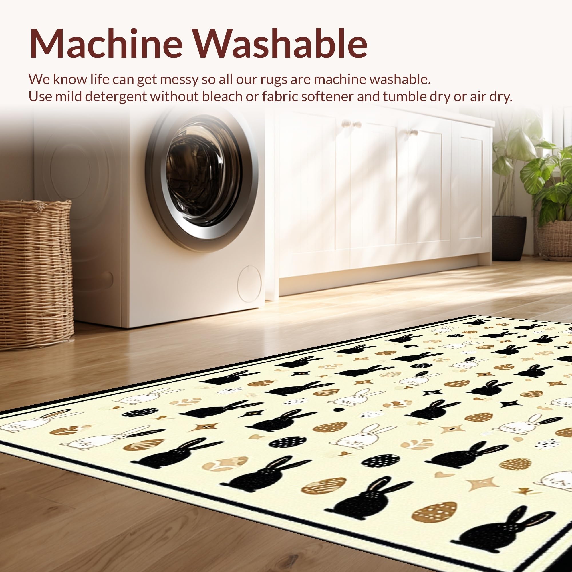 - Machine Washable: Our rugs can be easily thrown in the wash machine.