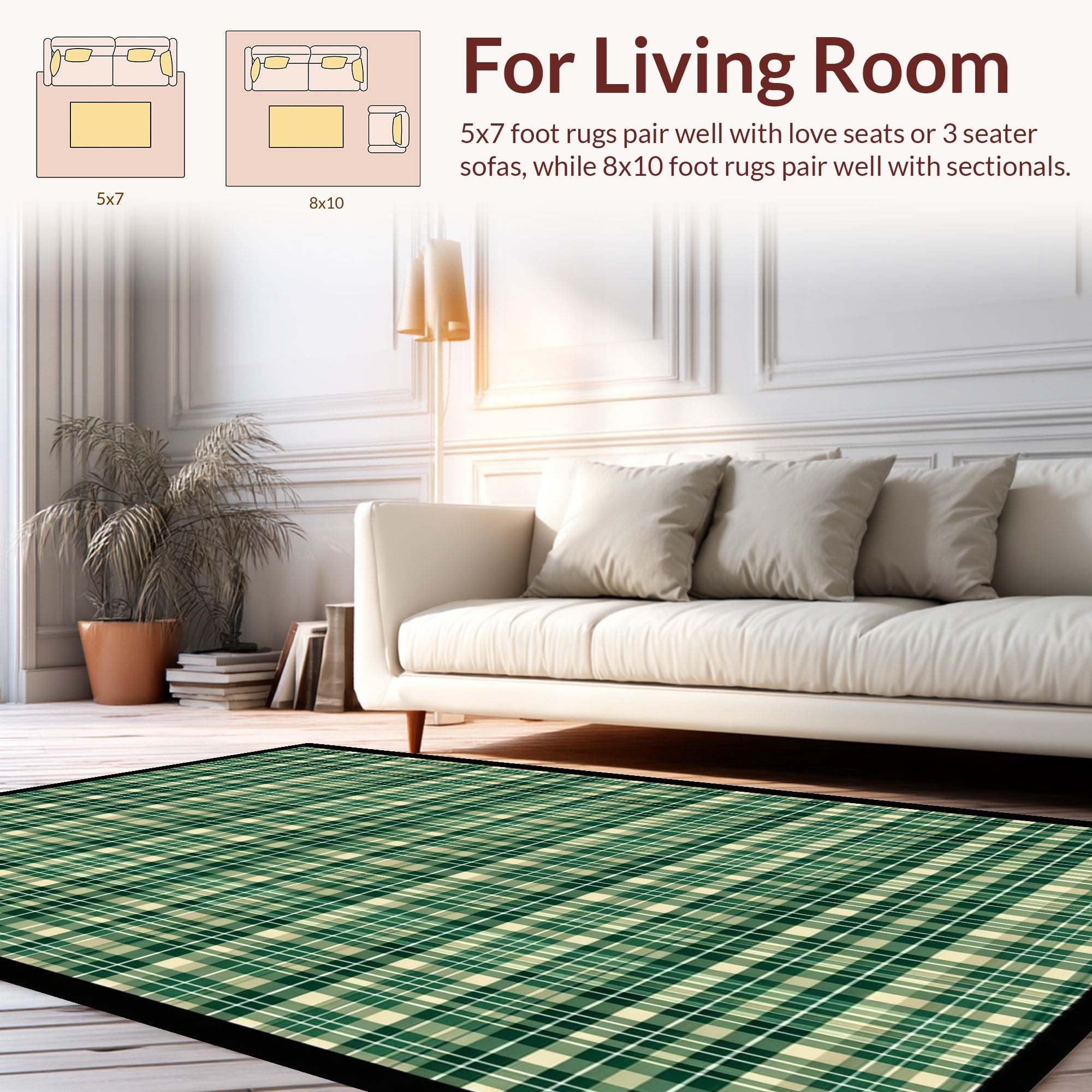 Flatwoven High Traffic Area Rug, Stylish Neutral Plaid Motif, Non Slip, Stain Resistant, Washable Area Rugs for Living Room, Bedroom (Green) Overview: