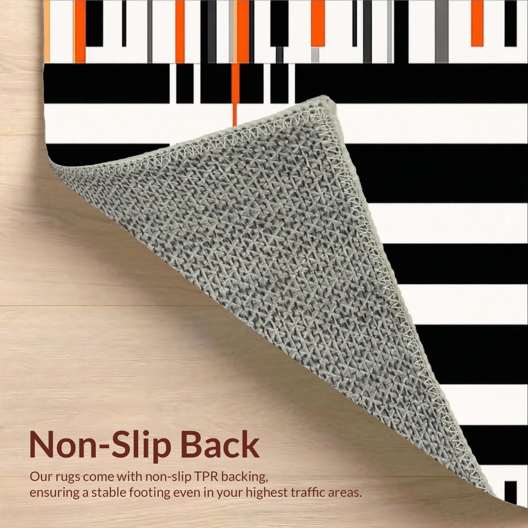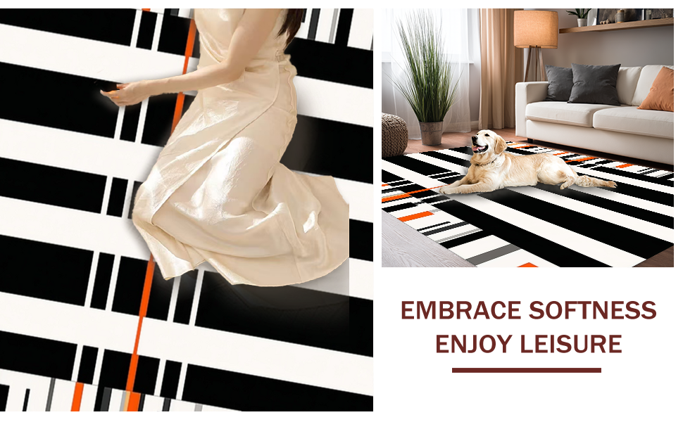 Ultra Soft Area Rug, Non Slip, Stain Resistant, Washable Area Rugs for Living Room, Bedroom, Stylish Neutral Toned Abstract Design(Black) Overview: