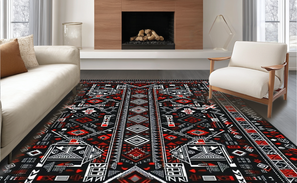 Ultra Soft Area Rug, Non Slip, Stain Resistant, Washable Area Rugs for Living Room, Bedroom, Stylish Neutral Toned Diamond Pattern(Black) Overview:
