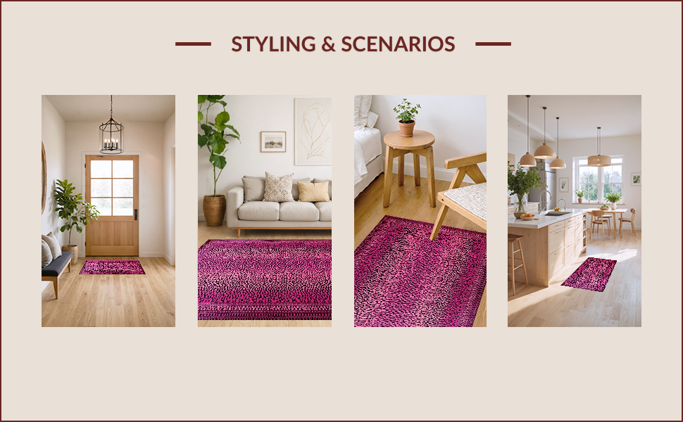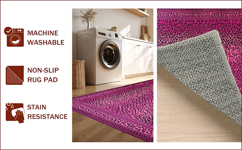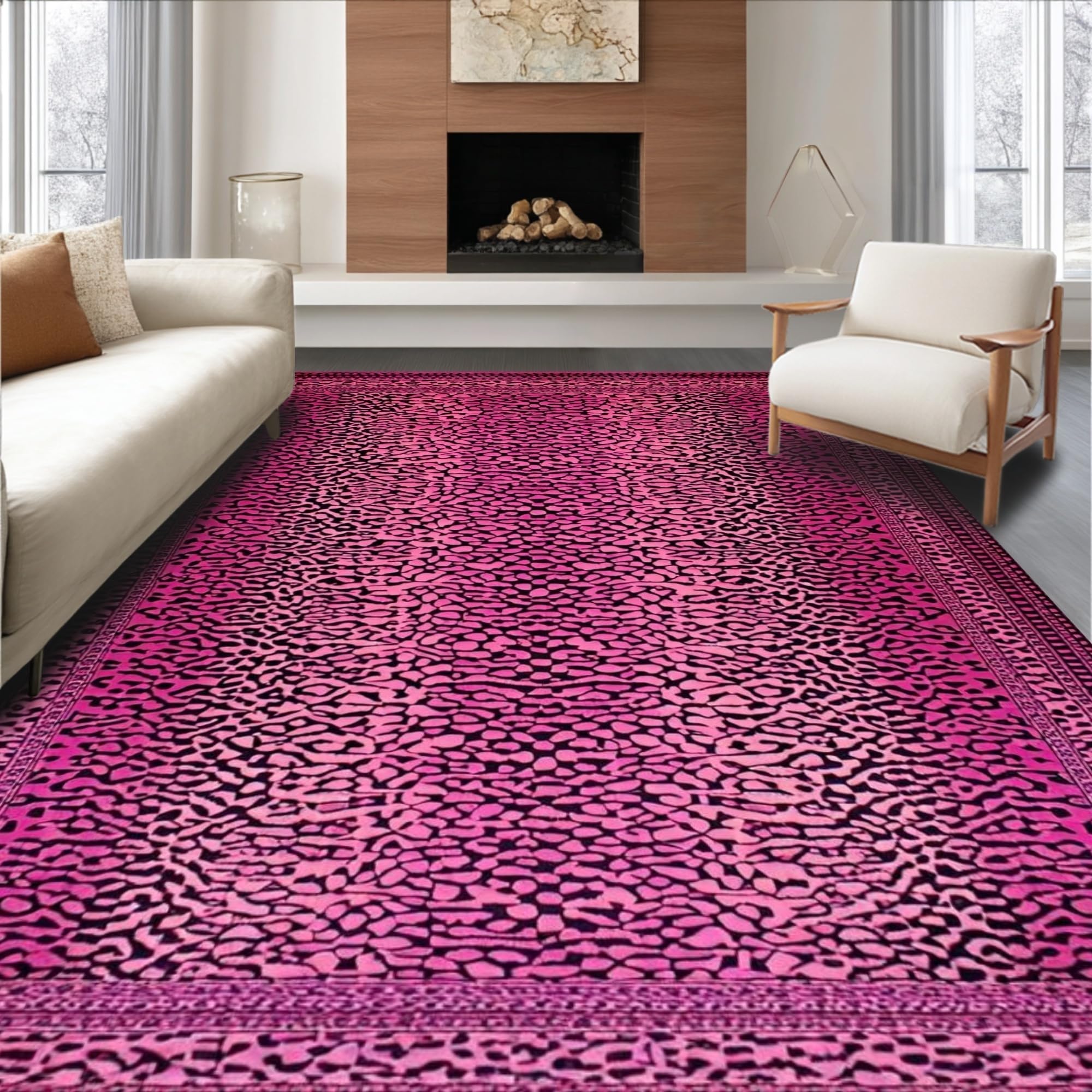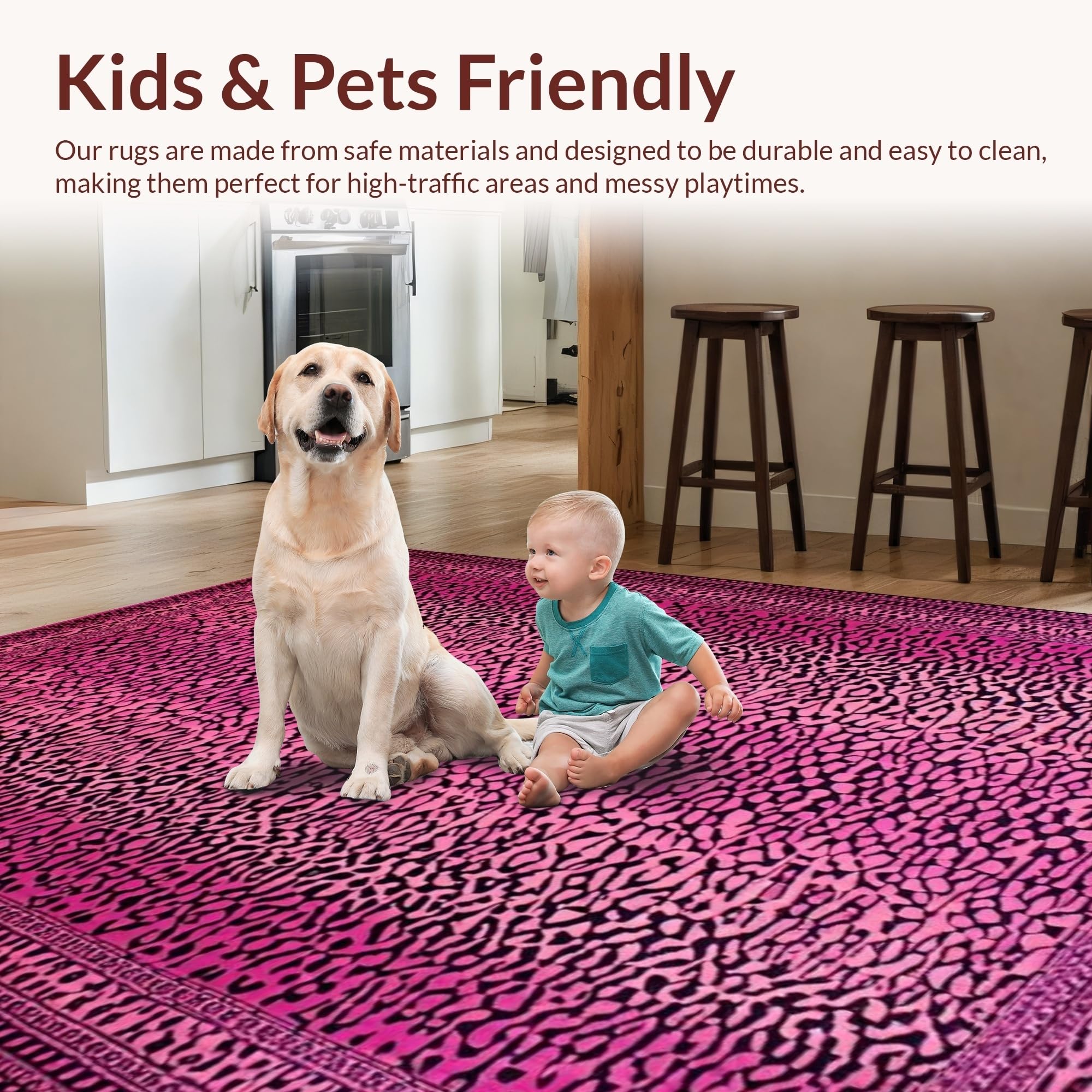 Ultra Soft Area Rug, Non Slip, Stain Resistant, Washable Area Rugs for Living Room, Bedroom, Stylish Retro Leopard Vibe(Pink) Overview: