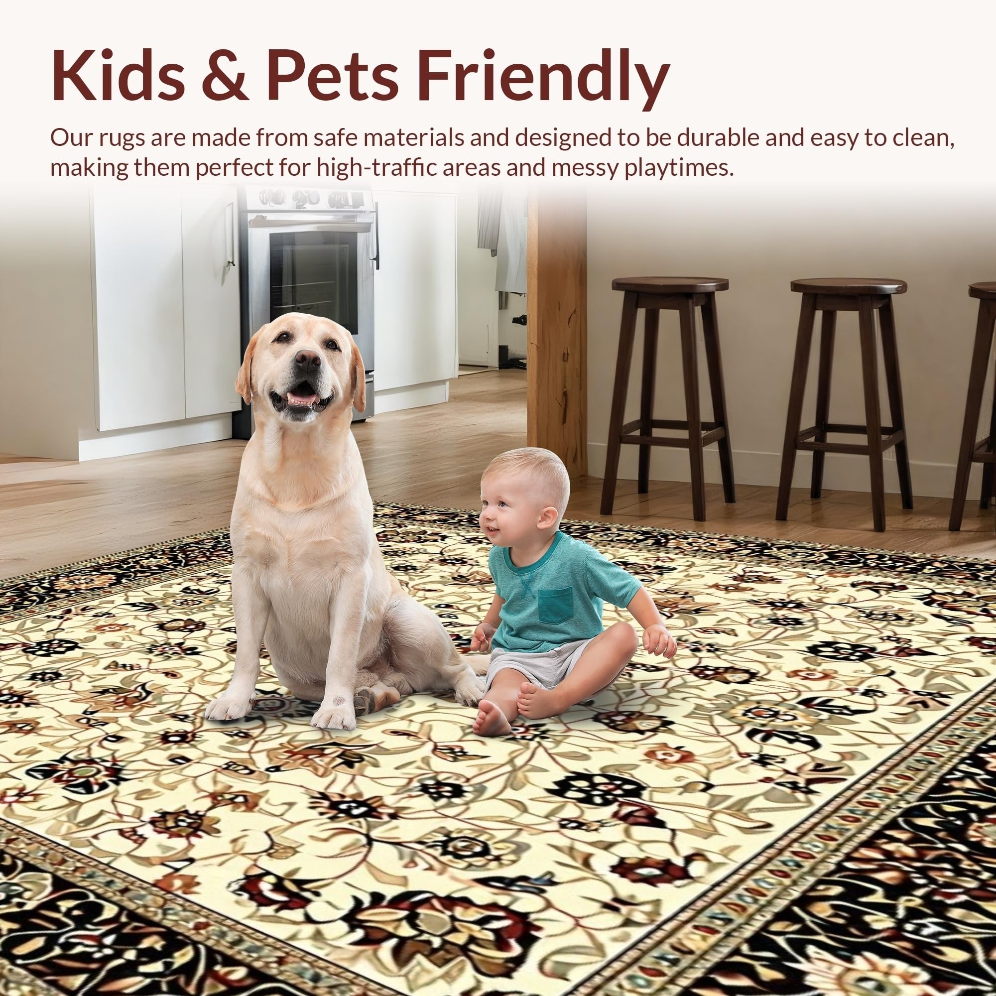 Ultra Soft Area Rug, Non Slip, Stain Resistant, Washable Area Rugs for Living Room, Bedroom, Stylish Round with Ornamental Floral Medallions(Beige) Overview:
