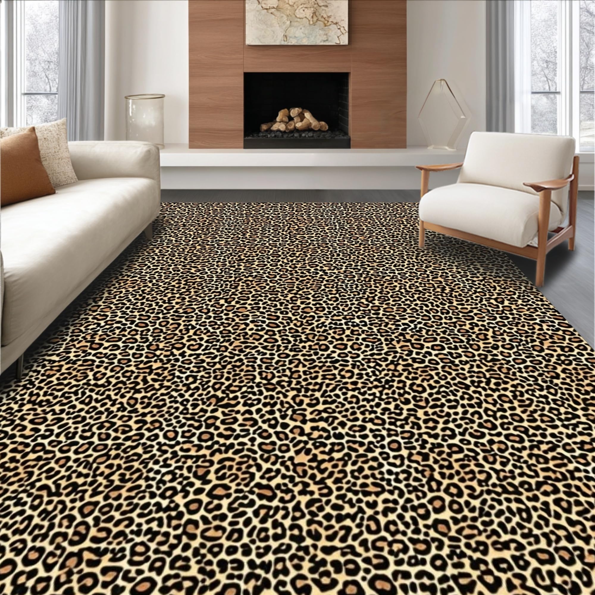 Ultra Soft Area Rug, Non Slip, Stain Resistant, Washable Area Rugs for Living Room, Bedroom, Stylish Rustic Wildlife Design(Beige) Overview:
