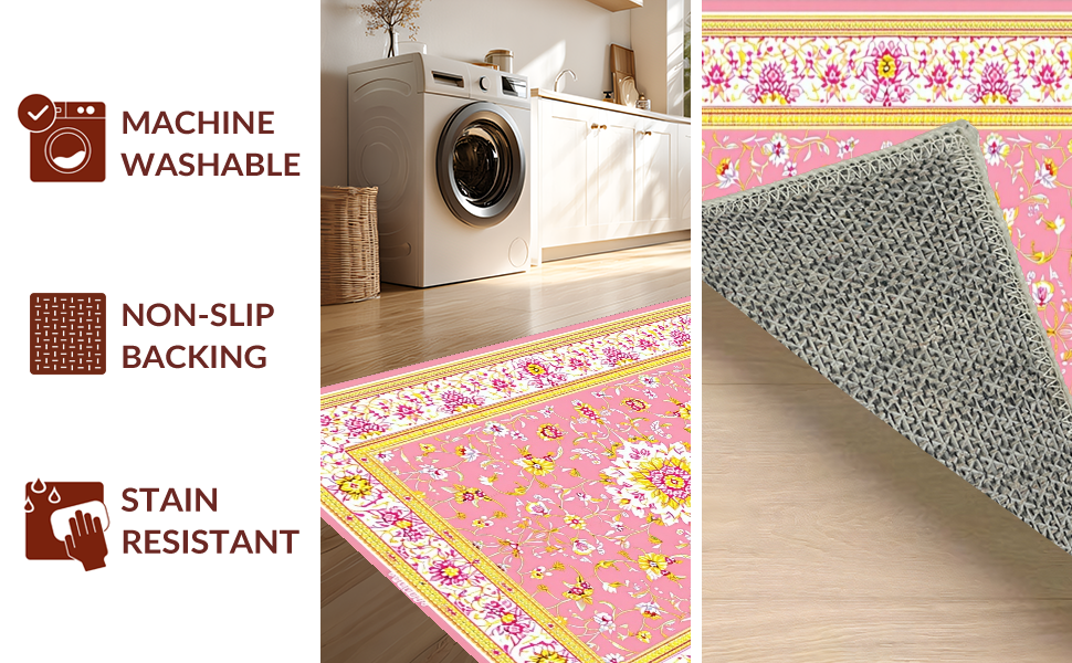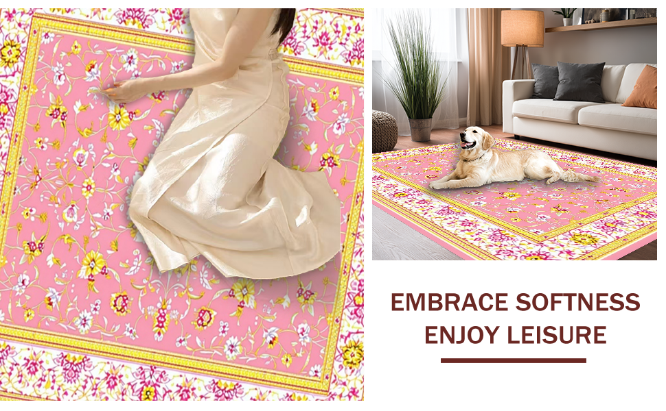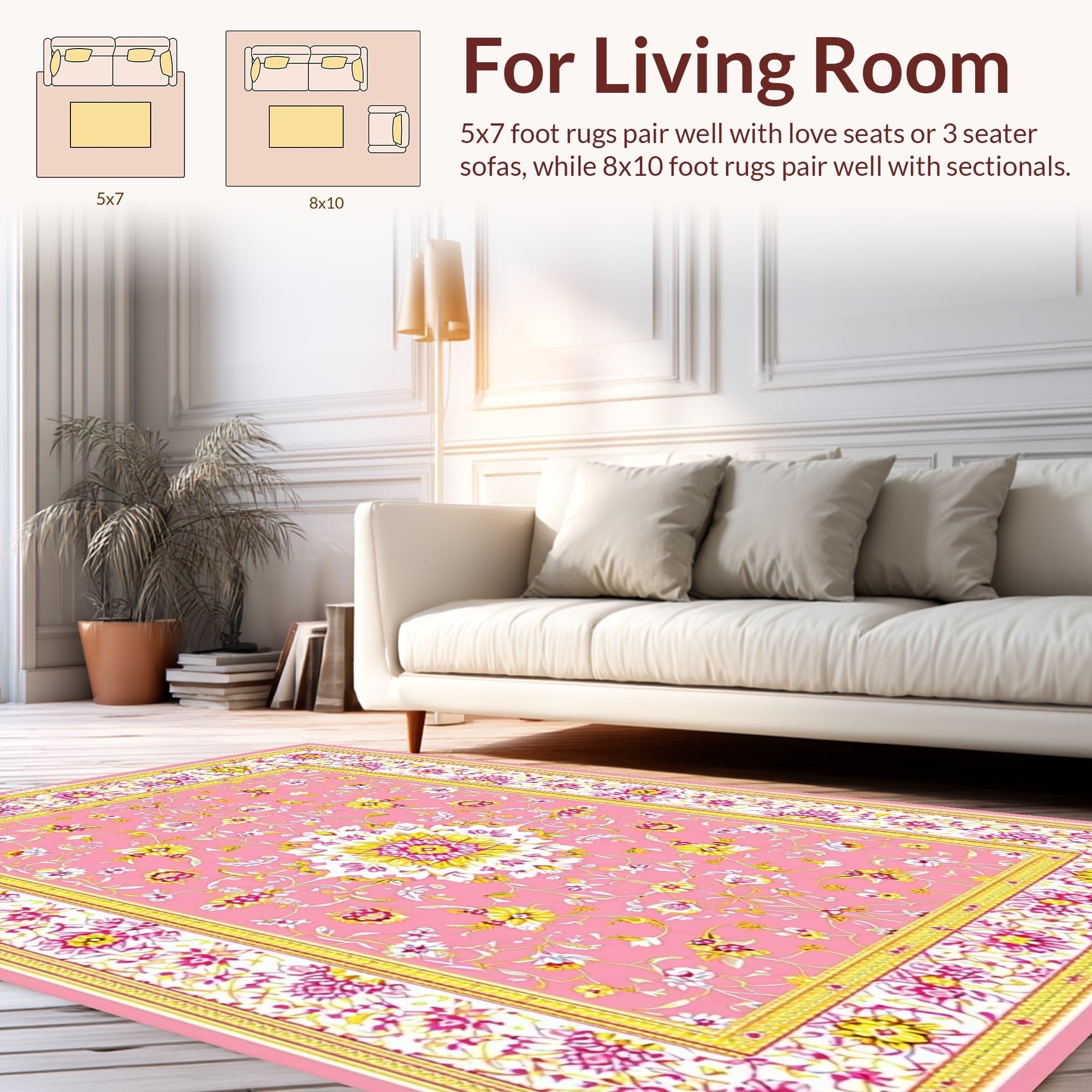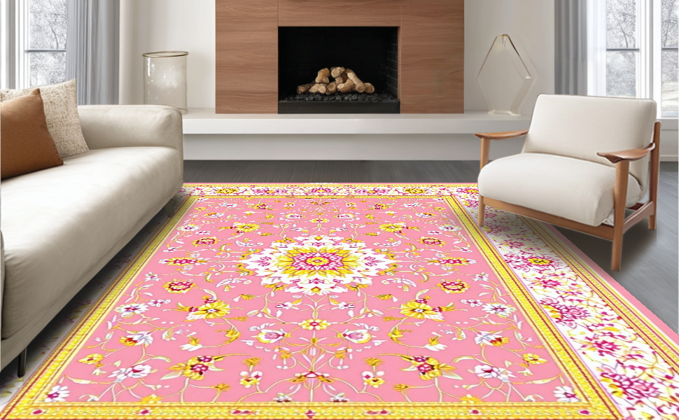 Ultra Soft Area Rug, Non Slip, Stain Resistant, Washable Area Rugs for Living Room, Bedroom, Stylish Subtle Floral Fusion(Pink) Overview: